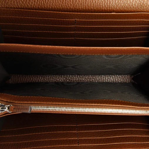 This pre-owned GUCCI bag is crafted in blue denim with a brown fabric and leather interior. Aged silver hardware complements the exterior, and the bag includes a detachable strap and dust bag. There is light wear with slight creasing on the exterior and interior, as well as small marks and scratches on the hardware.