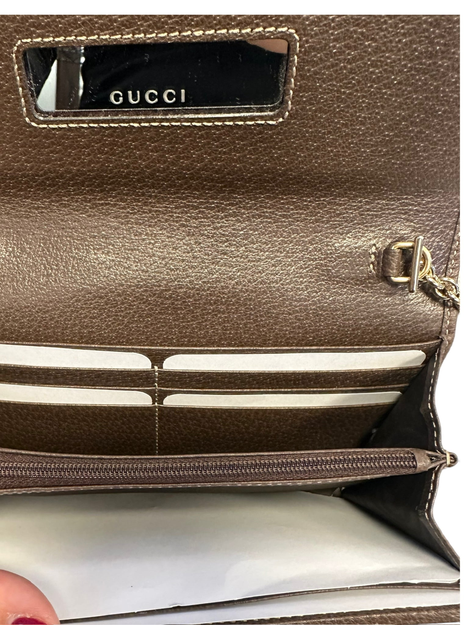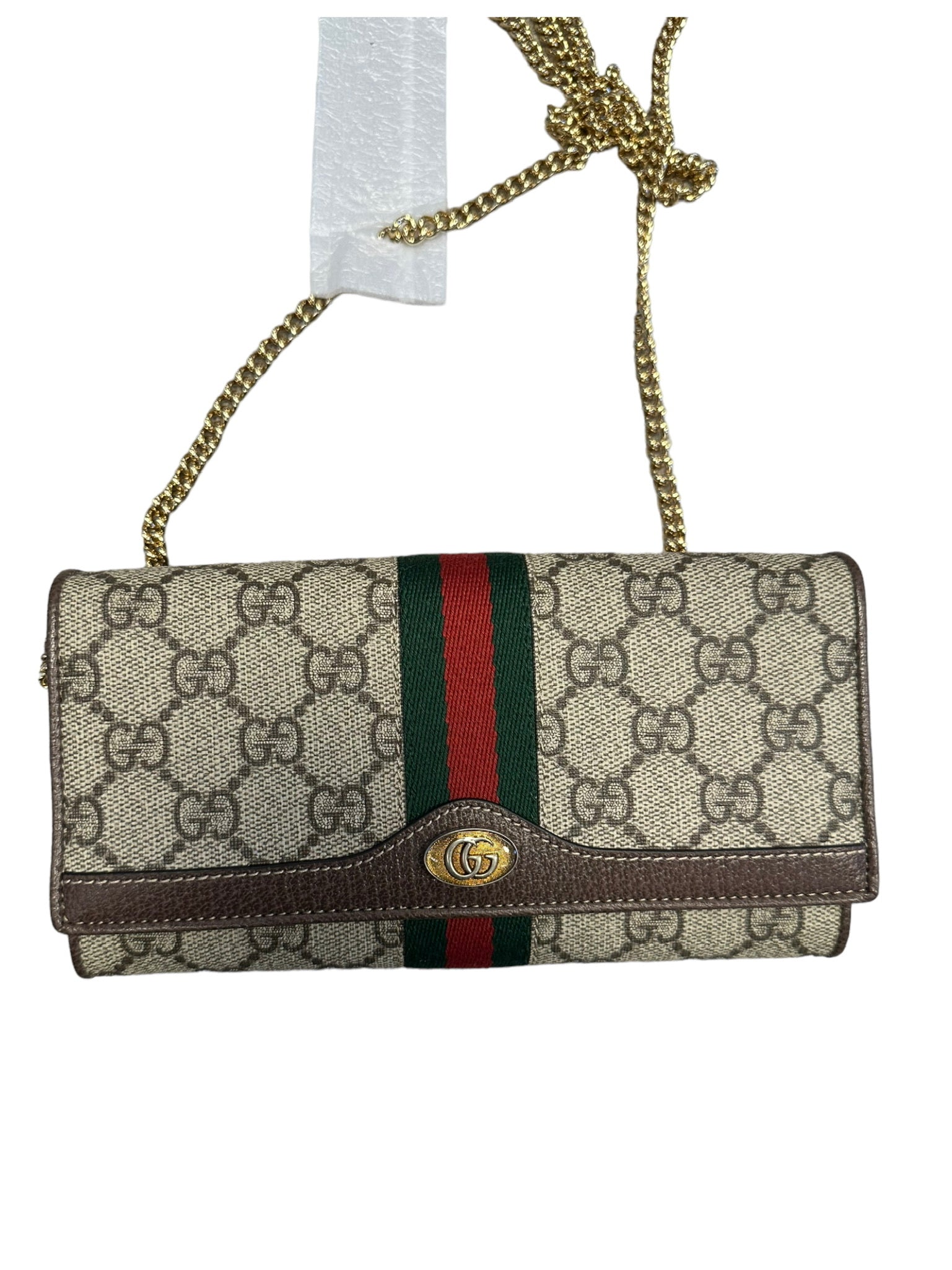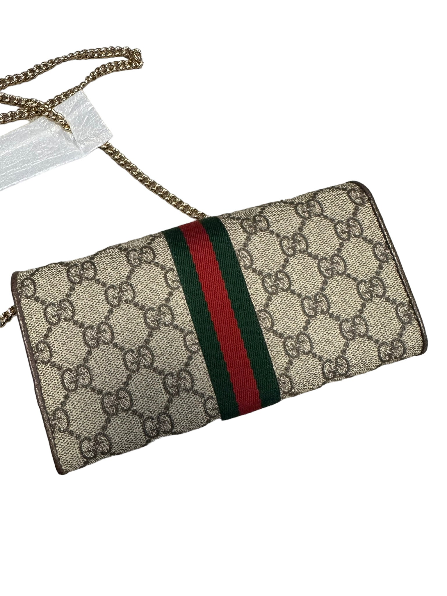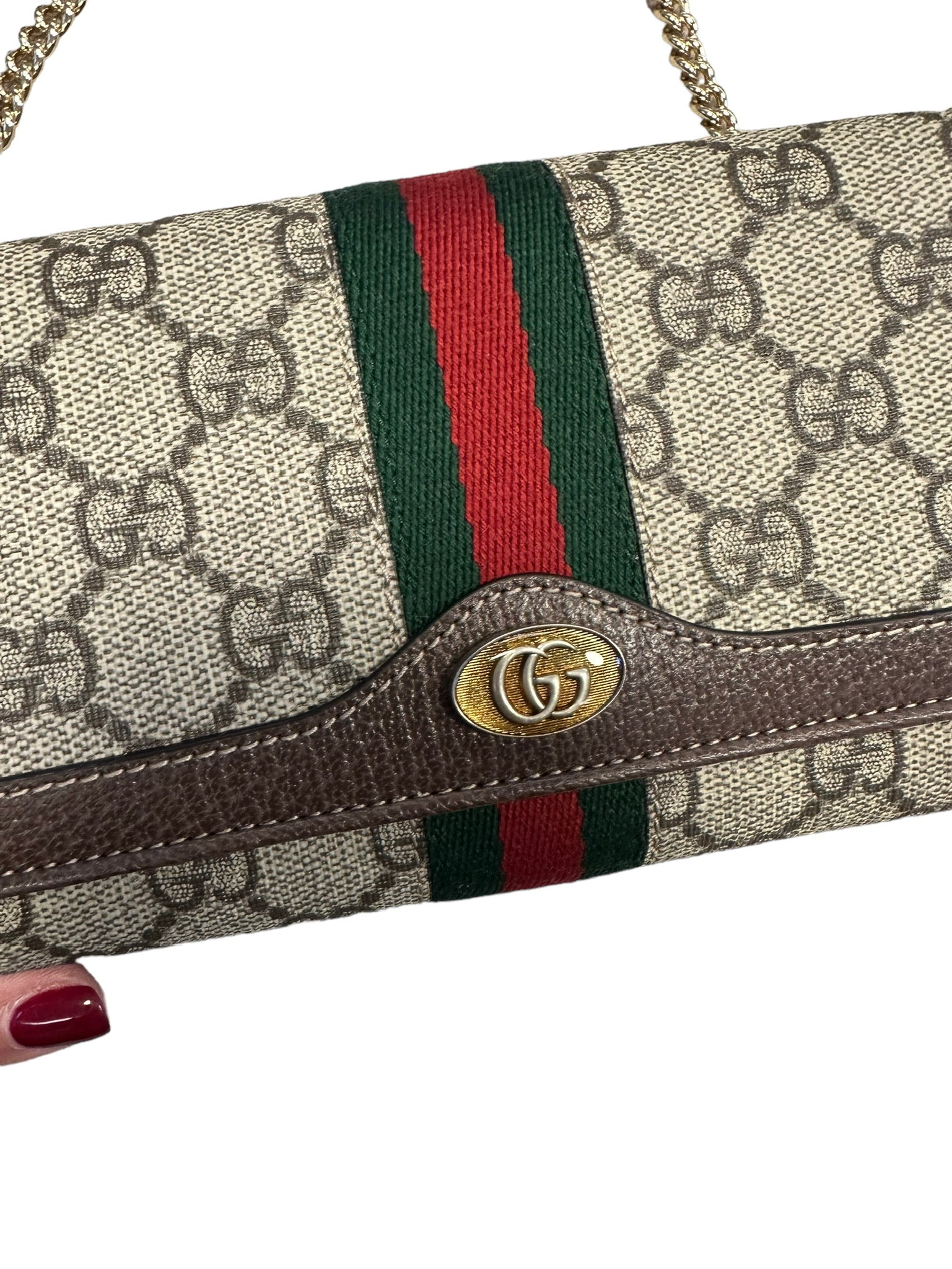 GUCCI- Ebony GG Supreme Canvas Ophidia GG Chain Wallet