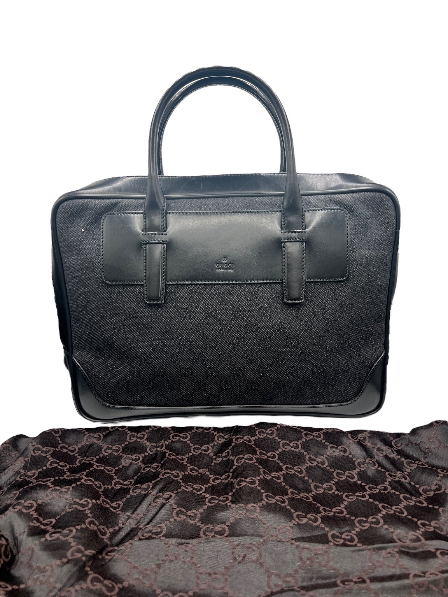 This pre-owned GUCCI business bag is in very good condition. It comes with a dust bag and has been authenticated by entrupy, ensuring that you are getting an authentic designer product.