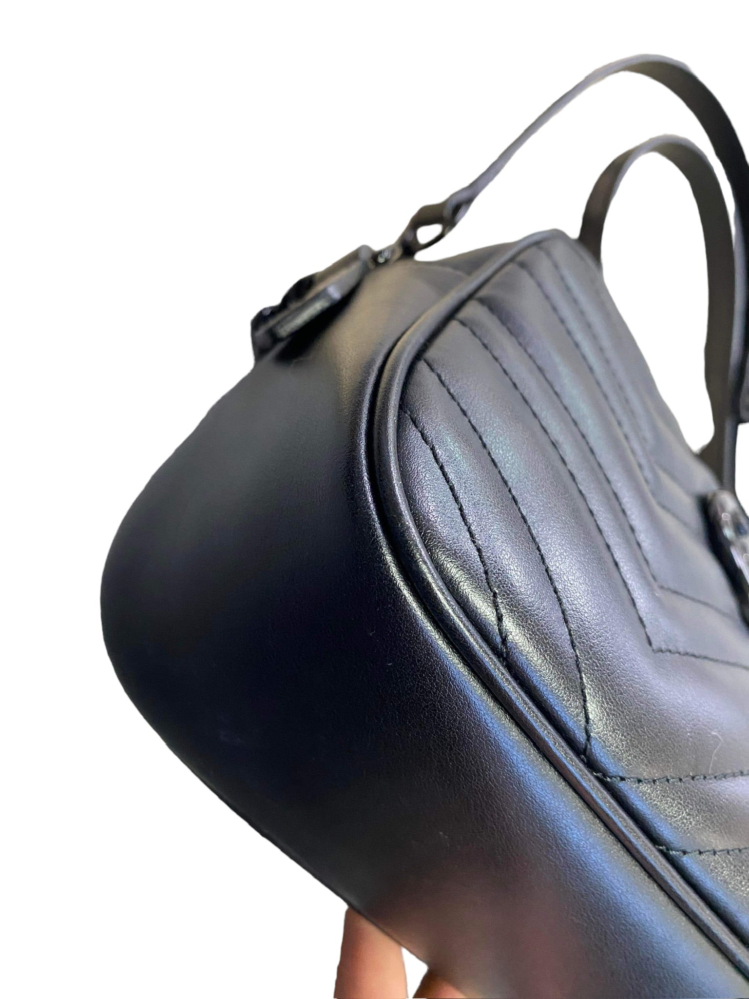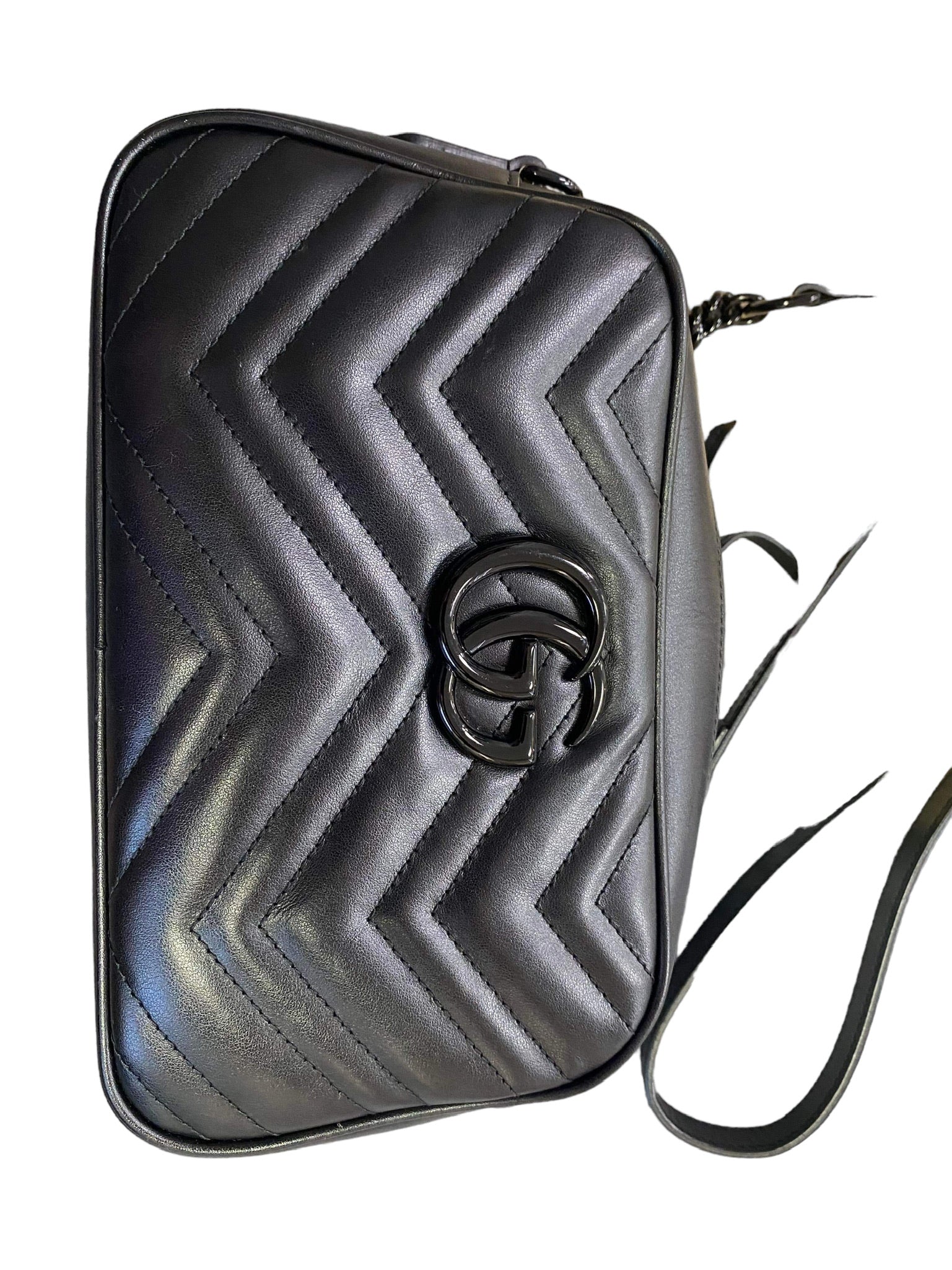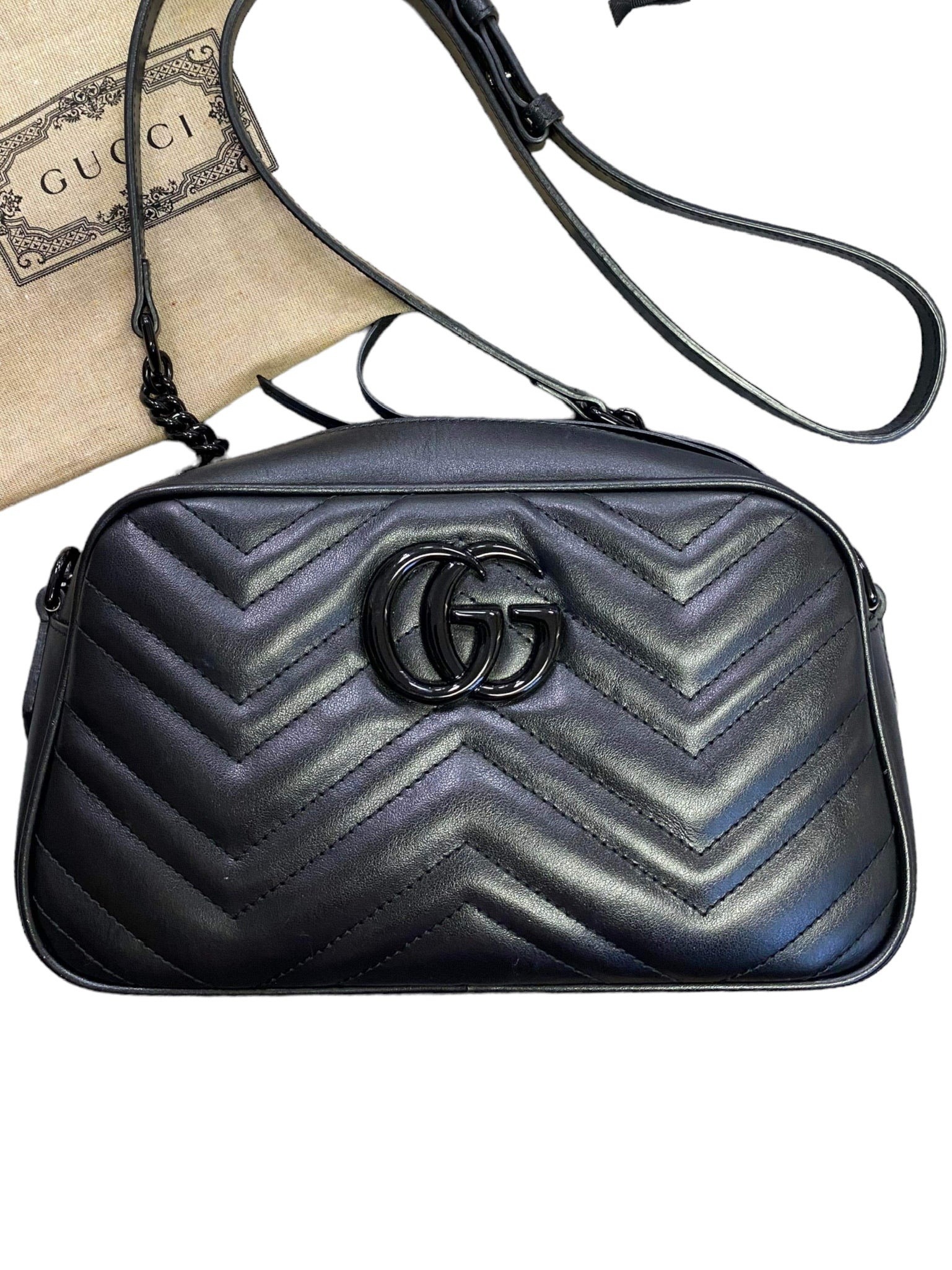 A timeless classic, this GUCCI GG Black Marmont is in excellent condition and perfect for any occasion. It features a classic black leather exterior with signature gold-tone hardware to complete the look. Includes dustbag for added convenience.