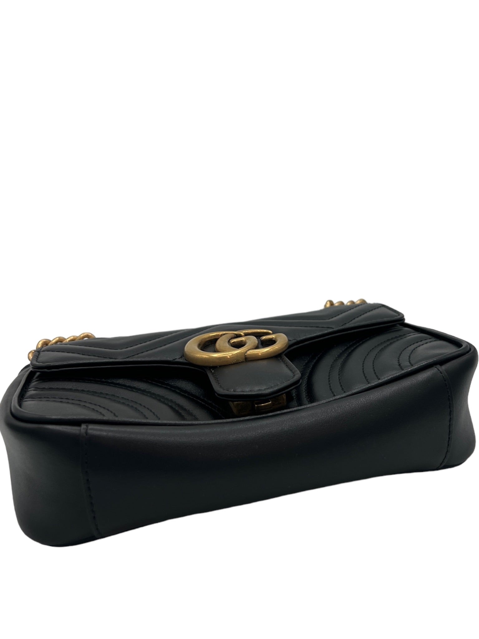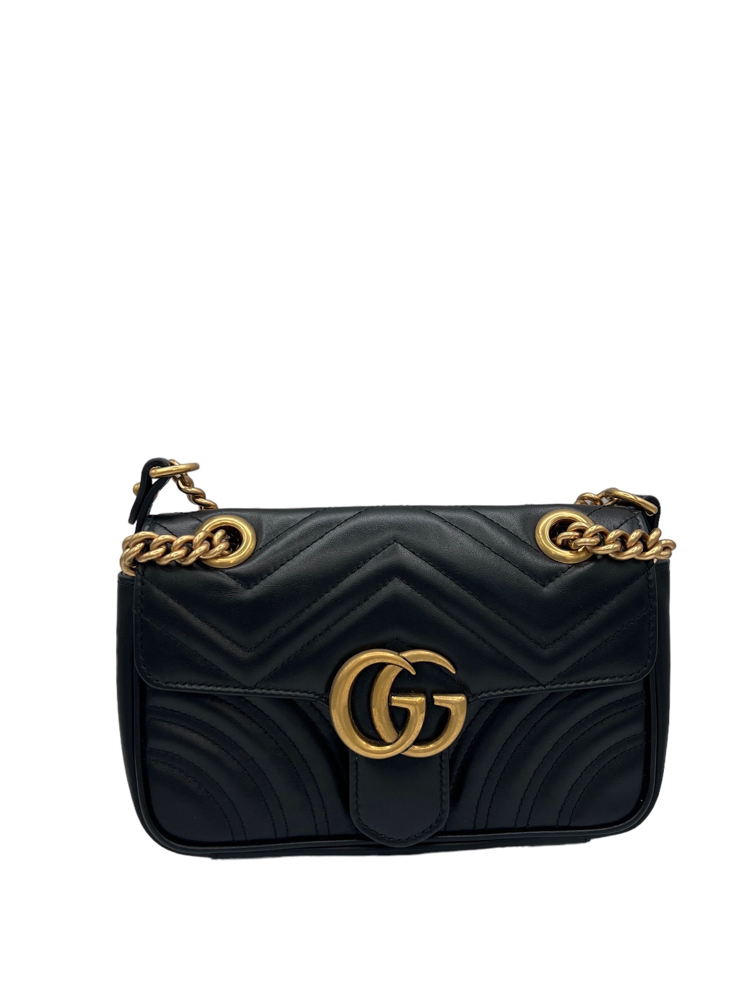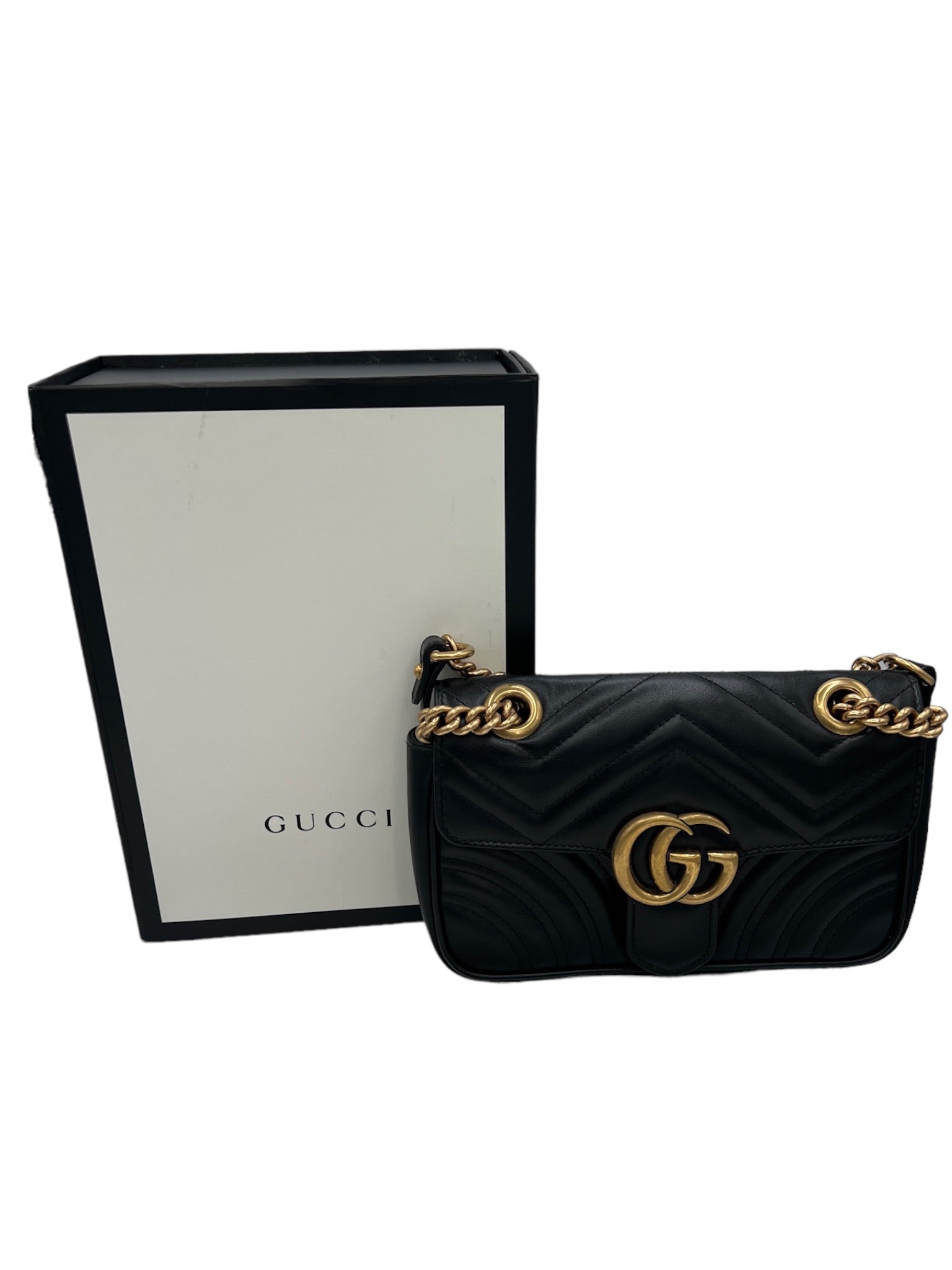 - This Pre-owned GUCCI GG Marmont Black Leather Crossbody Bag features: