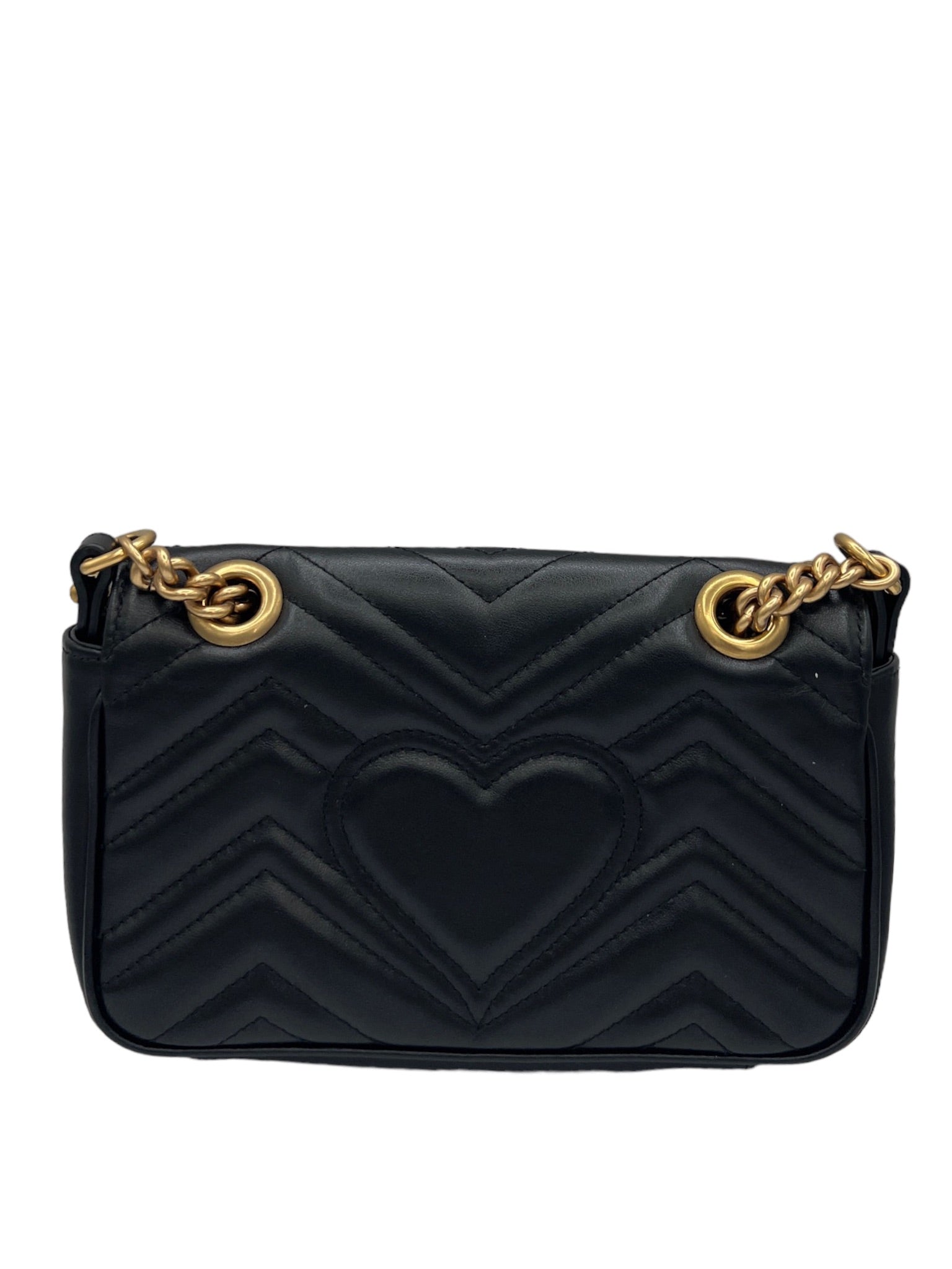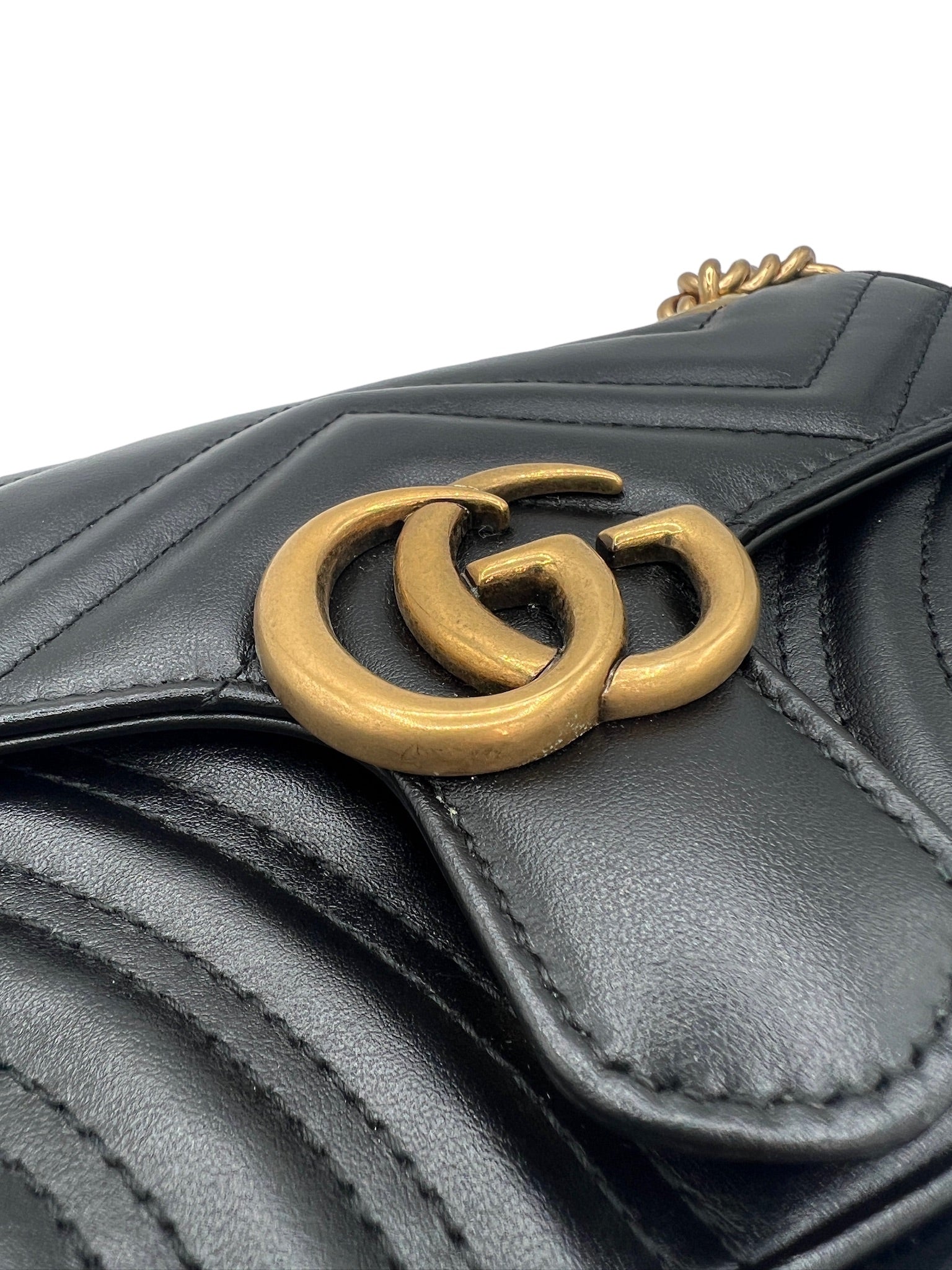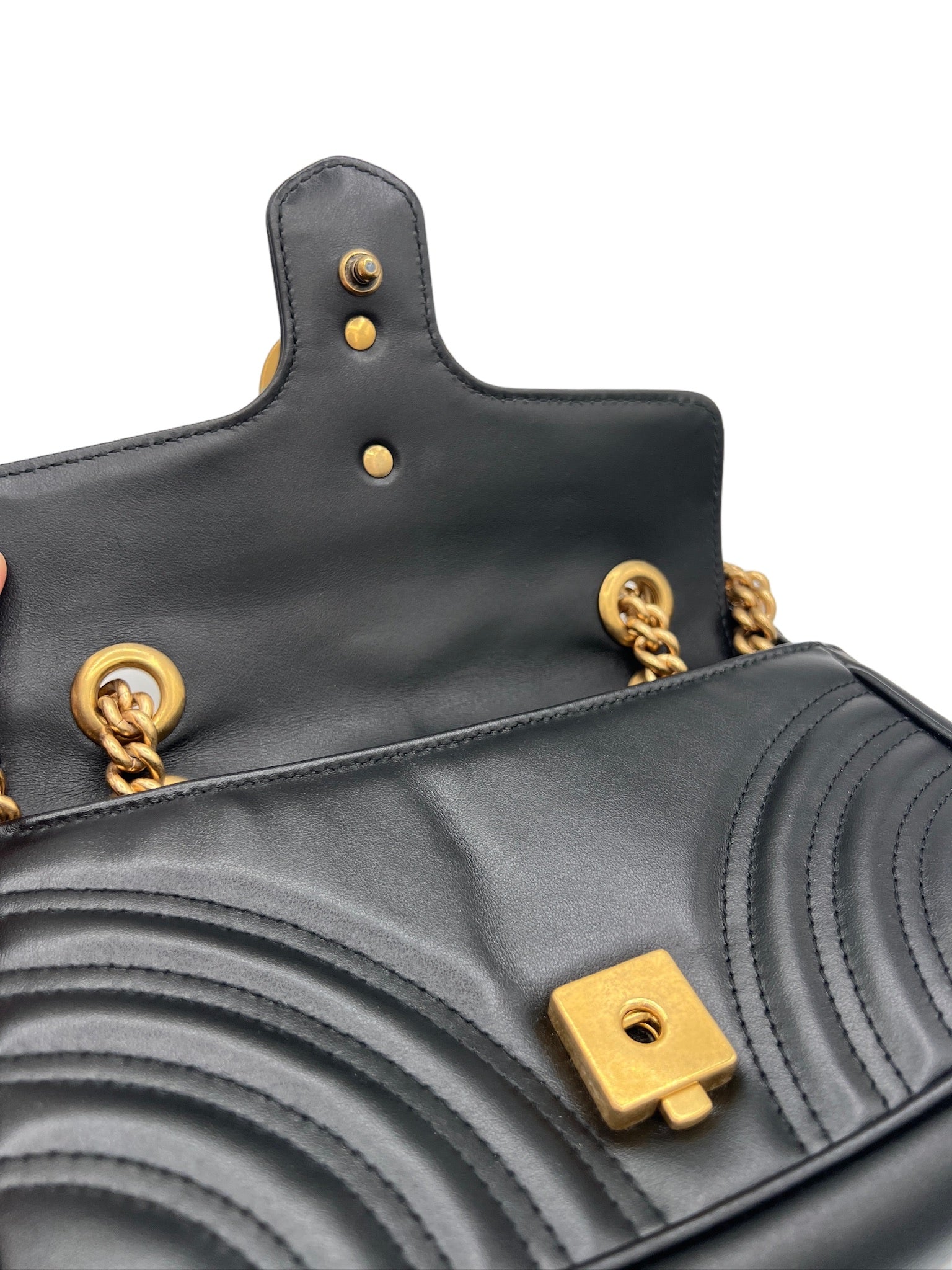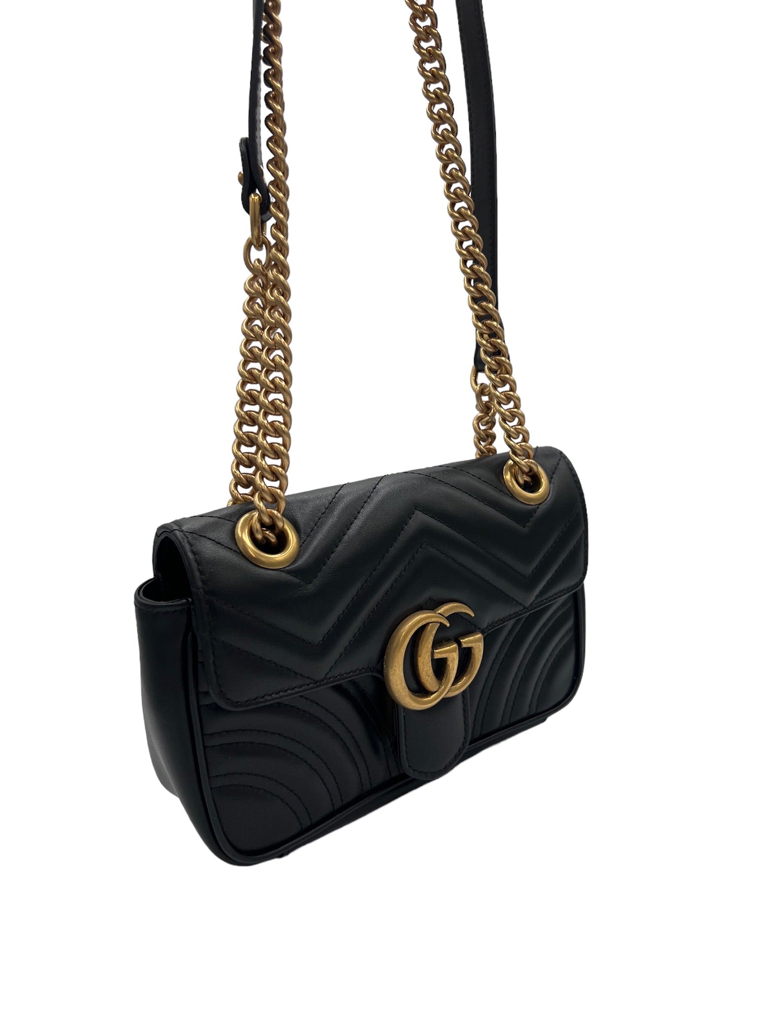 - This Pre-owned GUCCI GG Marmont Black Leather Crossbody Bag features: