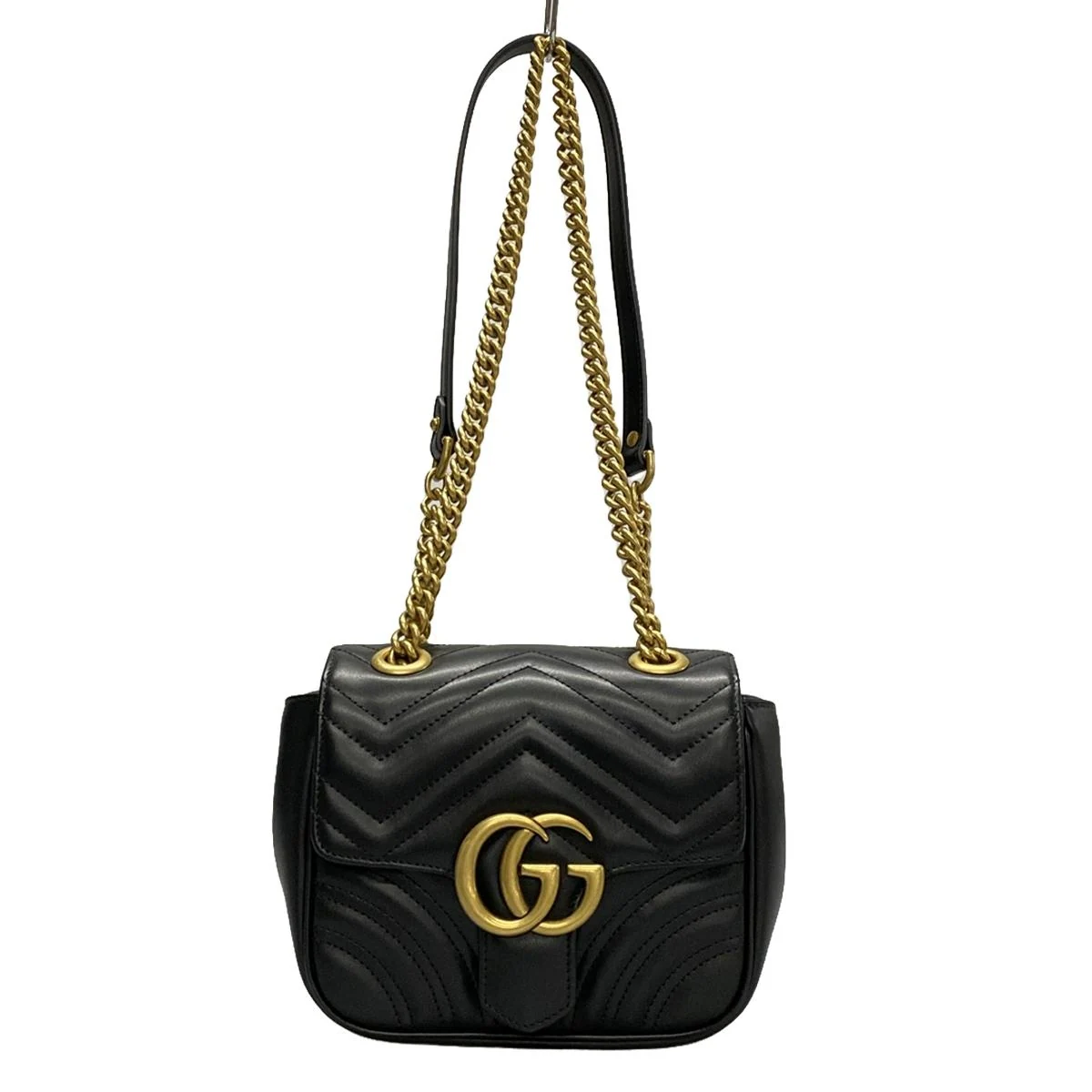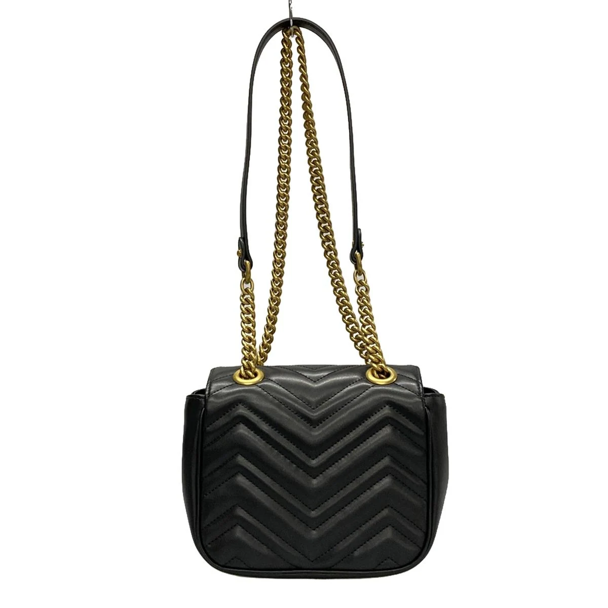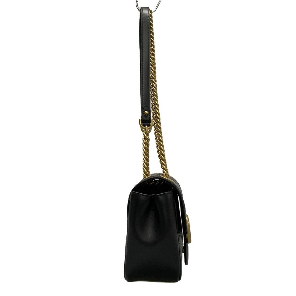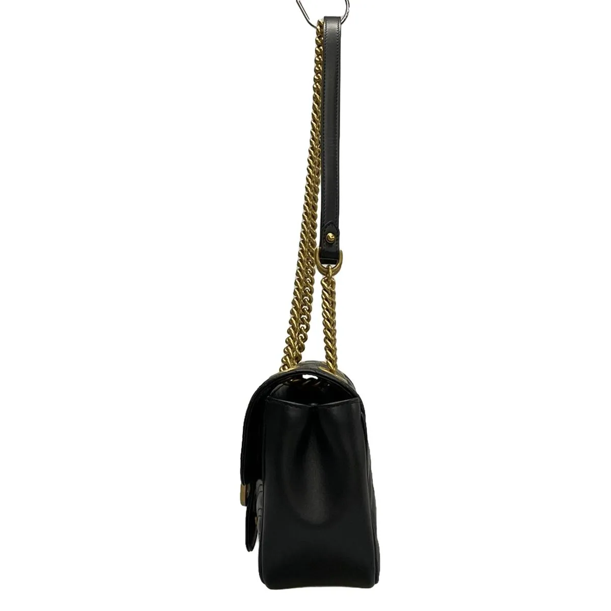 This pre-owned Gucci GG Marmont Black Leather Shoulder Bag is a luxurious addition to your collection.