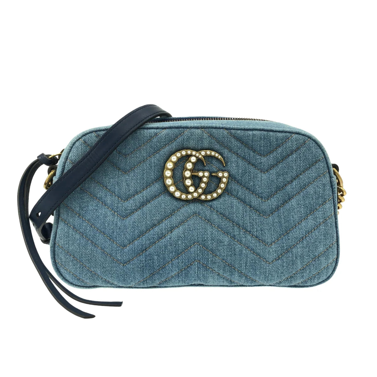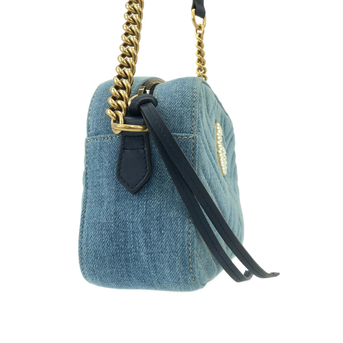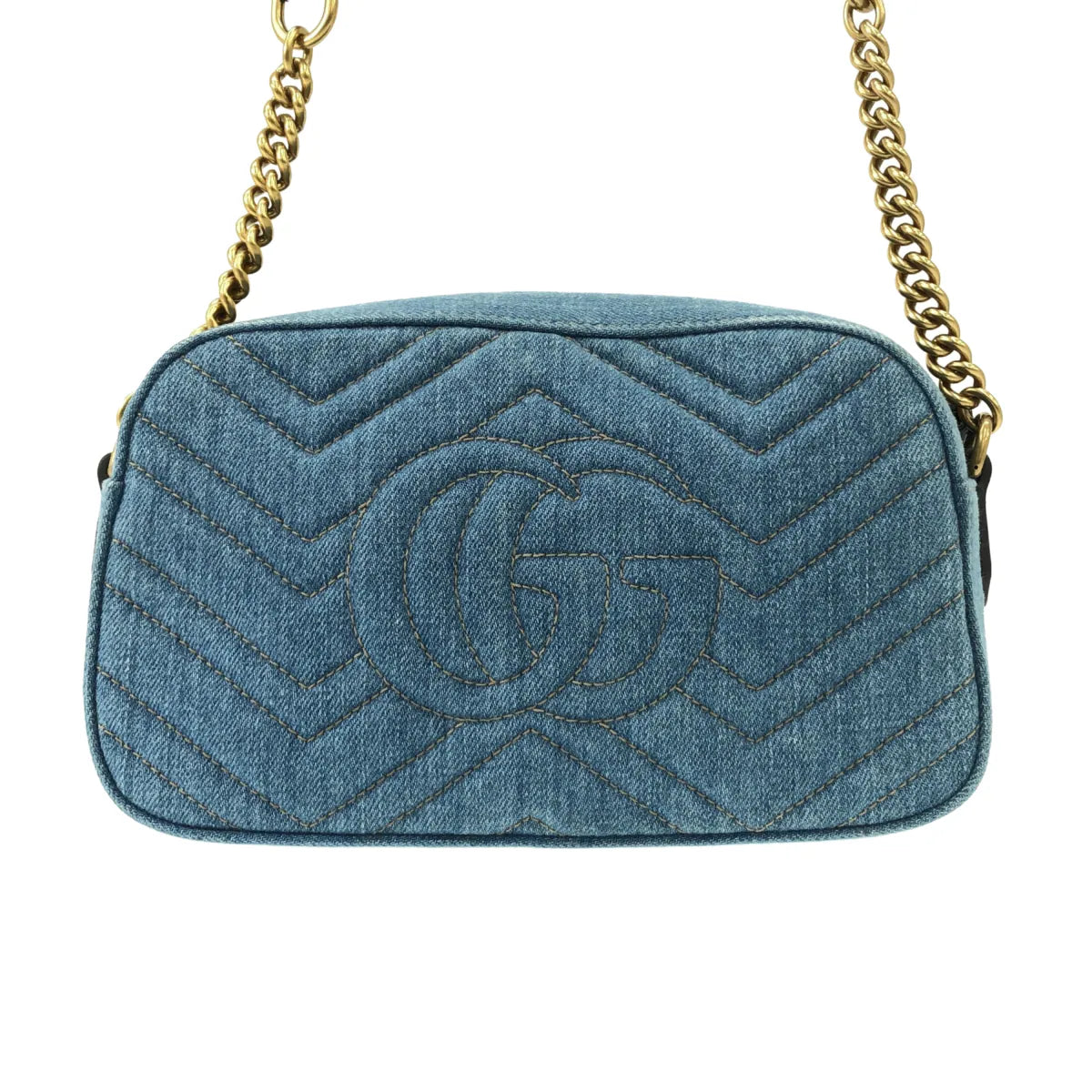 GUCCI - GG Marmont Denim Small Shoulder Bag Blue Denim