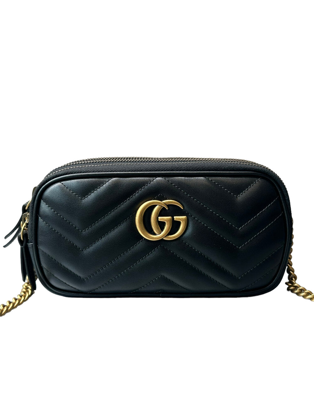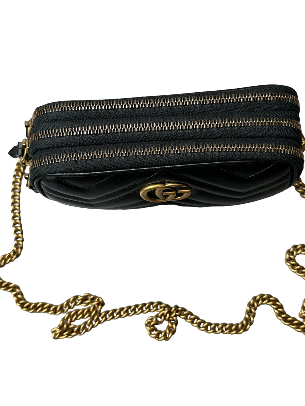 GUCCI- GG Marmont Triple Zip Chain Bag Matelasse Leather