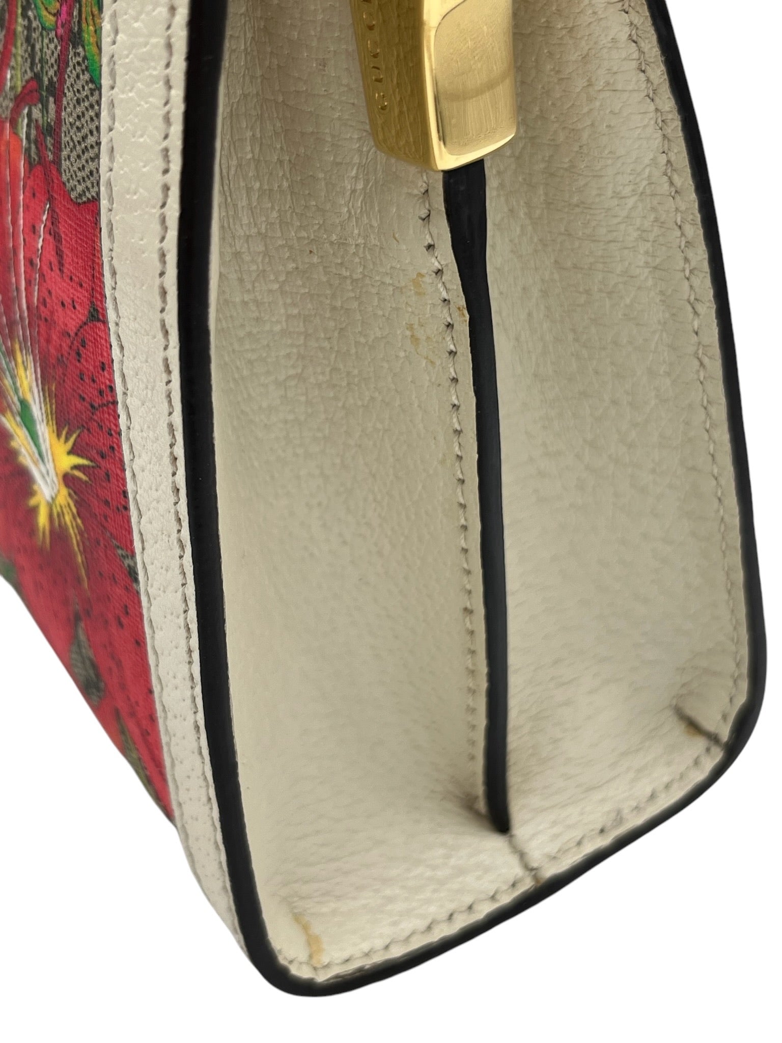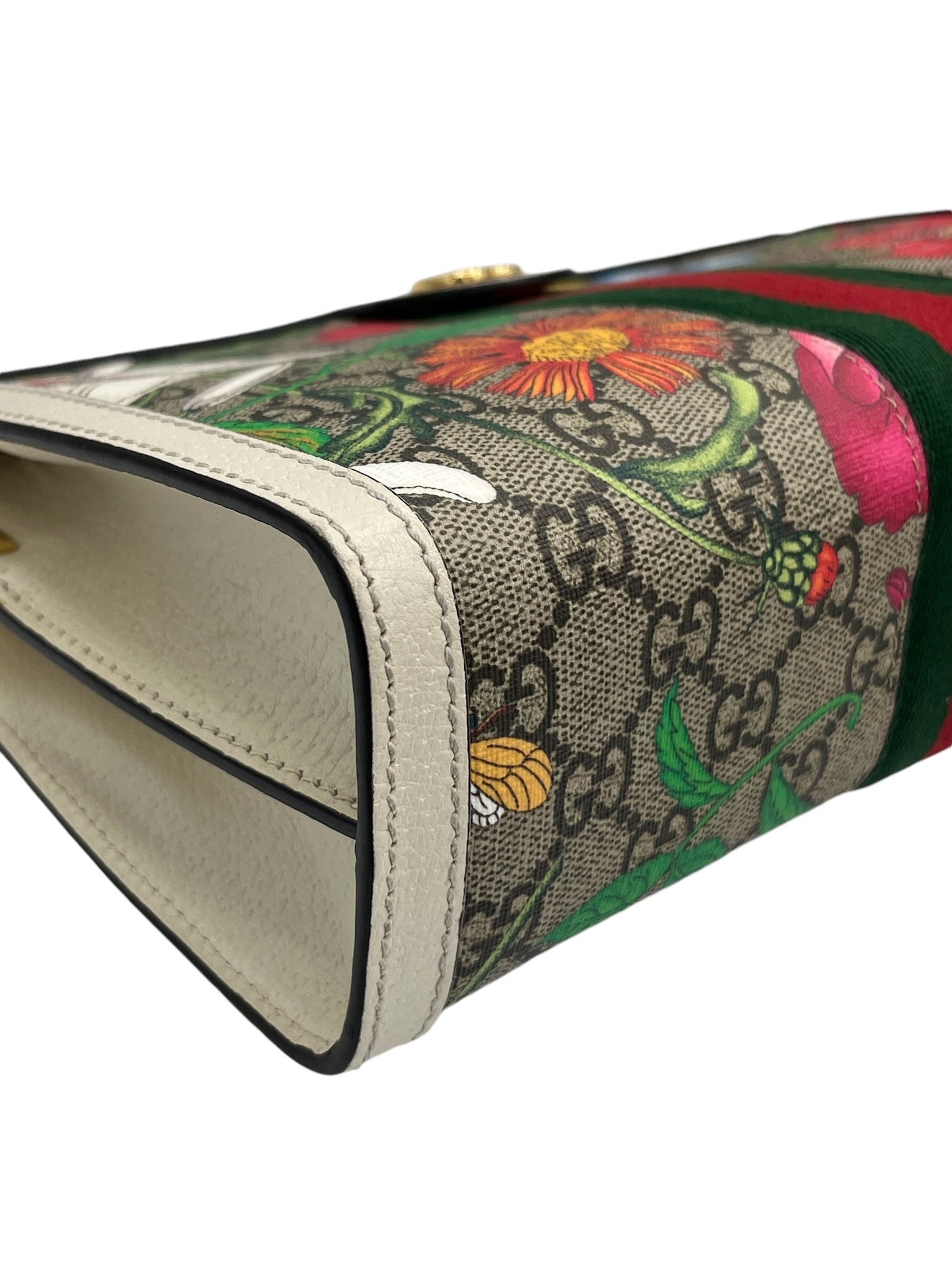 PRE-OWNED GG Supreme Monogram Flora Web Small Ophidia Chain Shoulder Bag
