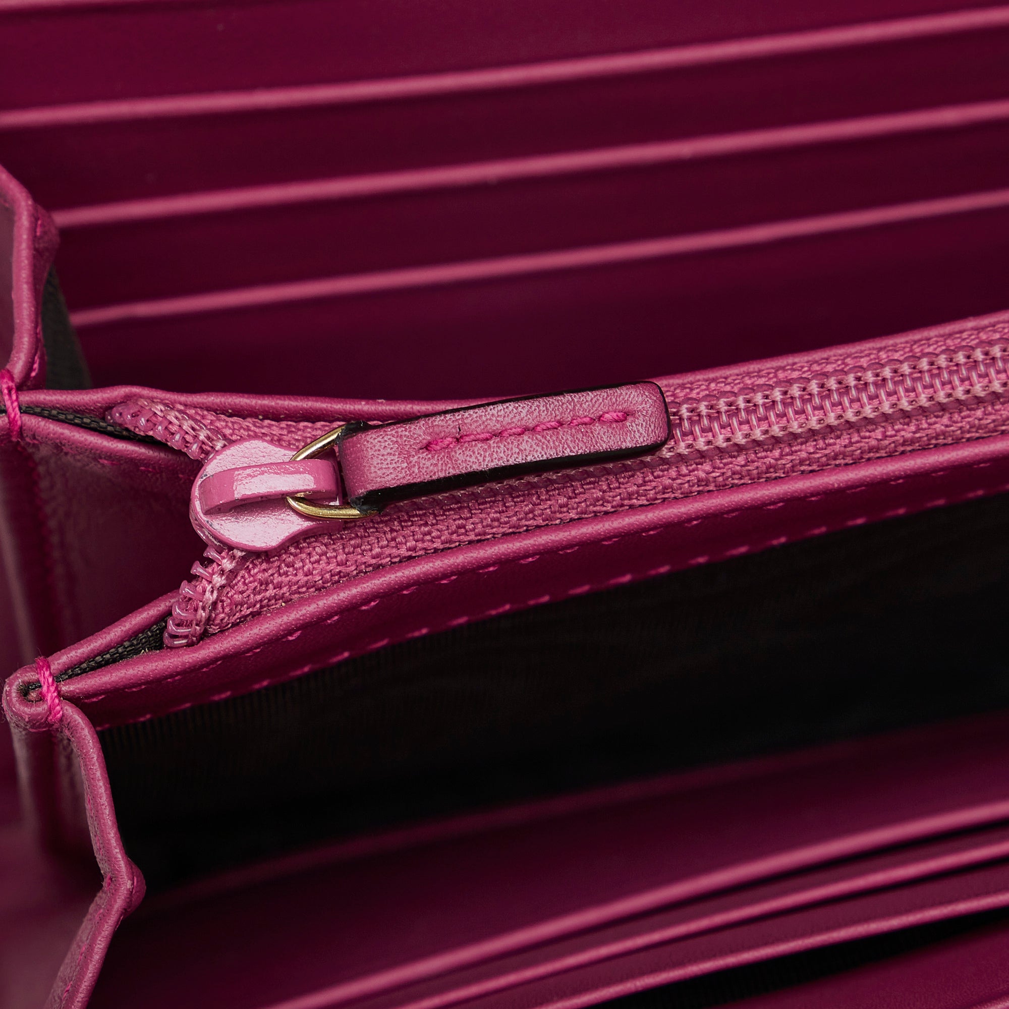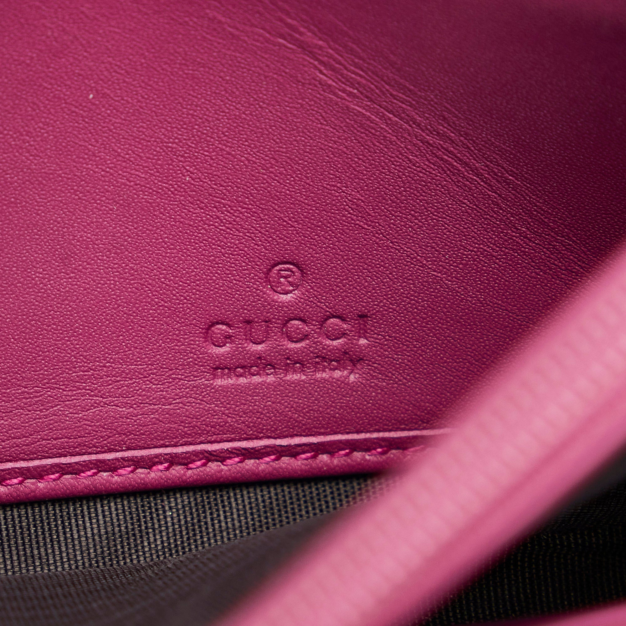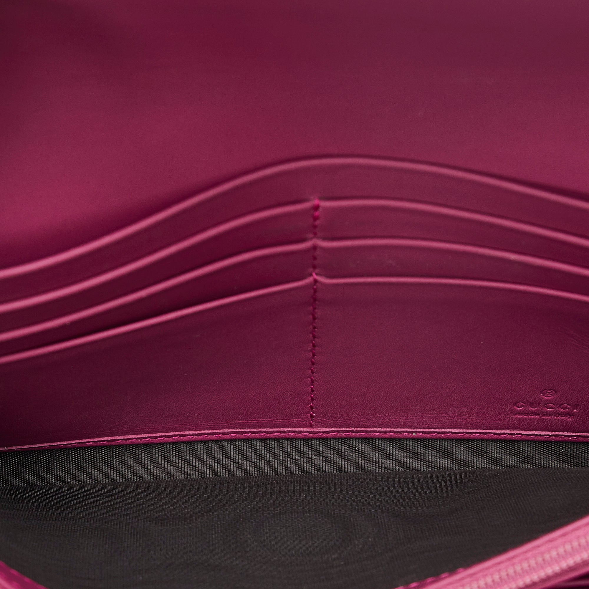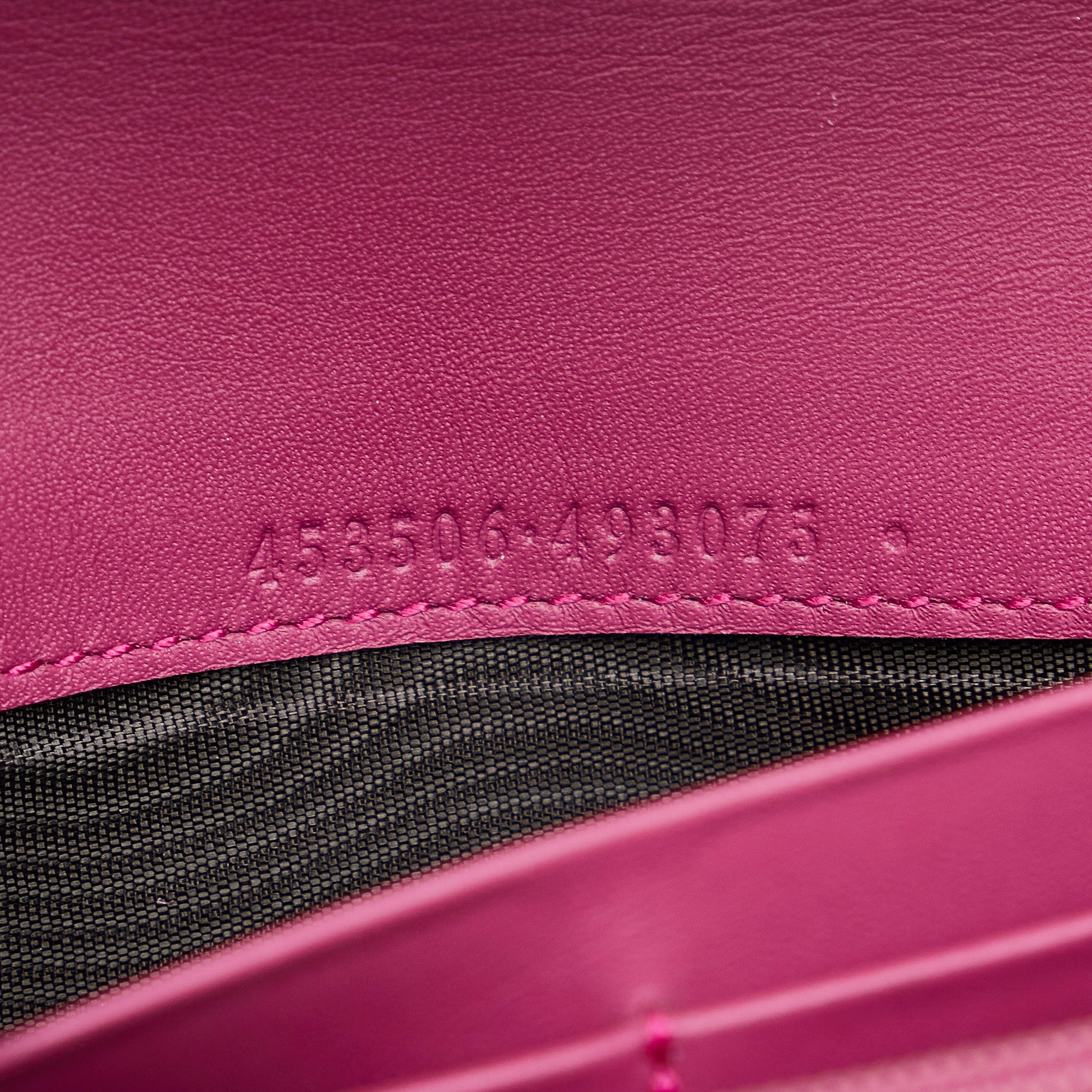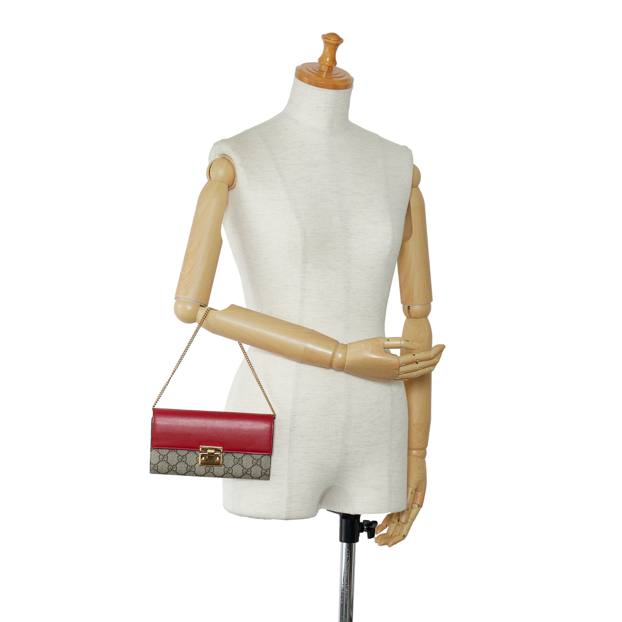 The GUCCI GG Supreme Padlock Wallet On Chain is the ideal evening accessory. Crafted from coated canvas with leather trim, this baguette comes with a removable chain handle and a secure front flap with push lock closure. Interior zip and slip pockets provide added convenience.