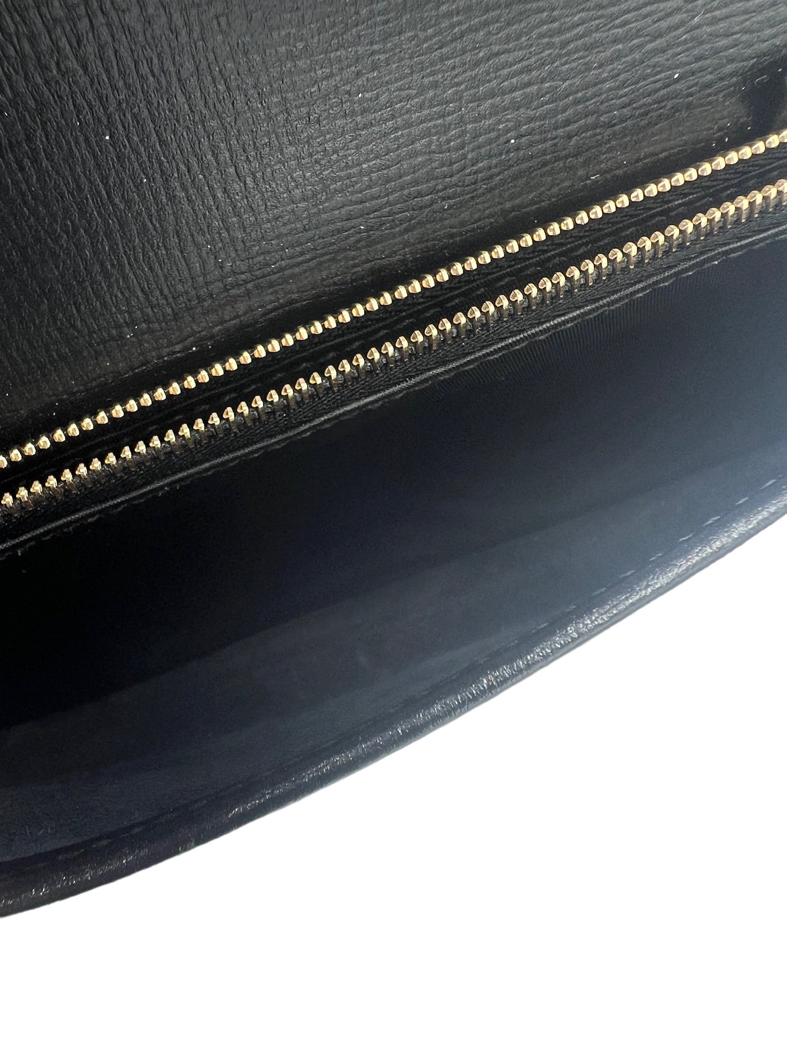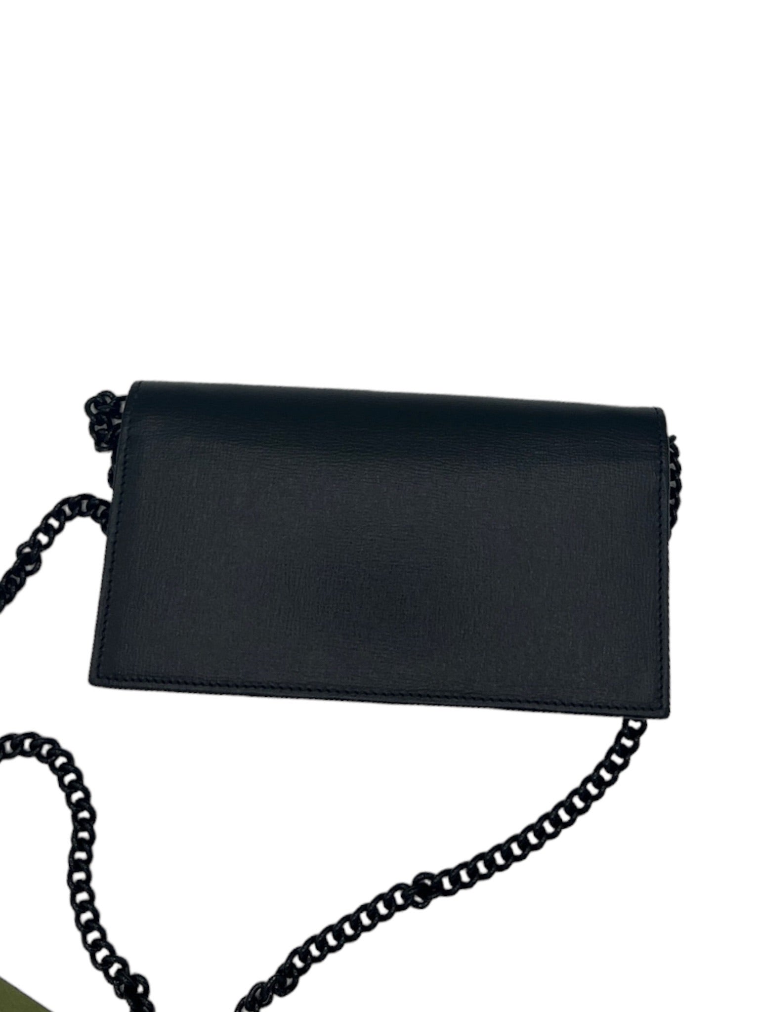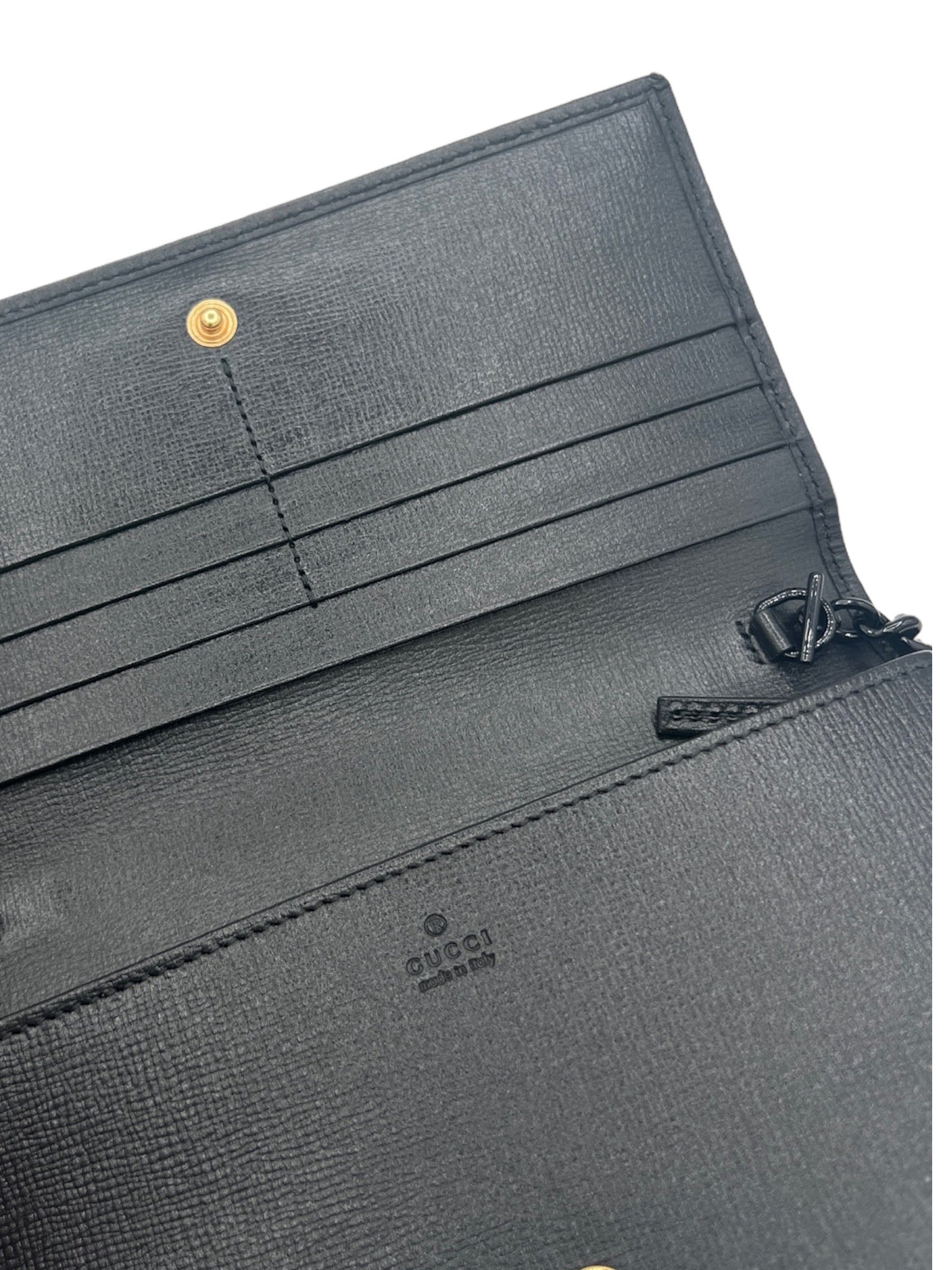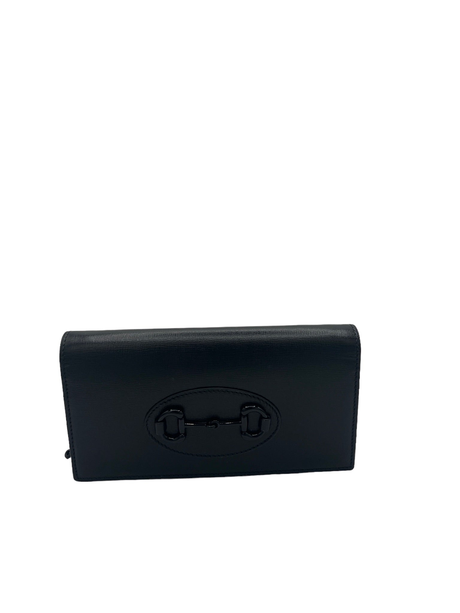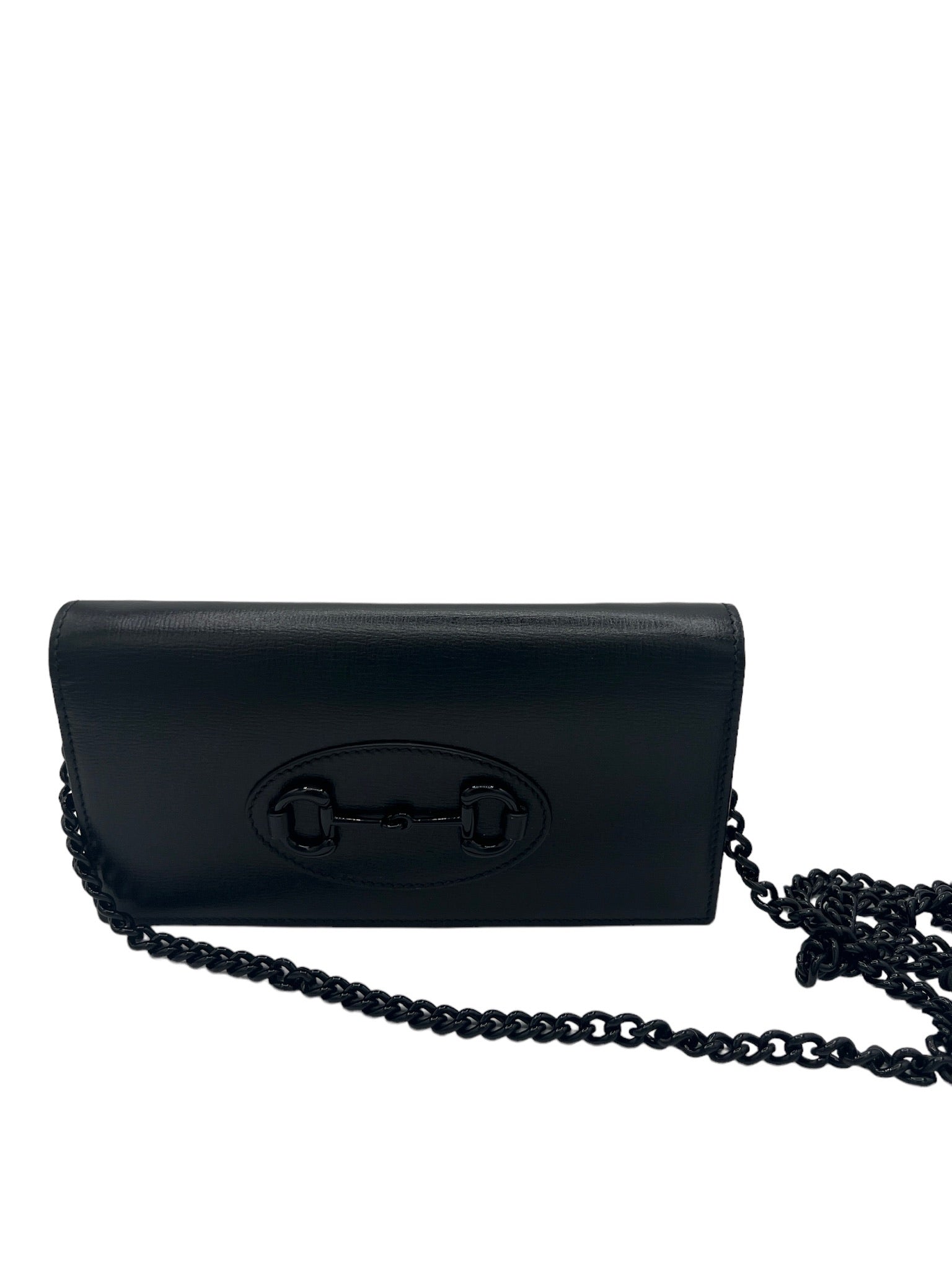 This Pre-owned GUCCI Horsebit 1955 Chain Wallet is the perfect addition to any fashion-forward woman's collection. Crafted from high-quality, black leather, this wallet boasts a very good condition and a versatile crossbody bag silhouette that is perfect for everyday use.