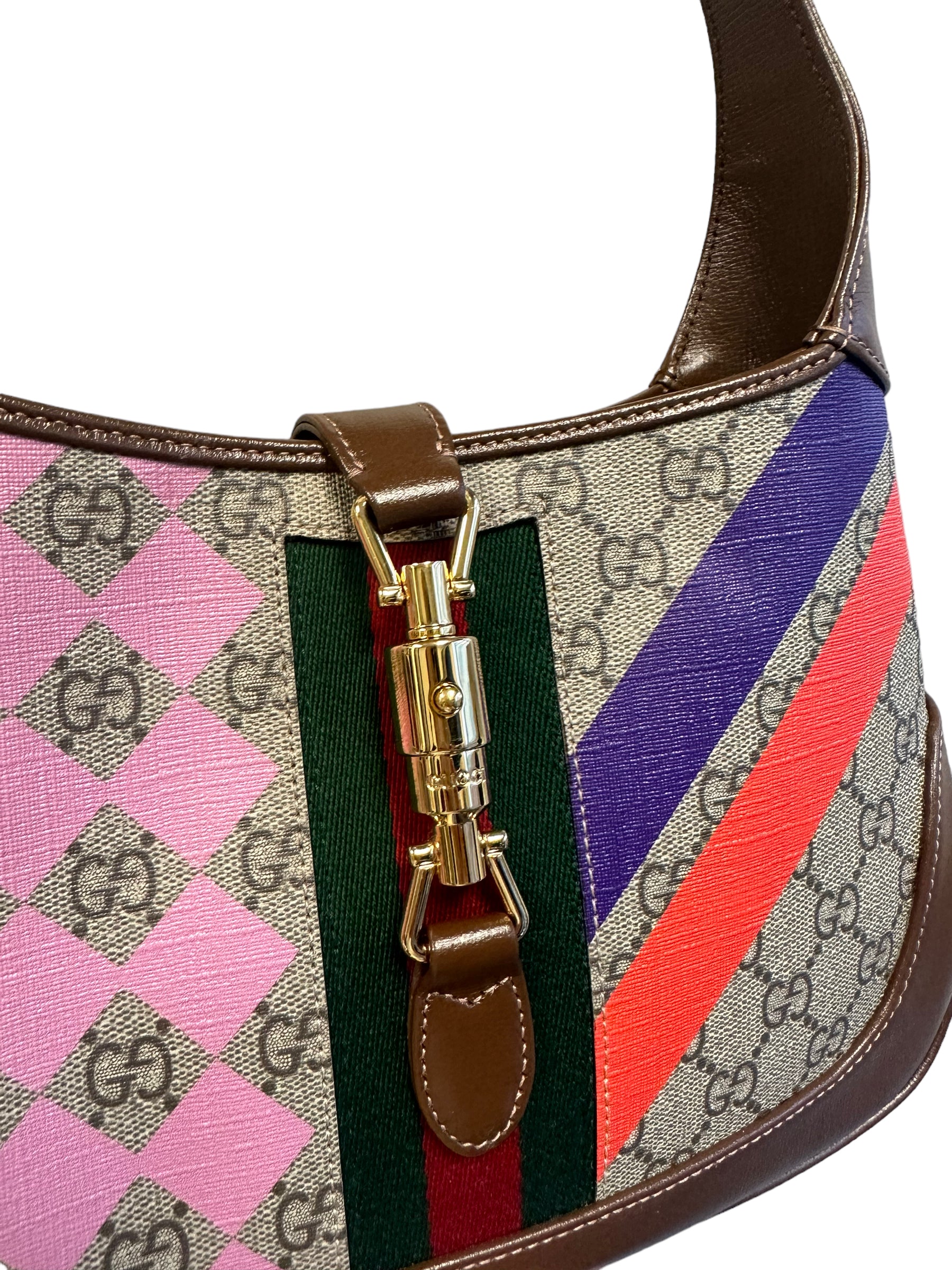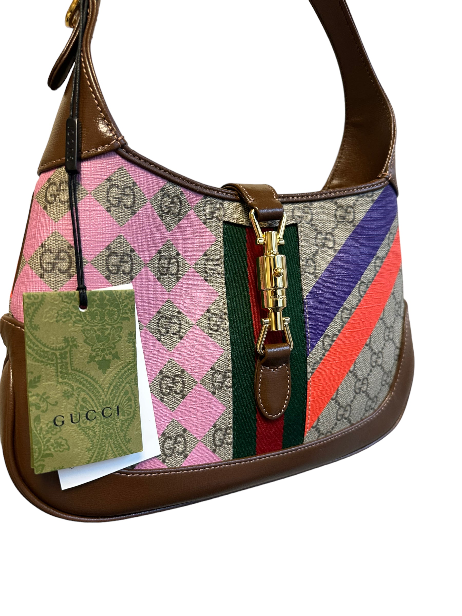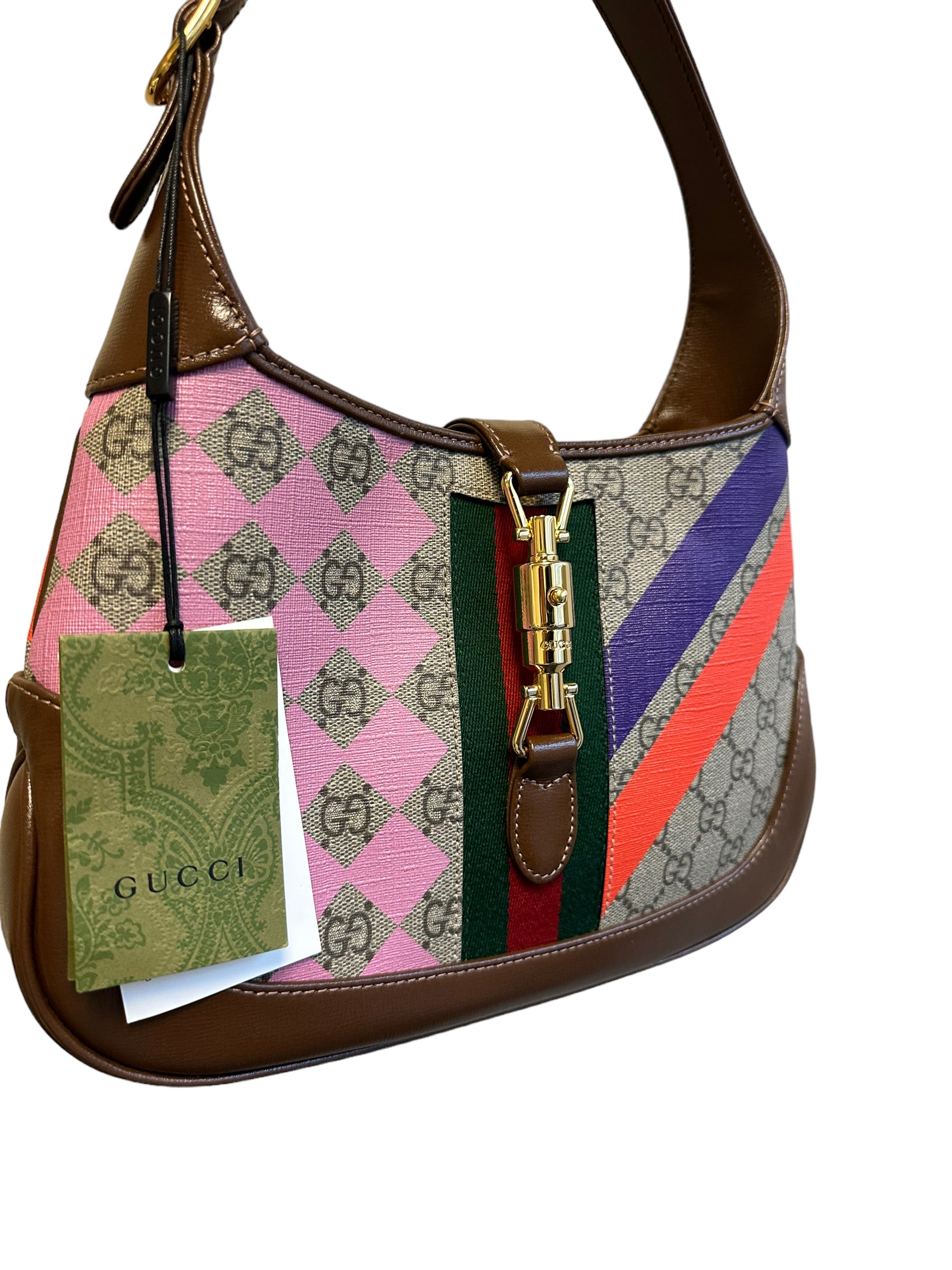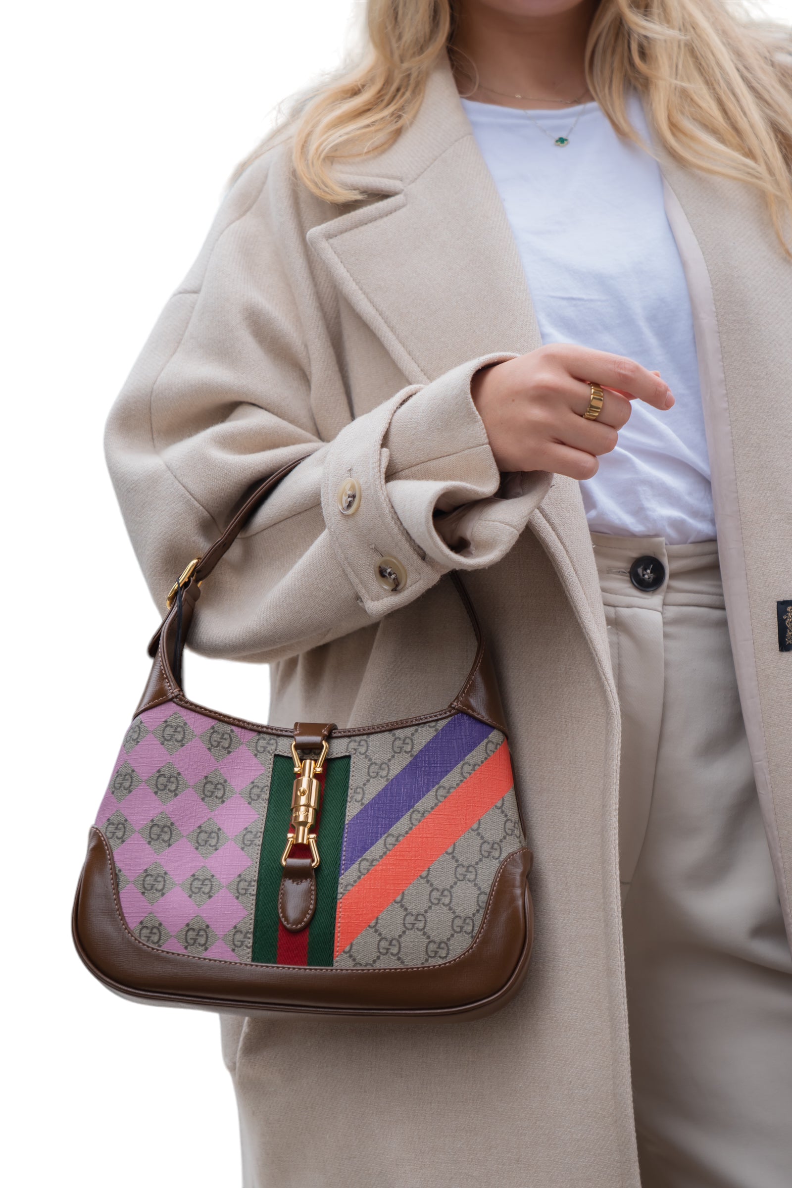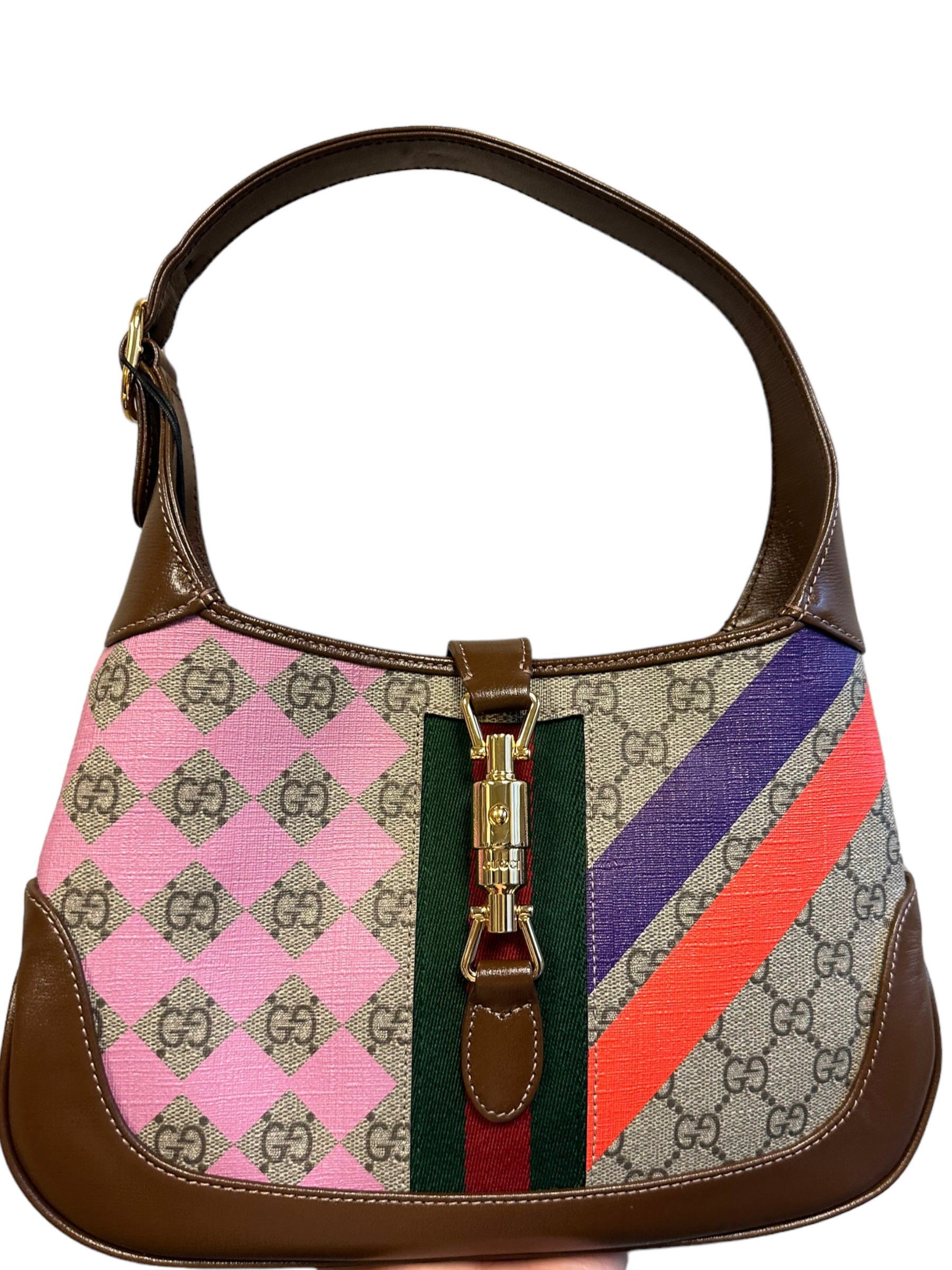 This pre-owned GUCCI Jackie 1961 Canvas shoulder bag is in like-new condition with no signs of wear, making it an excellent addition to your collection.