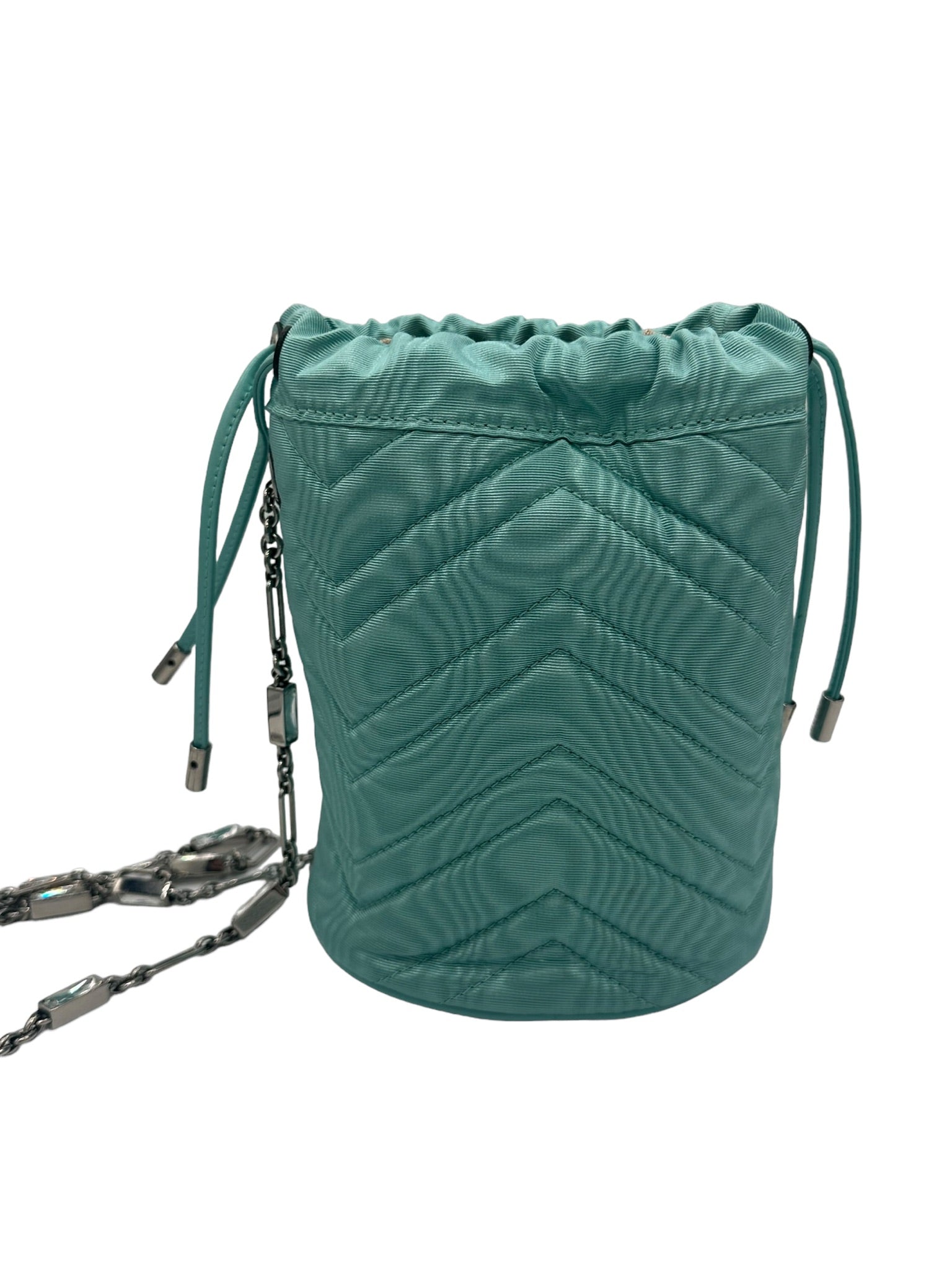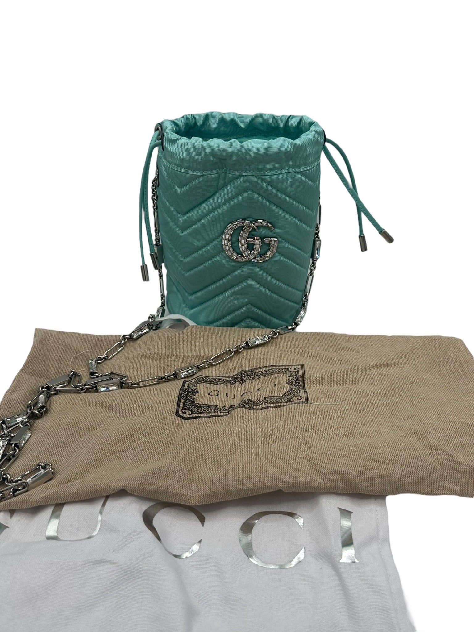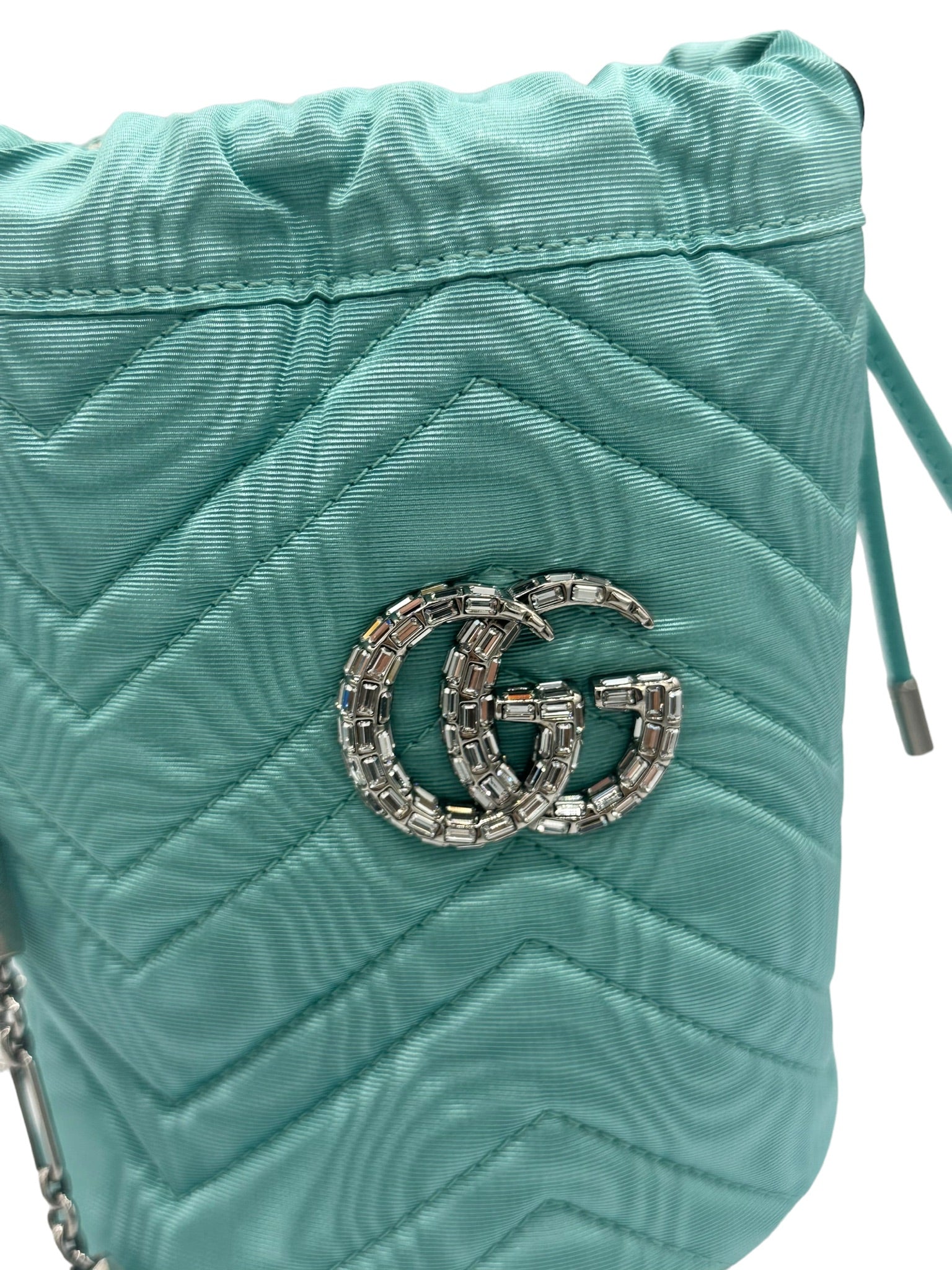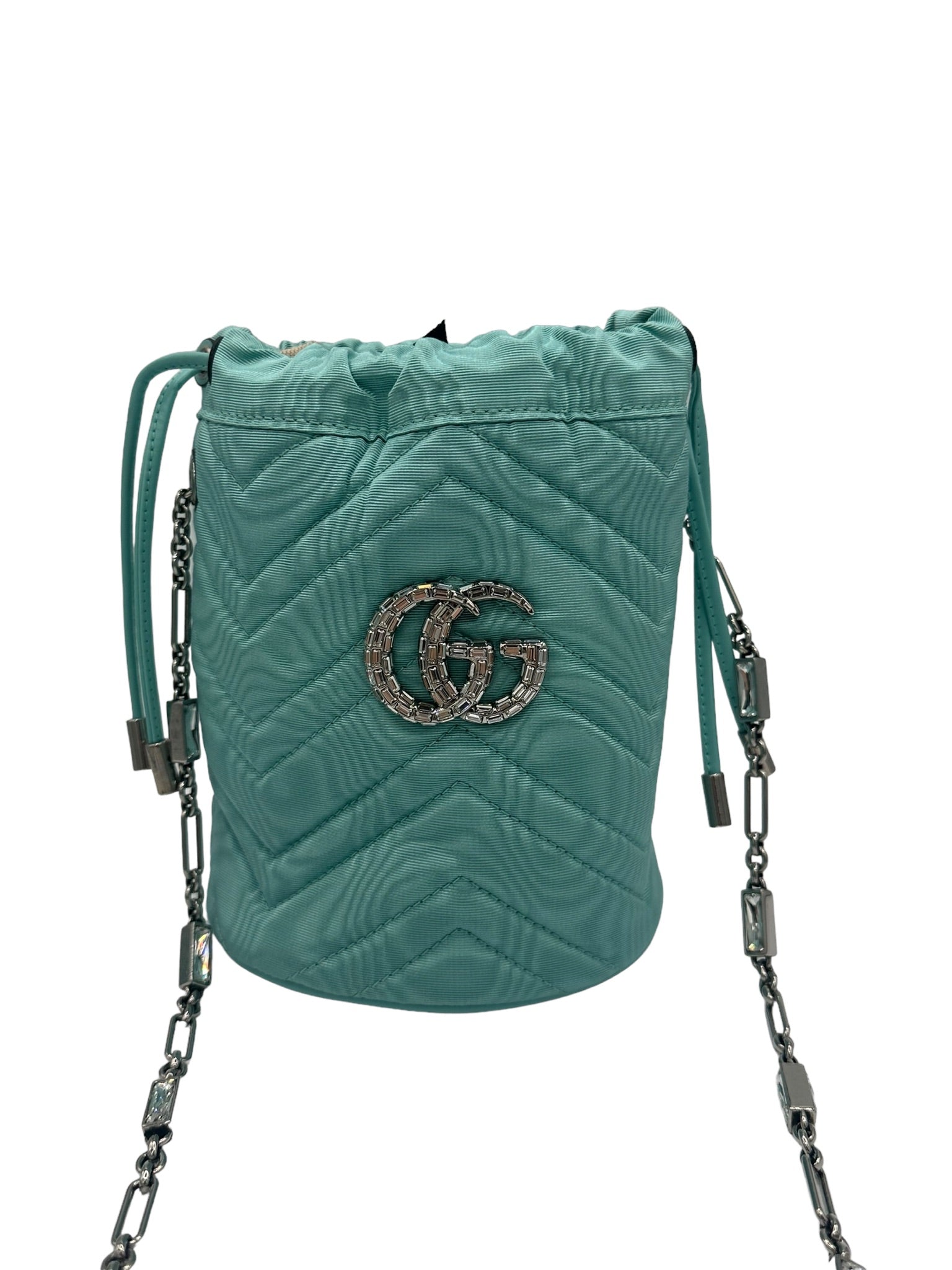 PRE-OWNED GG Moire Fabric Calfskin Crystal Matelasse Bucket Bag