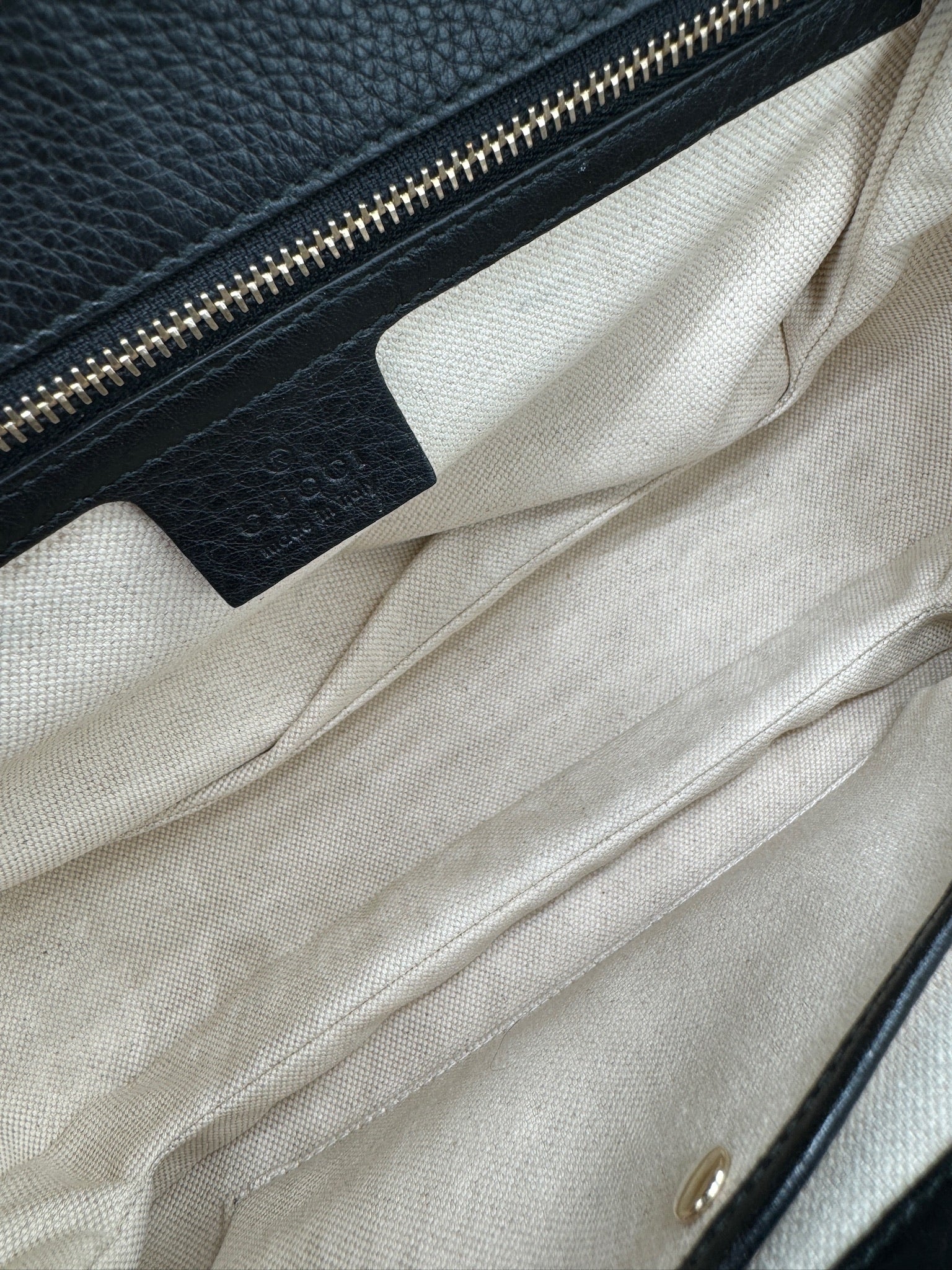 - Condition: This bag has been authenticated by entrupy and it's in good condition, showing small scratches, slight dirt marks, and some losing shape on the outside. The metal coat peeling on the clasp adds to its vintage charm.
