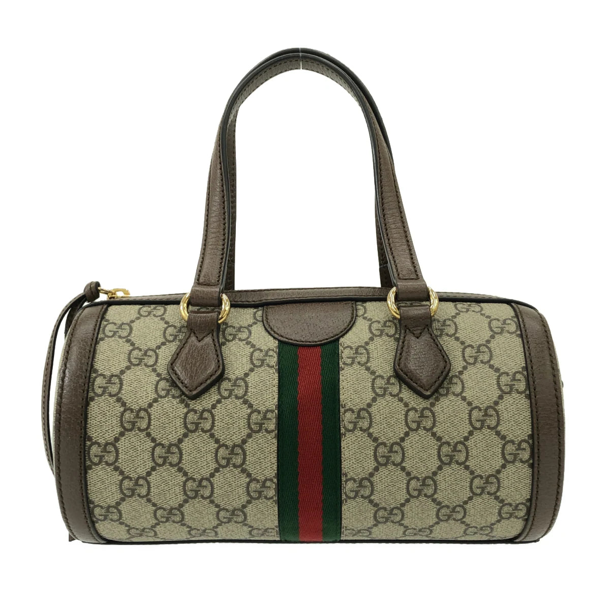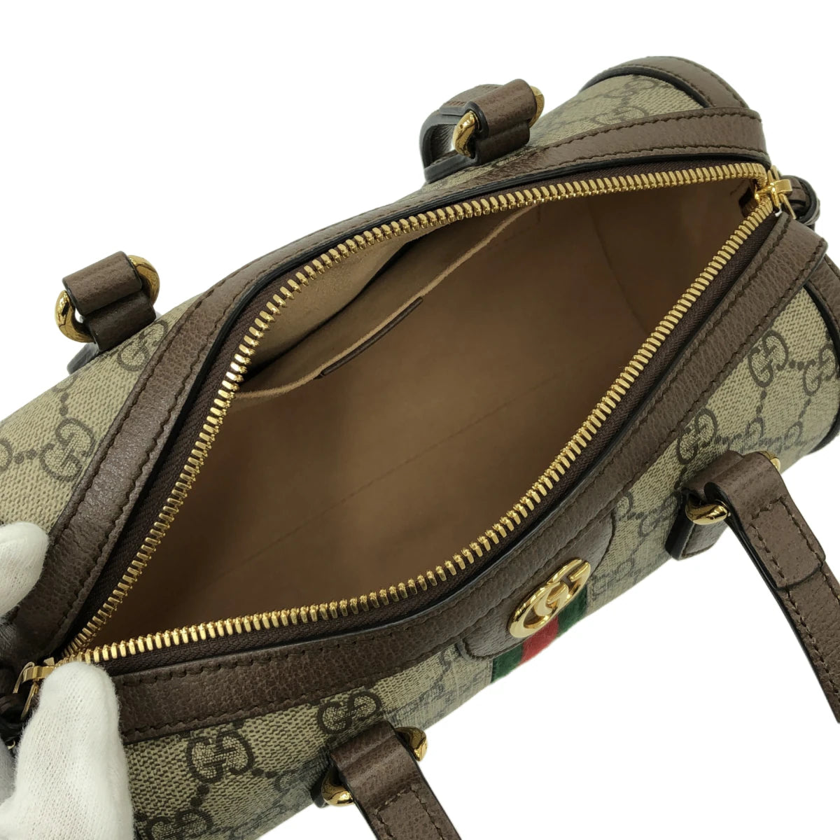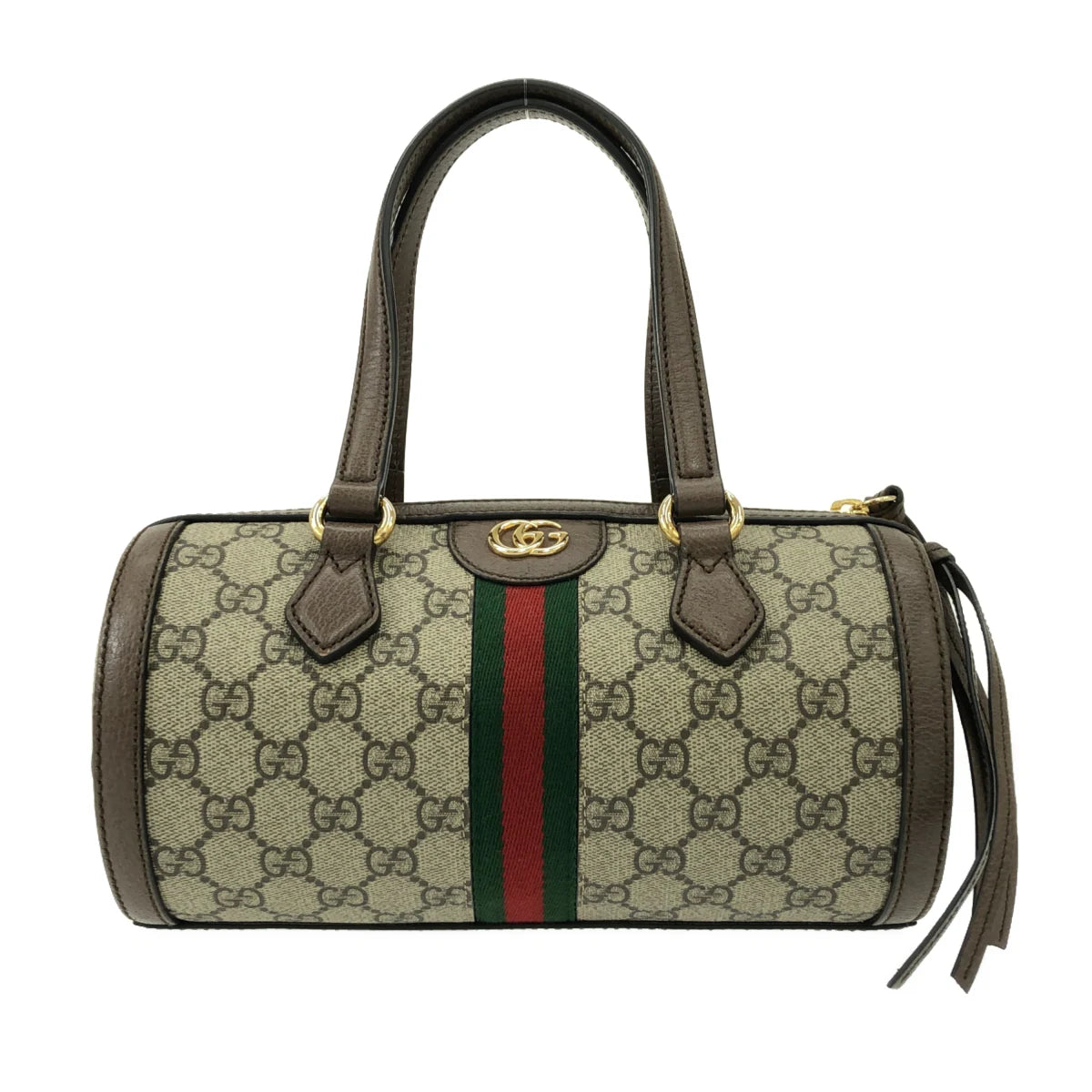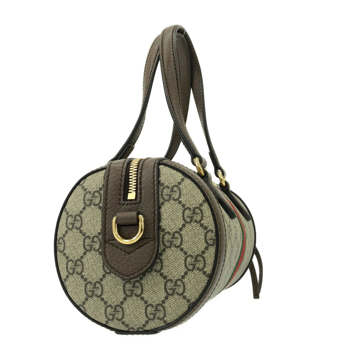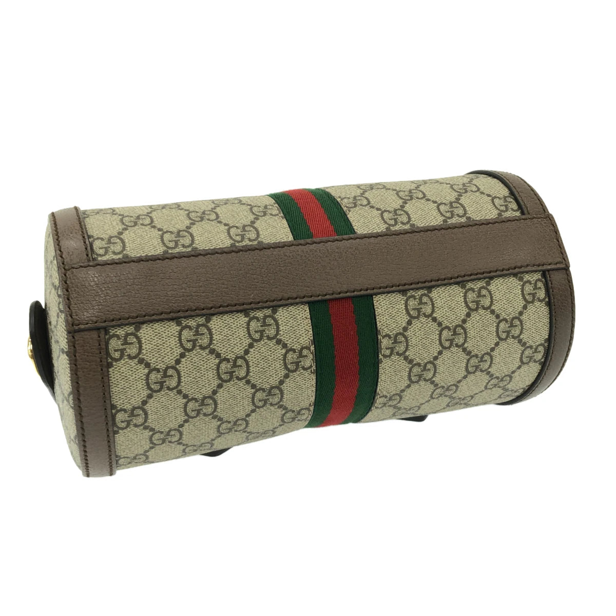 GUCCI - Ophidia Handbag Beige Dark Brown Multi PVC Leather Cotton Linen