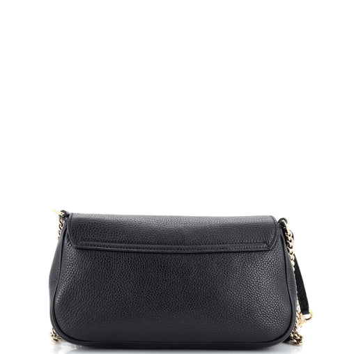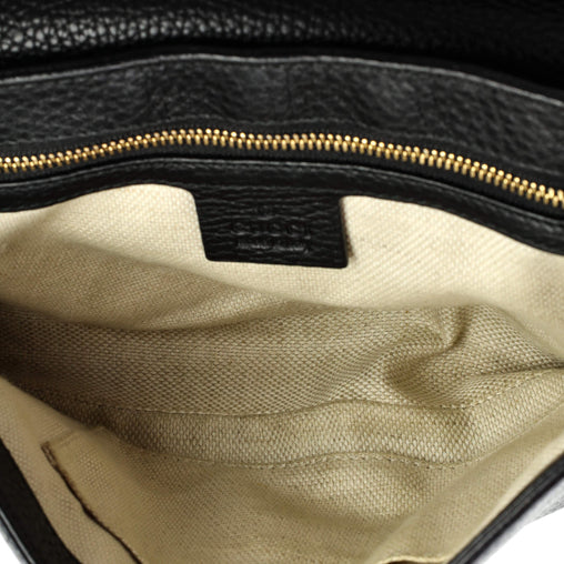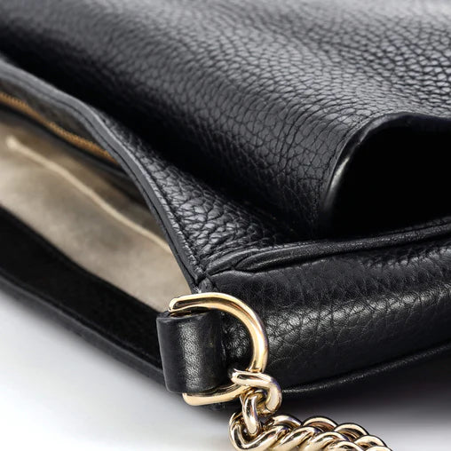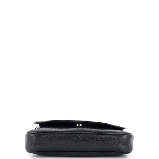 Condition: Very Good. Moderate wear on exterior edges and in interior. Slight creasing underneath flap, scratches, and discoloration on hardware.