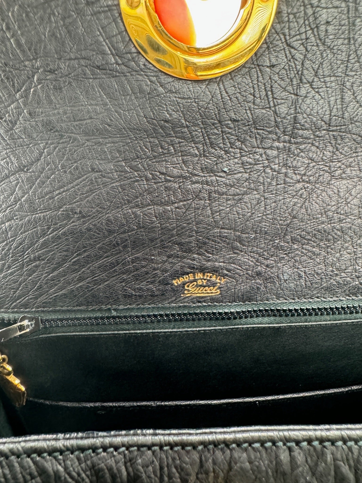 GUCCI - Vintage Osctrich Tiger Head Shoulder Bag