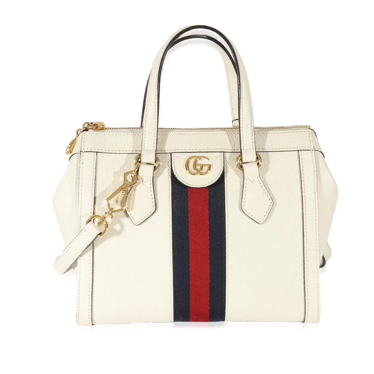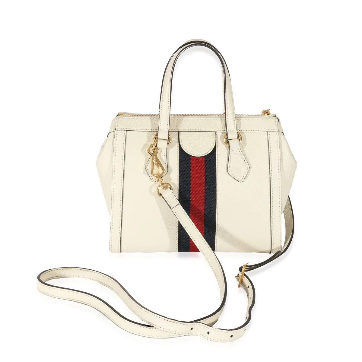 GUCCI - White Leather Small Ophidia Web Top Handle Tote
