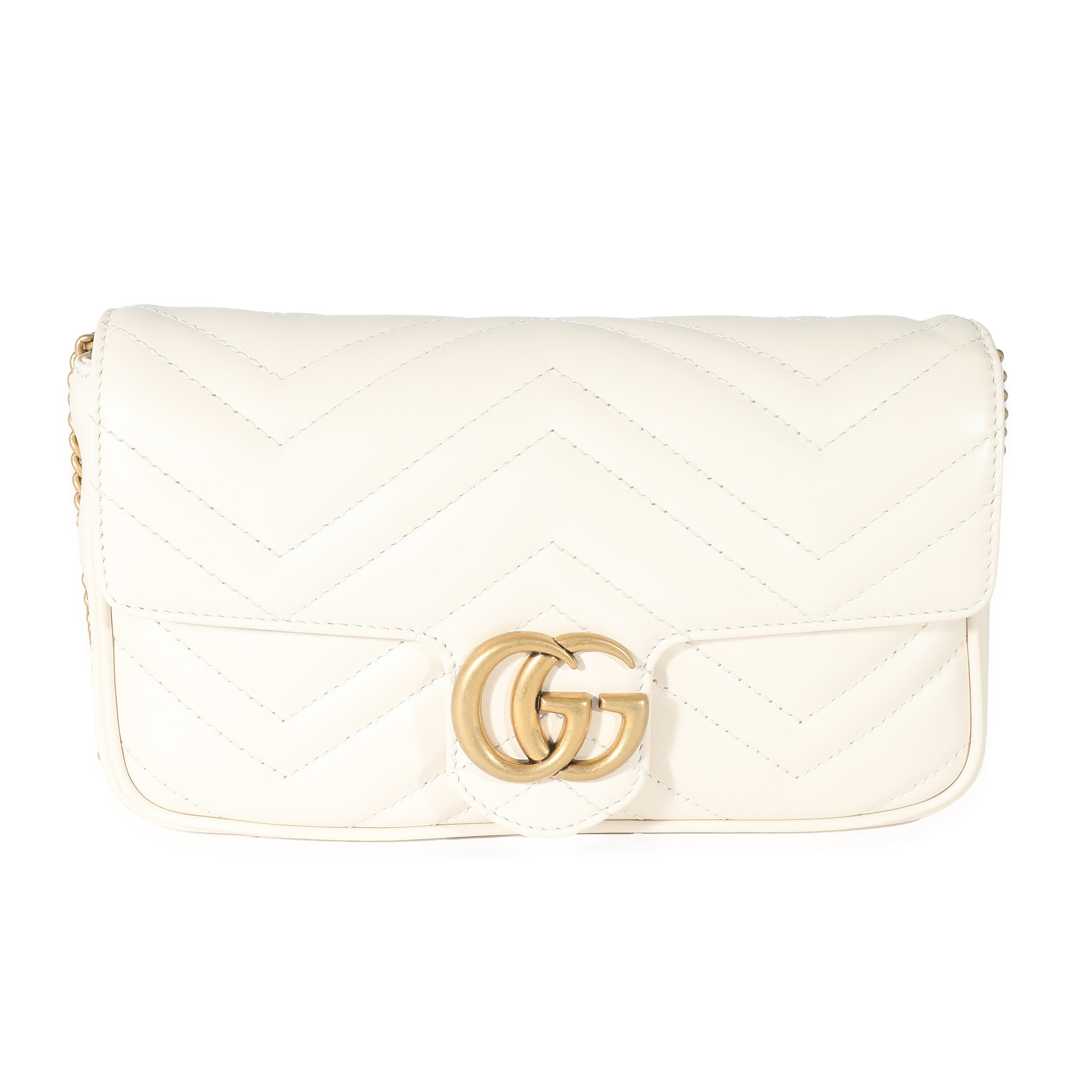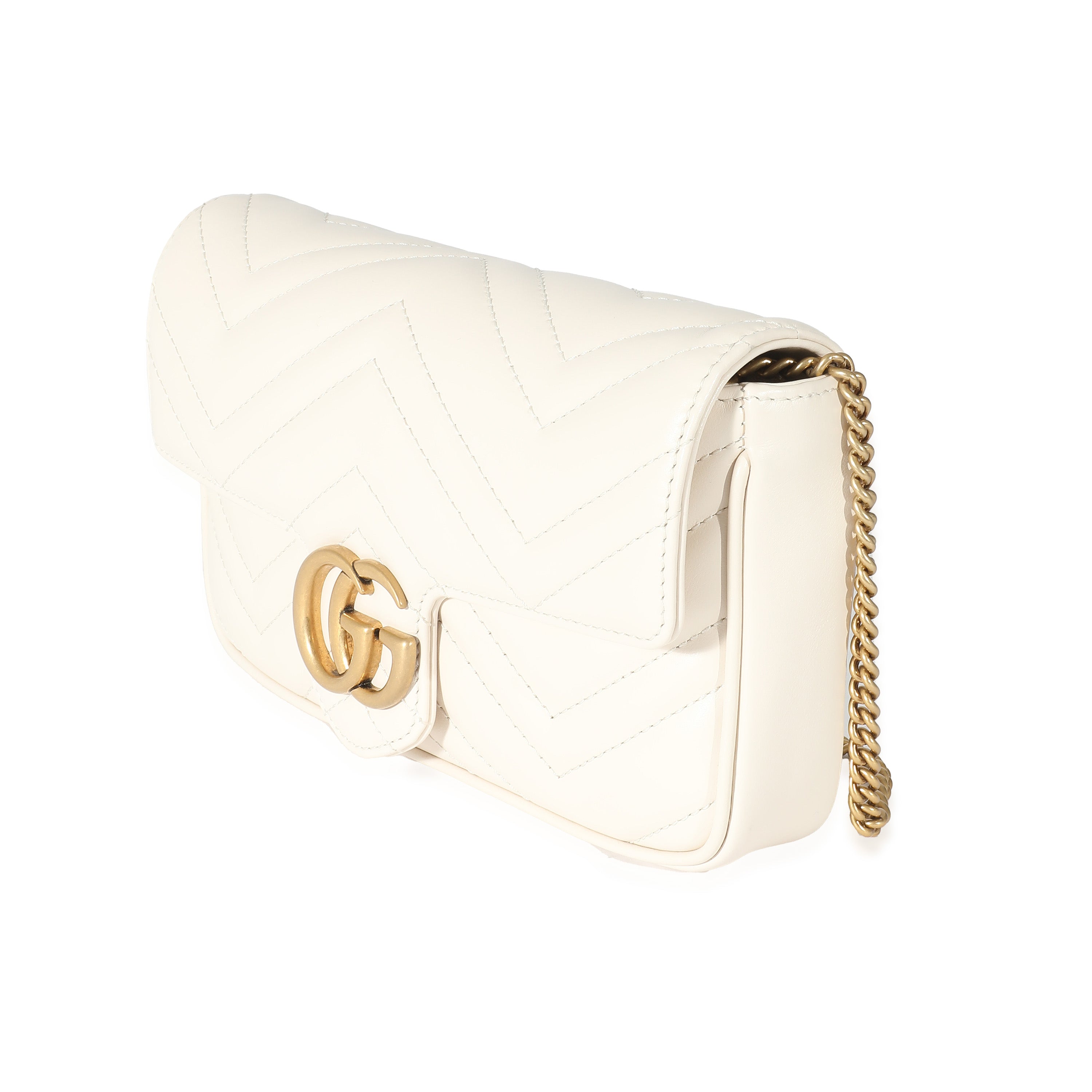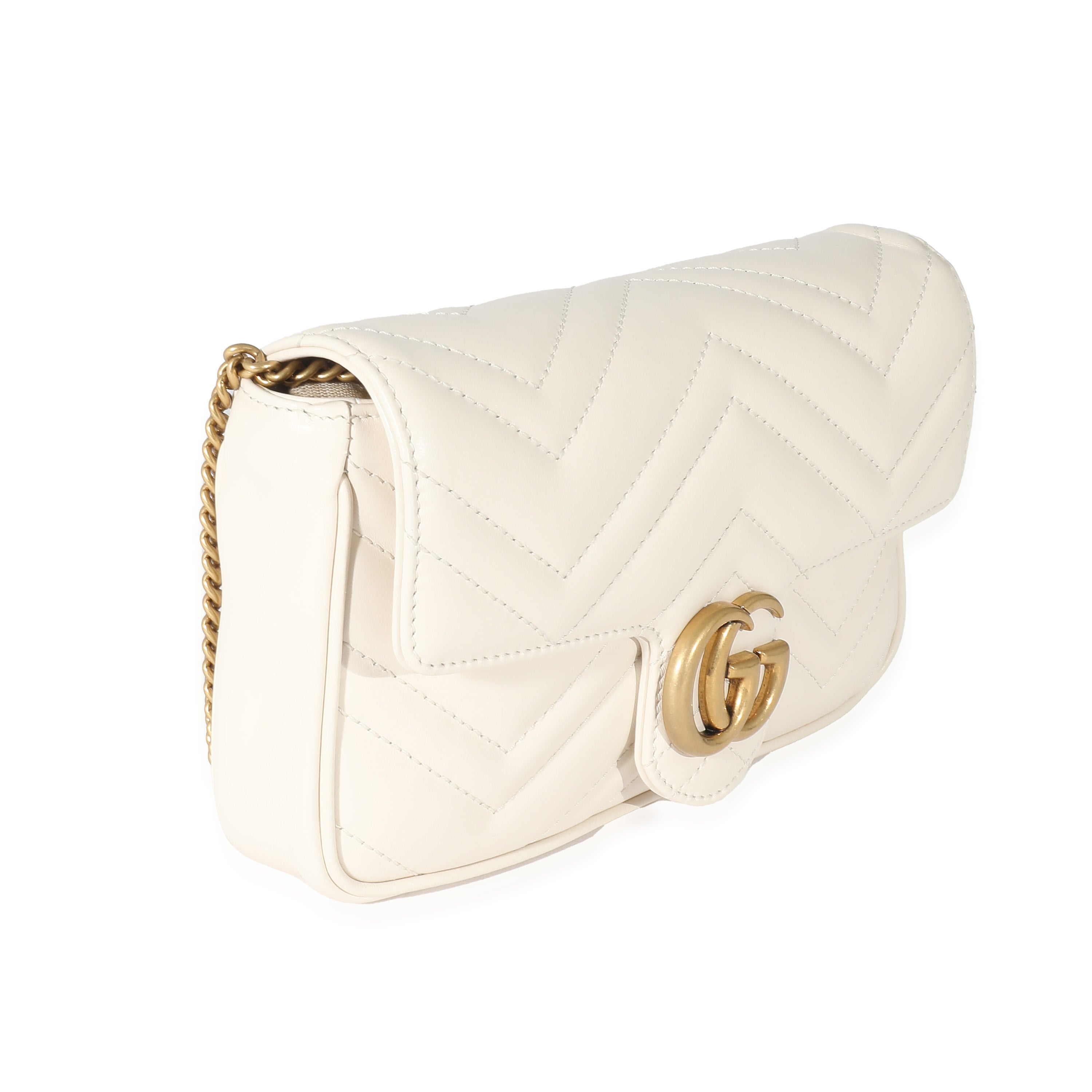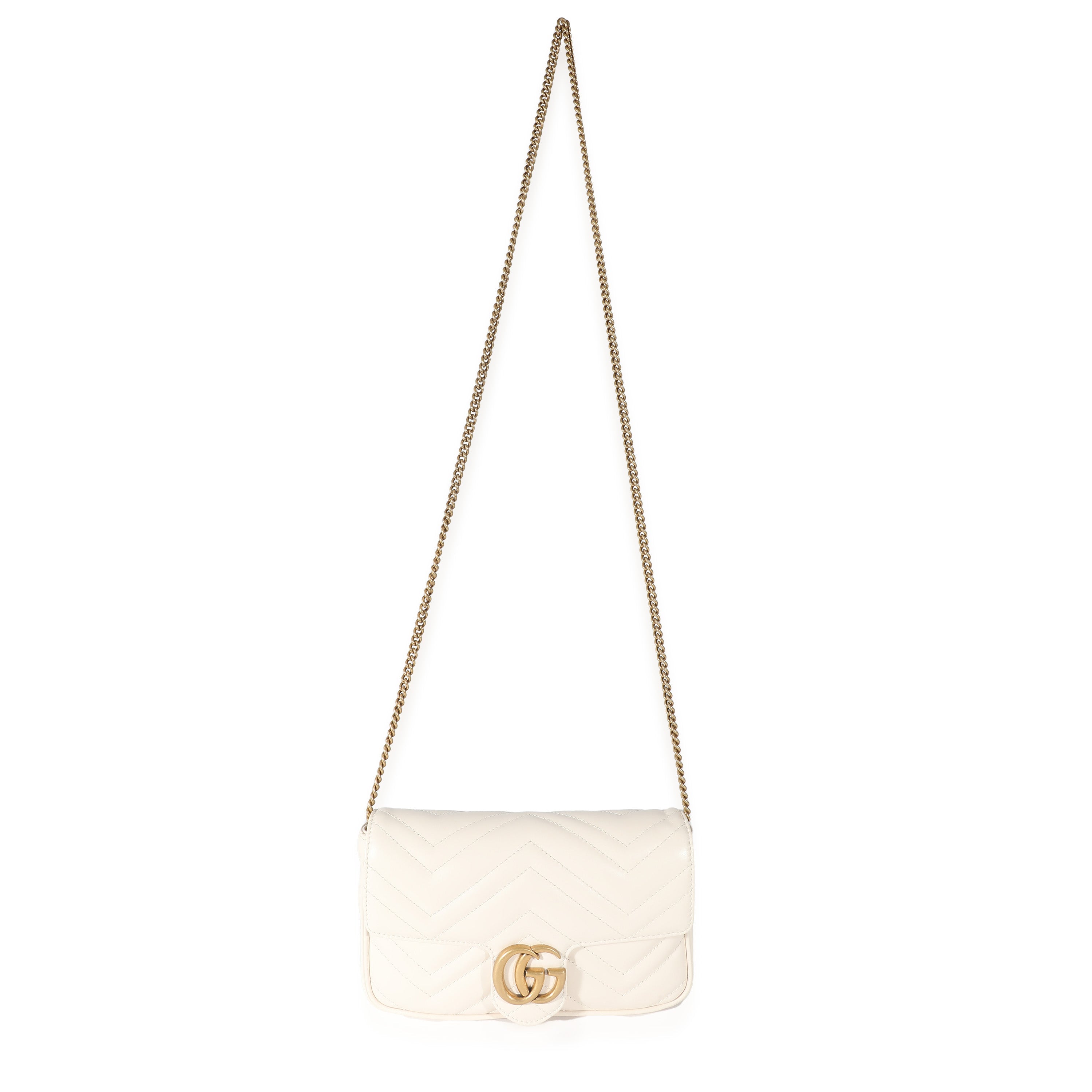 GUCCI - White Matelassé Chevron Leather GG Marmont Mini Bag w/ Wallet