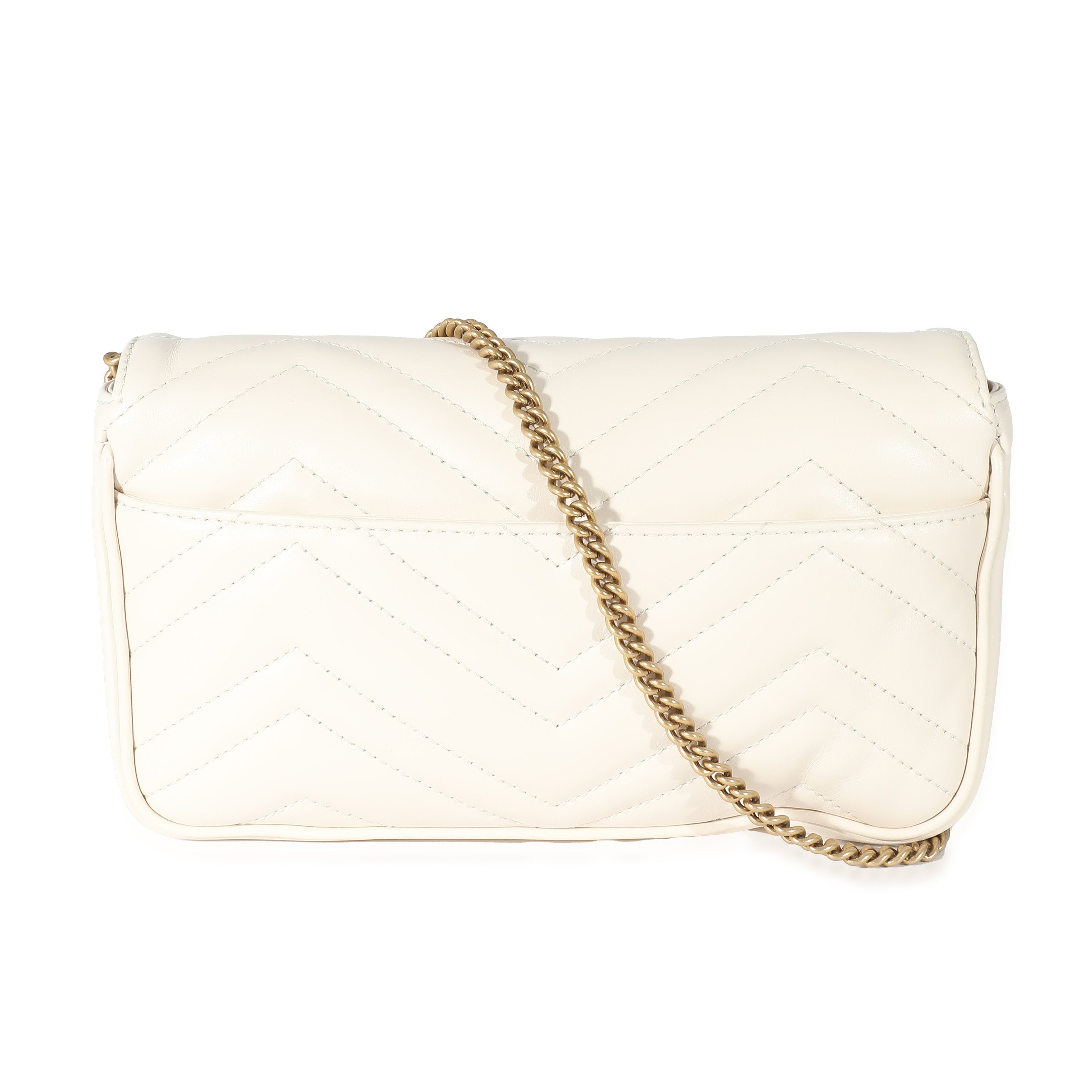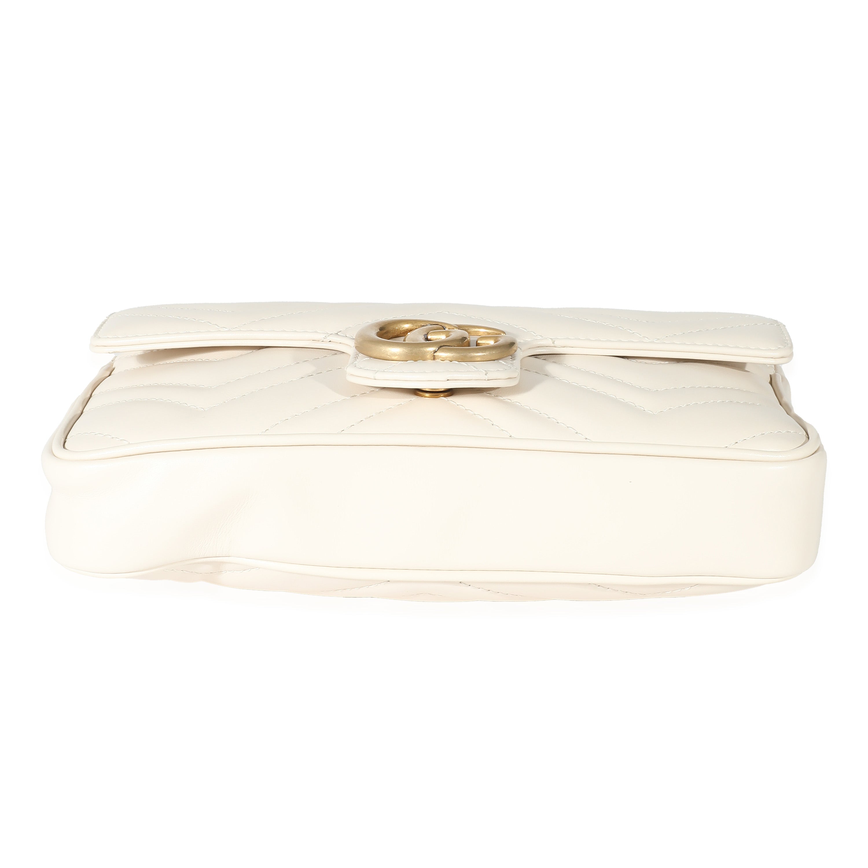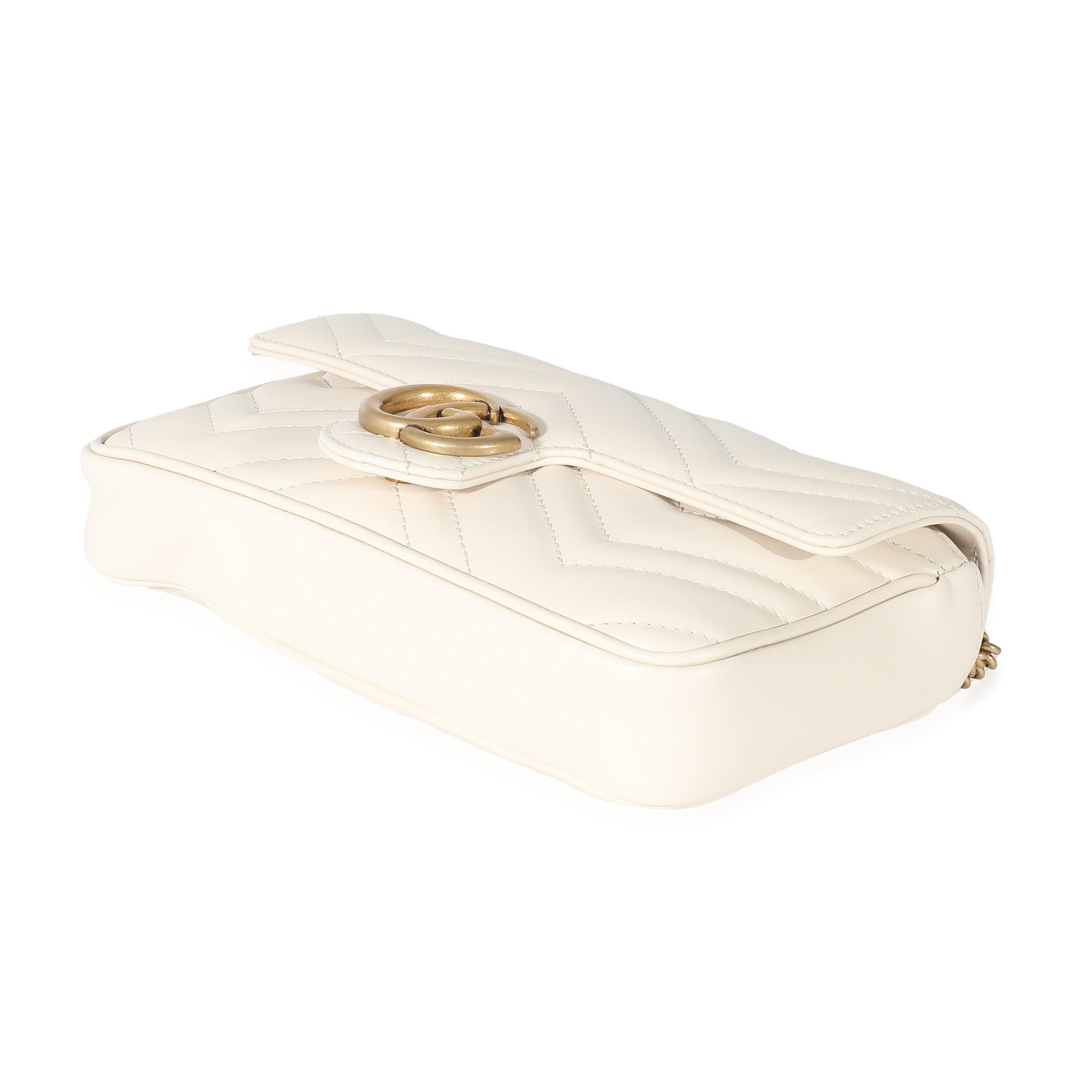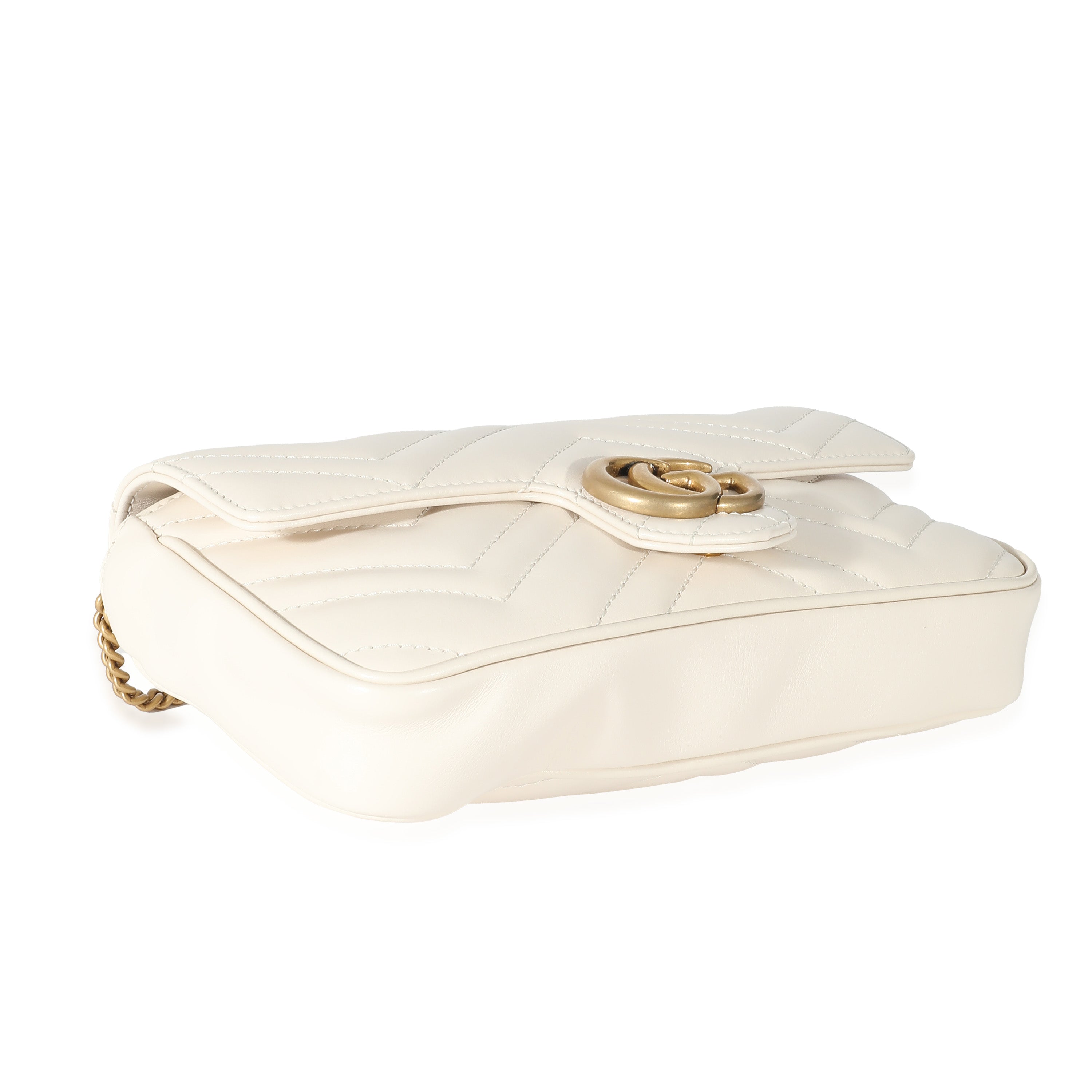GUCCI - White Matelassé Chevron Leather GG Marmont Mini Bag w/ Wallet