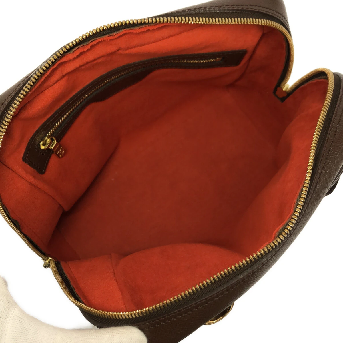 The exterior of the bag may show small scratches, dirt marks, and slight shape loss with metal coating peeling in some areas. The bottom and handles exhibit minor rubbing while the main opening displays slight corner rubbing. An elegant choice for those who appreciate quality craftsmanship and timeless style.