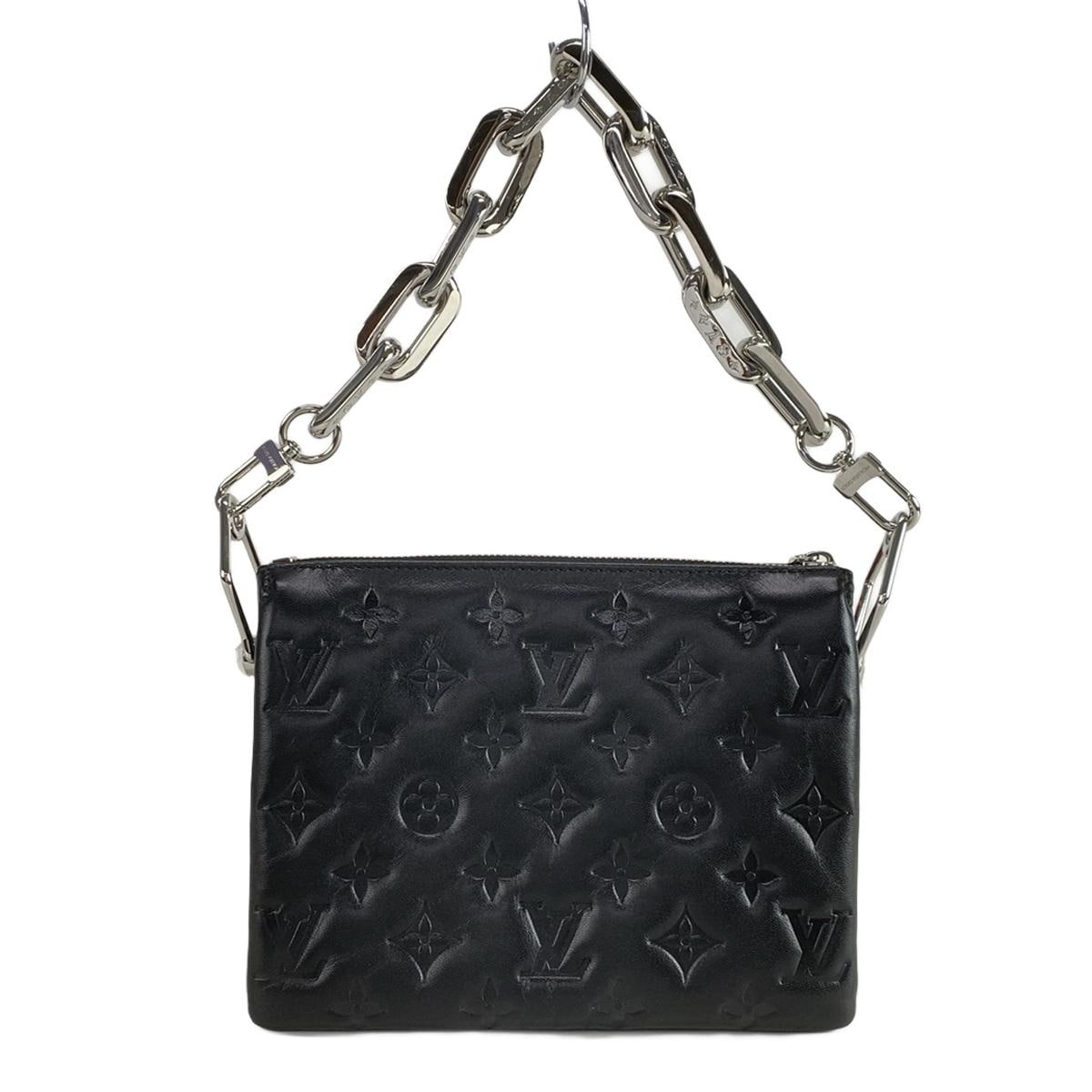 PRE-OWNED LV Coussin BB Black Silver Lamb Leather Shoulder Bag
