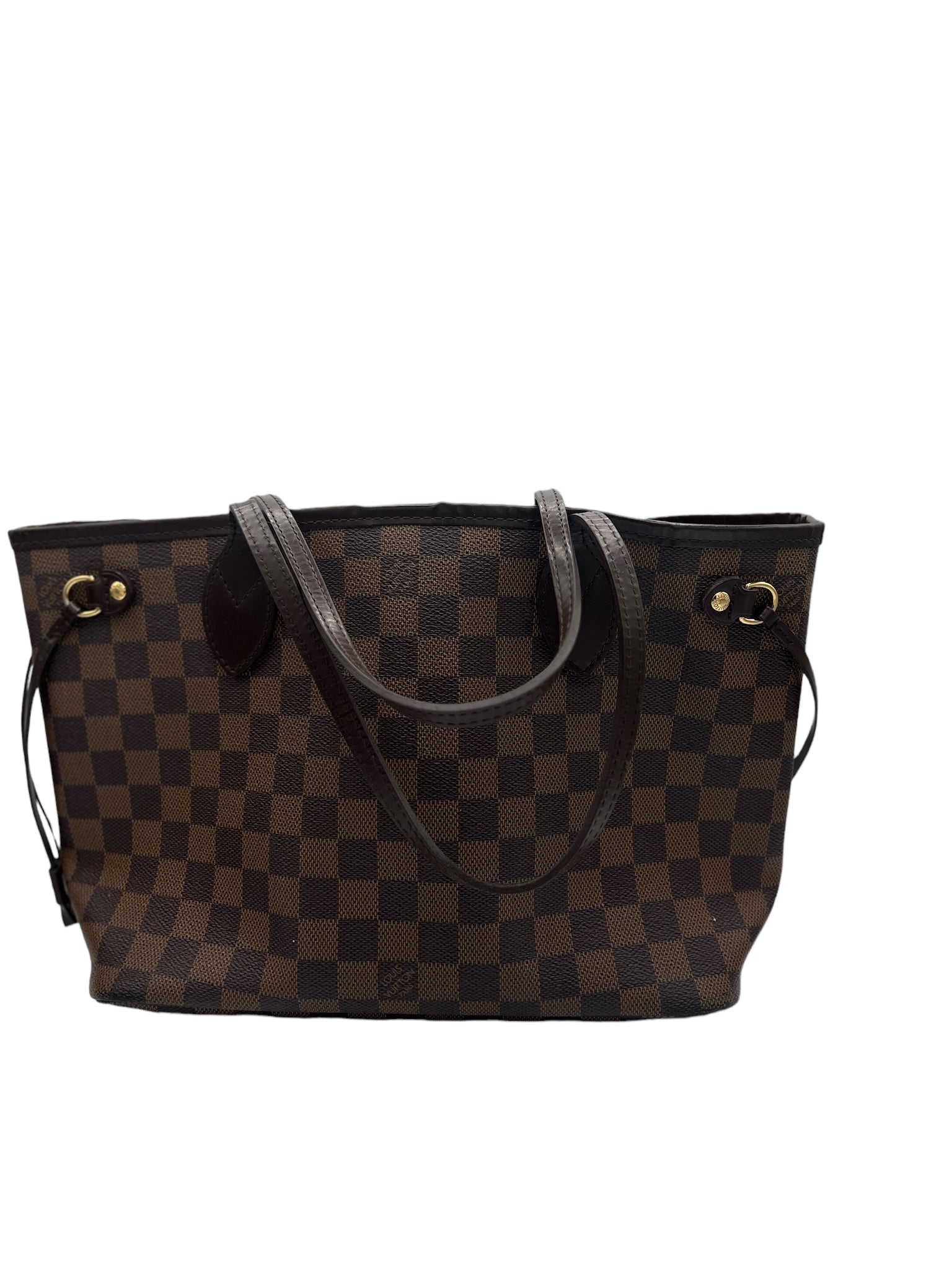 Upgrade your style with the luxurious LOUIS VUITTON Damier Ebene Canvas PM. Combining elegance and functionality, this bag features golden toned hardware for a touch of sophistication. Elevate any outfit and make a statement with this timeless piece. Shop now!