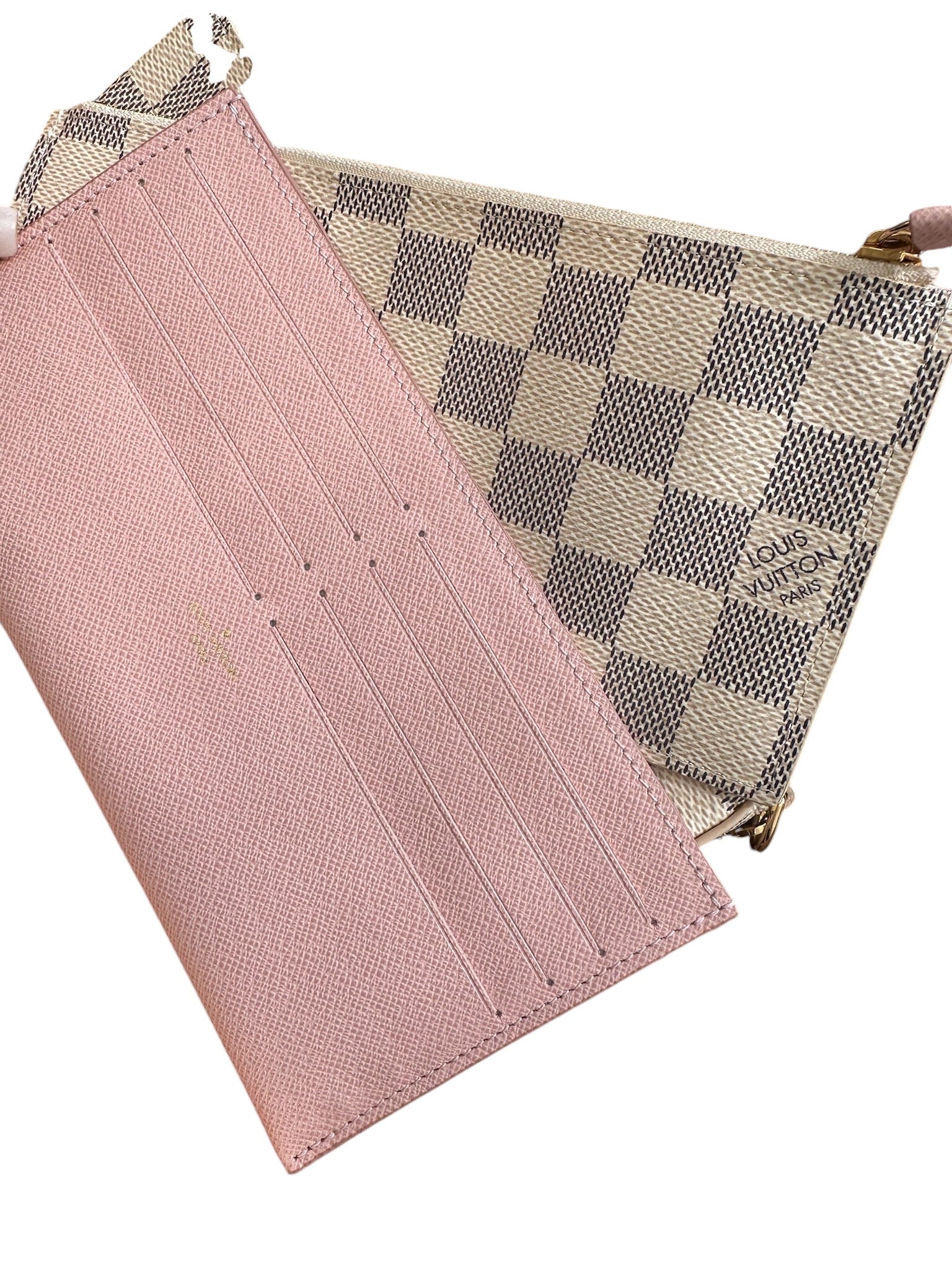 This Felicie Pochette Damier Azur clutch from Louis Vuitton is in excellent condition and comes with a dust bag and box. Carry all your essentials in style with this beautifully crafted accessory. Perfect for any occasion and sure to turn heads!