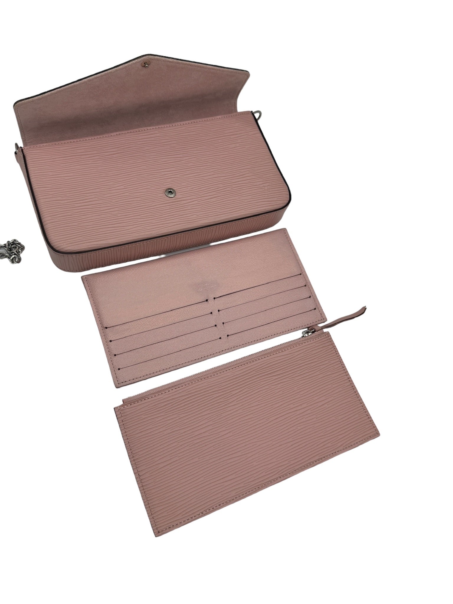 - Condition Description: Condition Type: Good Height (in inches): 4.7 Width (in inches):8 .3 Depth (in inches):1 .2 So if you're looking for a versatile purse that holds up well over time while making you look good every time you wear it out in public or on the town – look no further than the LOUIS VUITTON - Felicie Pochette Epi Pink Leather Crossbody Bag!