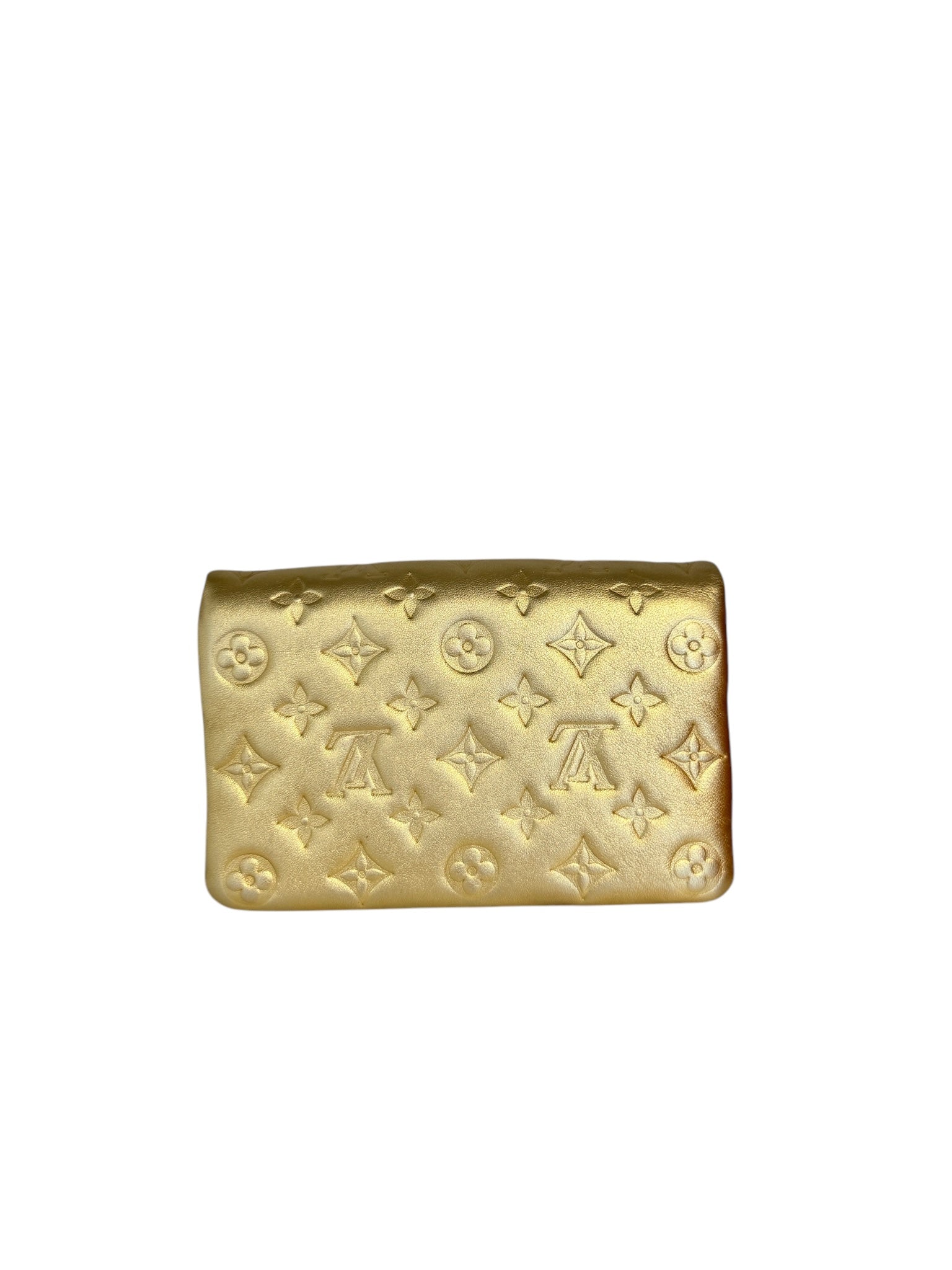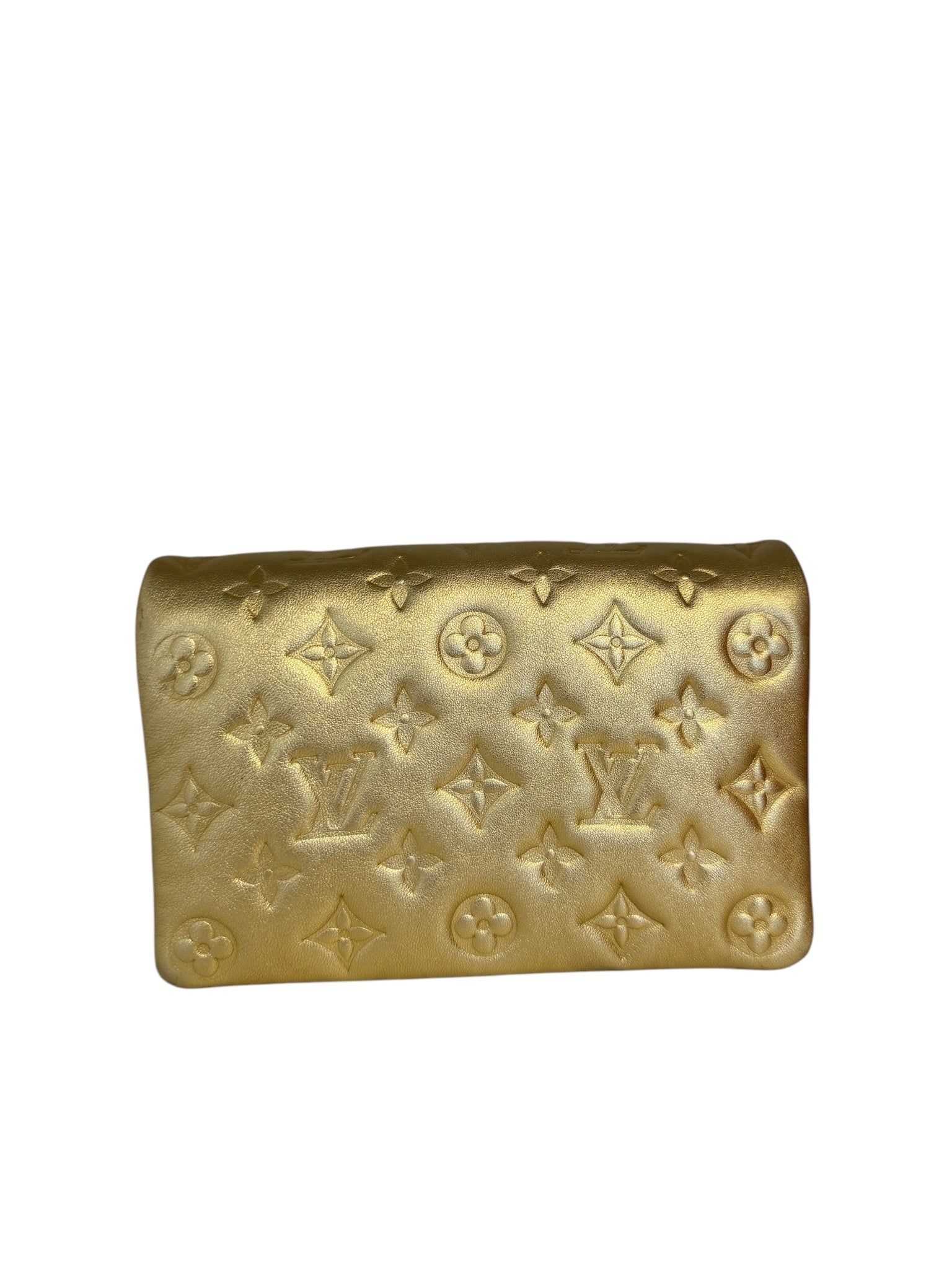 LOUIS VUITTON - Gold Monogram Embossed Lambskin Pochette Coussin