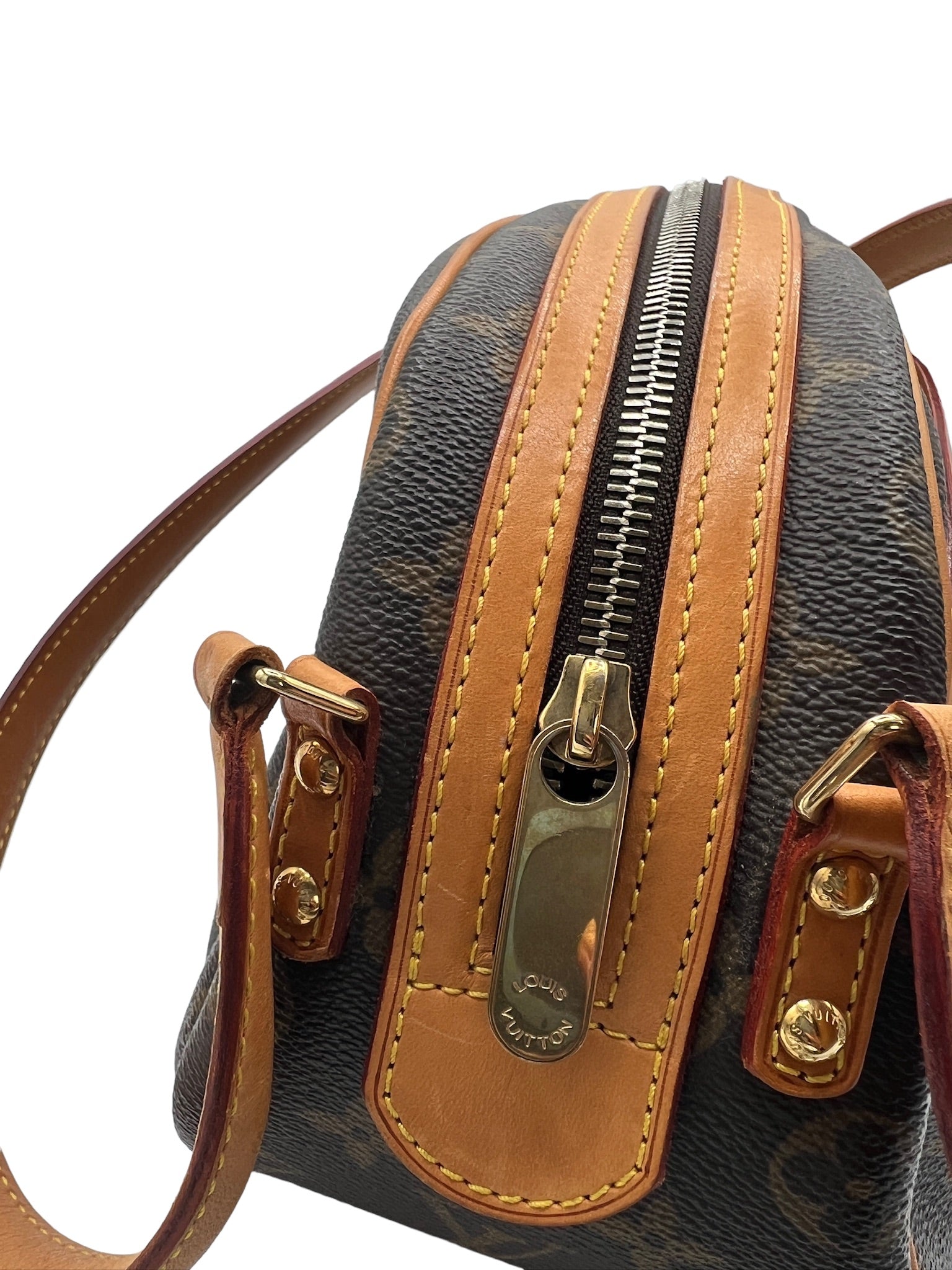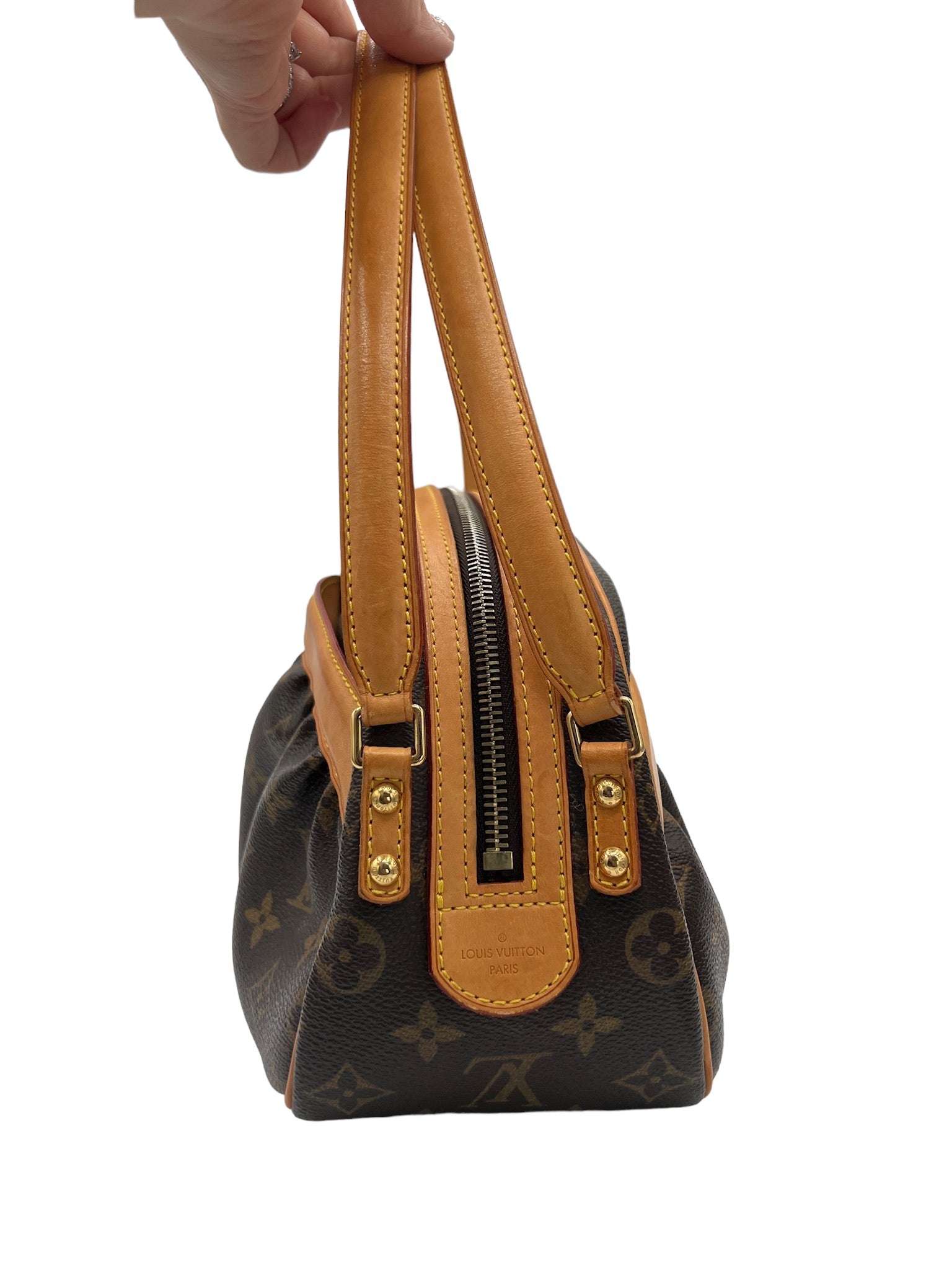 This pre-owned LOUIS VUITTON Klara Monogram Handbag is the perfect addition to any outfit. The classic brown monogram canvas design exudes luxury and style, while the top handle silhouette adds a touch of sophistication.