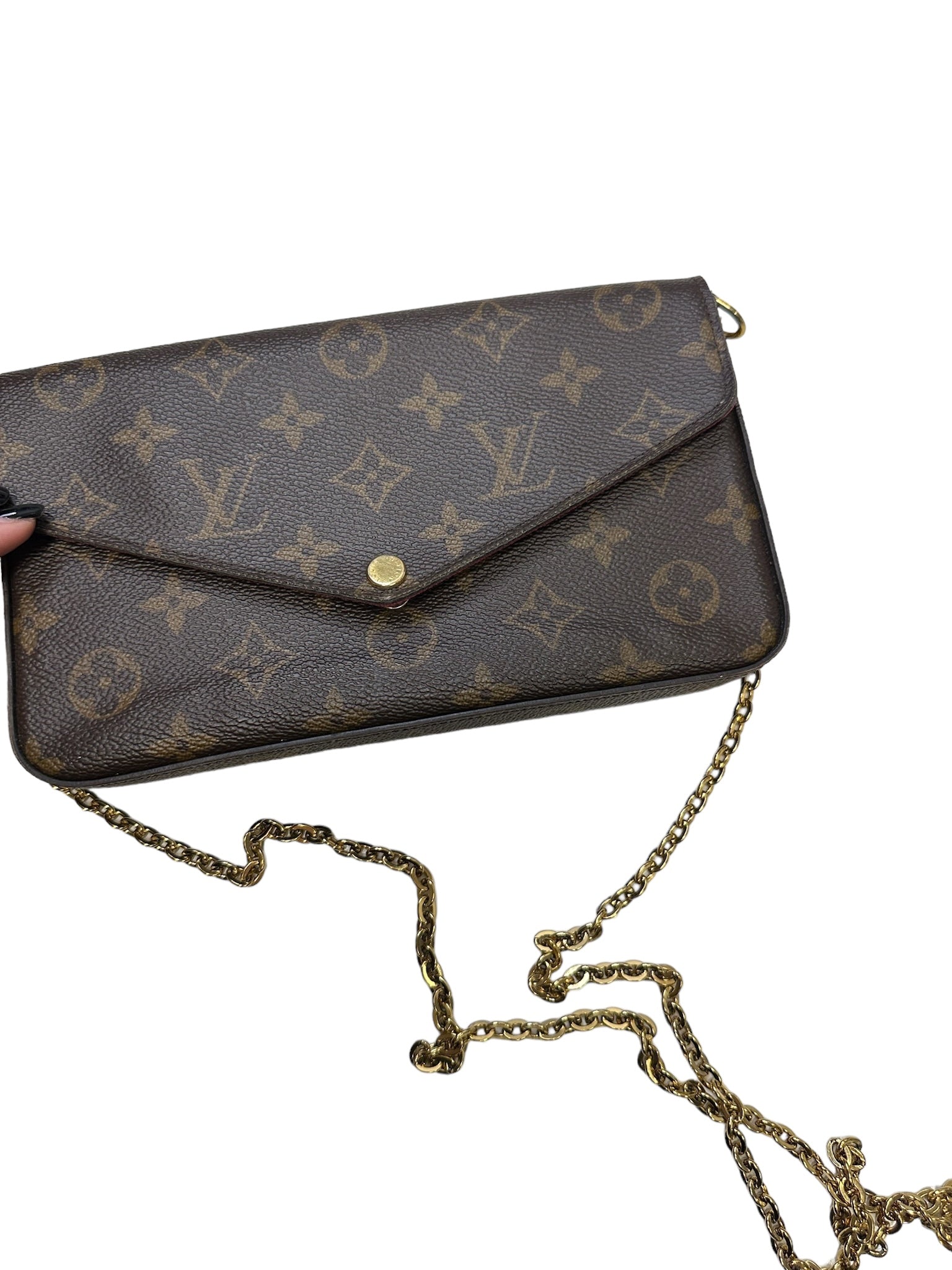 Indulge in luxury with the LOUIS VUITTON Monogram Canvas Fuchsia Felicie Pochette. Adorned with stunning golden toned hardware, this pochette adds a touch of elegance to any outfit. Embrace the finer things in life and elevate your style with this exquisite piece.