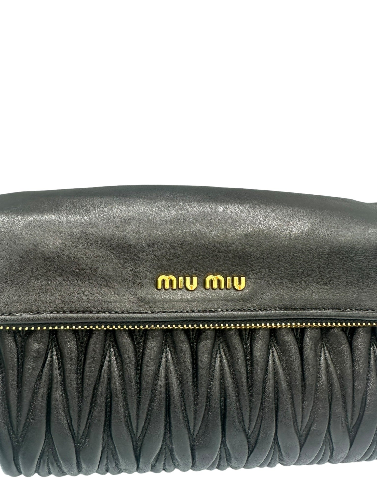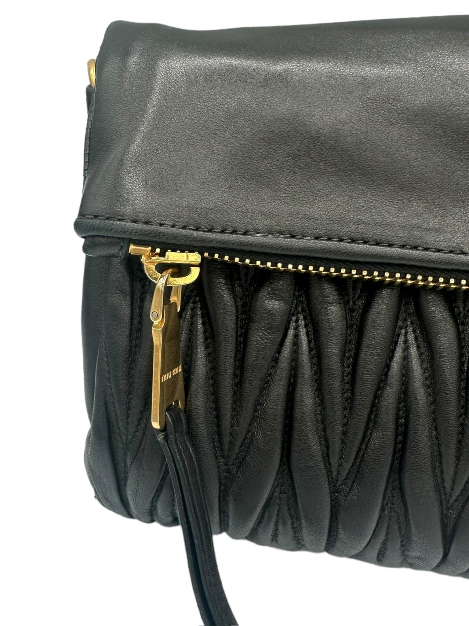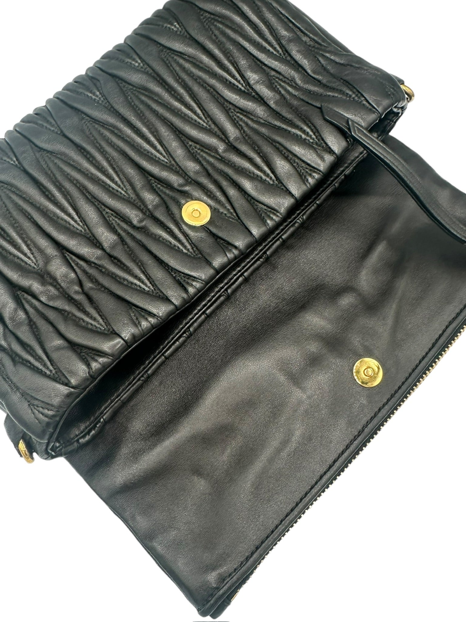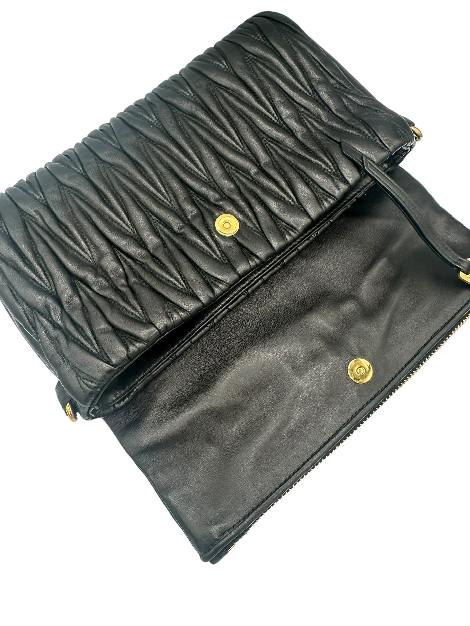 MIU MIU - Black Matelasse Leather Fold Over Clutch
