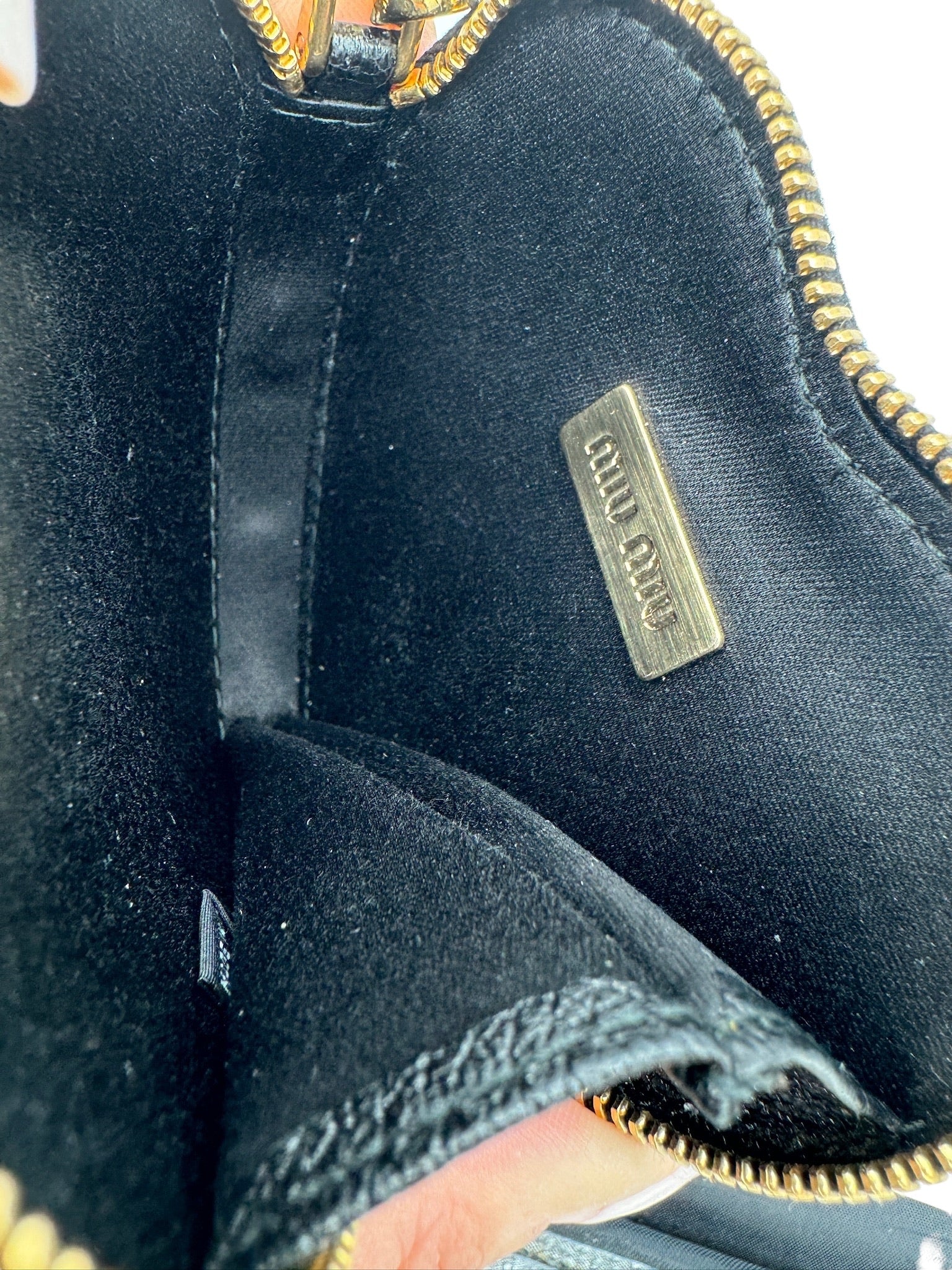 Get organized with style with the MIU MIU Coin Case Black Leather Charm! Measuring at 3.54 inches in height, 3.94 inches in width, and 0.79 inches in depth, this chic coin case is the perfect accessory for your daily essentials. Crafted from high-quality leather, it's both stylish and functional.