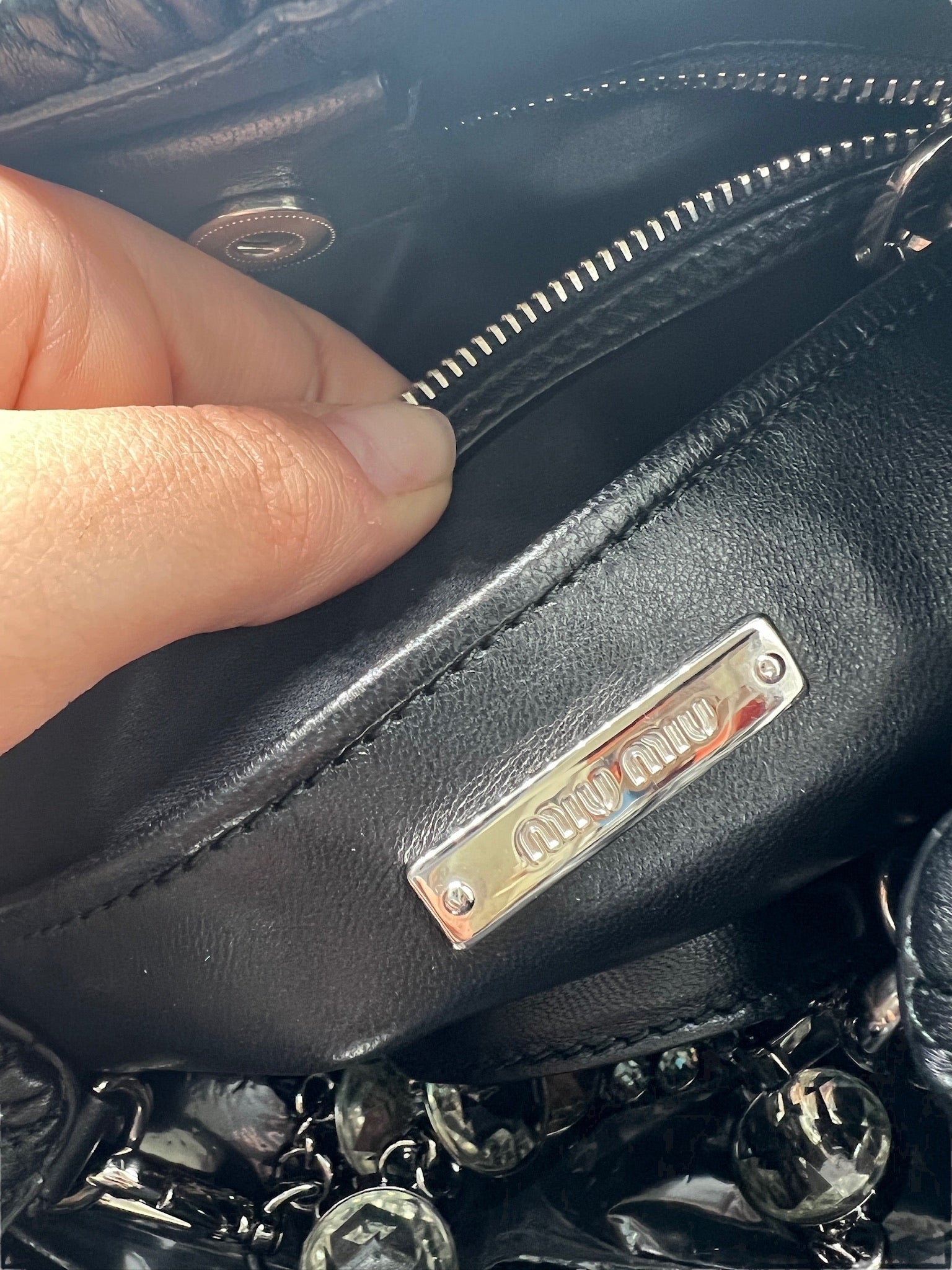MIU MIU - Nappa Crystal Black Quilted Leather Handbag