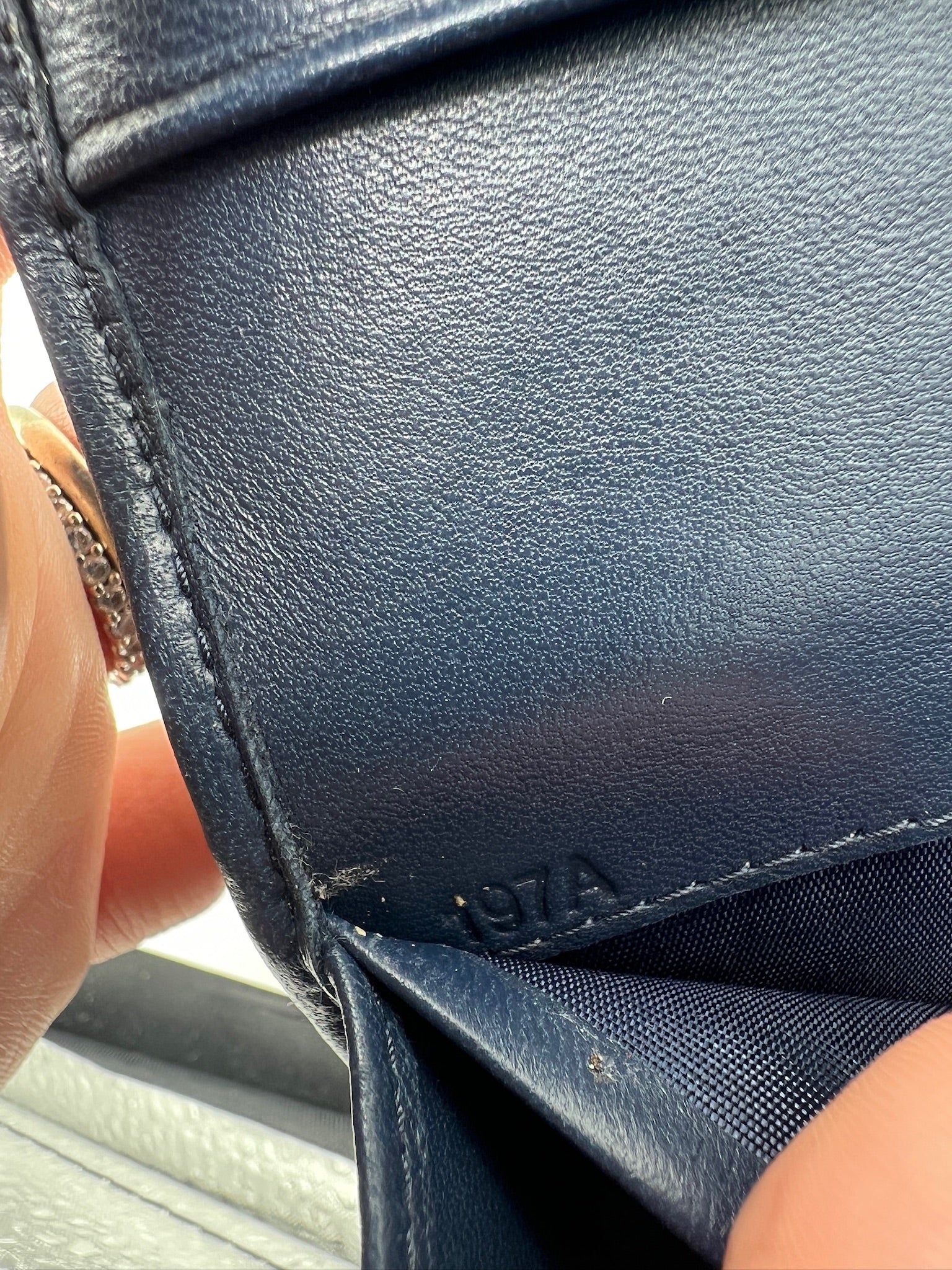 The MIUMIU Matelasse Oltomare (Dark Navy) Leather Long Wallet comes with its original box and guarantee to ensure its authenticity and quality. The condition description and type both indicate that it's in good condition as evaluated by the authenticator/agency entrupy.