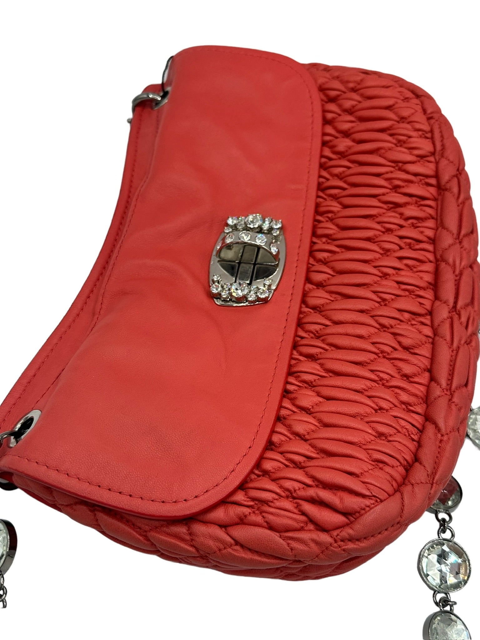 This Pre-Owned MIUMIU shoulder bag will make you stand out from the crowd with its vibrant color and unique design features.