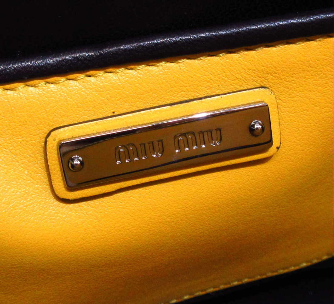 The Miu Miu shoulder bag features a classic design that exudes sophistication and elegance, making it the perfect accessory for any occasion. The vibrant yellow color adds a pop of color to any outfit while the spacious interior provides enough room for your essentials while on-the-go.