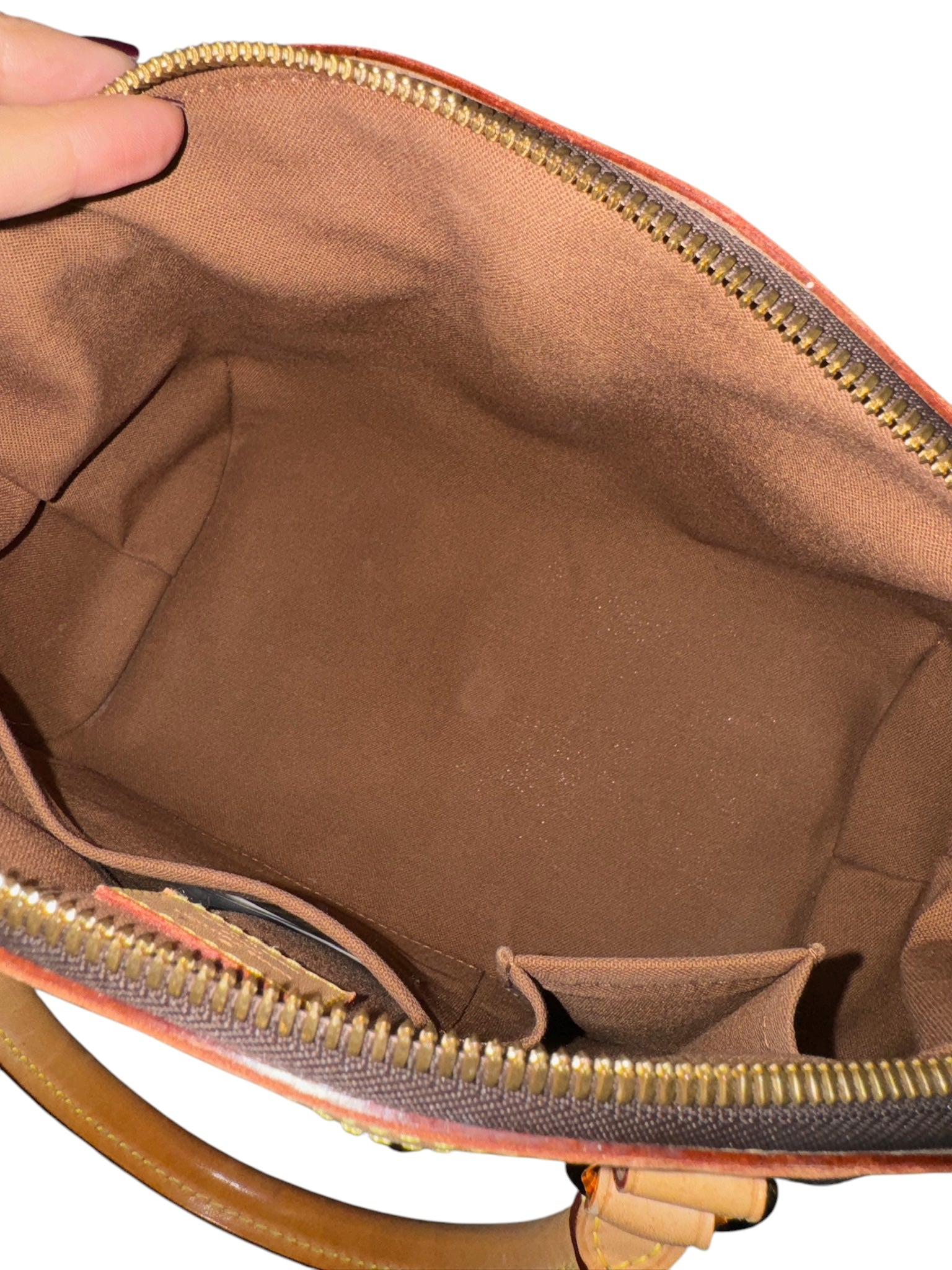 This pre-owned LV Monogram Canvas Tivoli PM was made in 2009 and is in very good condition. It comes with a dustbag and has a handle drop of 5.00 inches. The exterior color is a rich brown, and it was made in the US. The dimensions are 11.25 x 8.5 x 6 inches, and the exterior material is durable canvas.