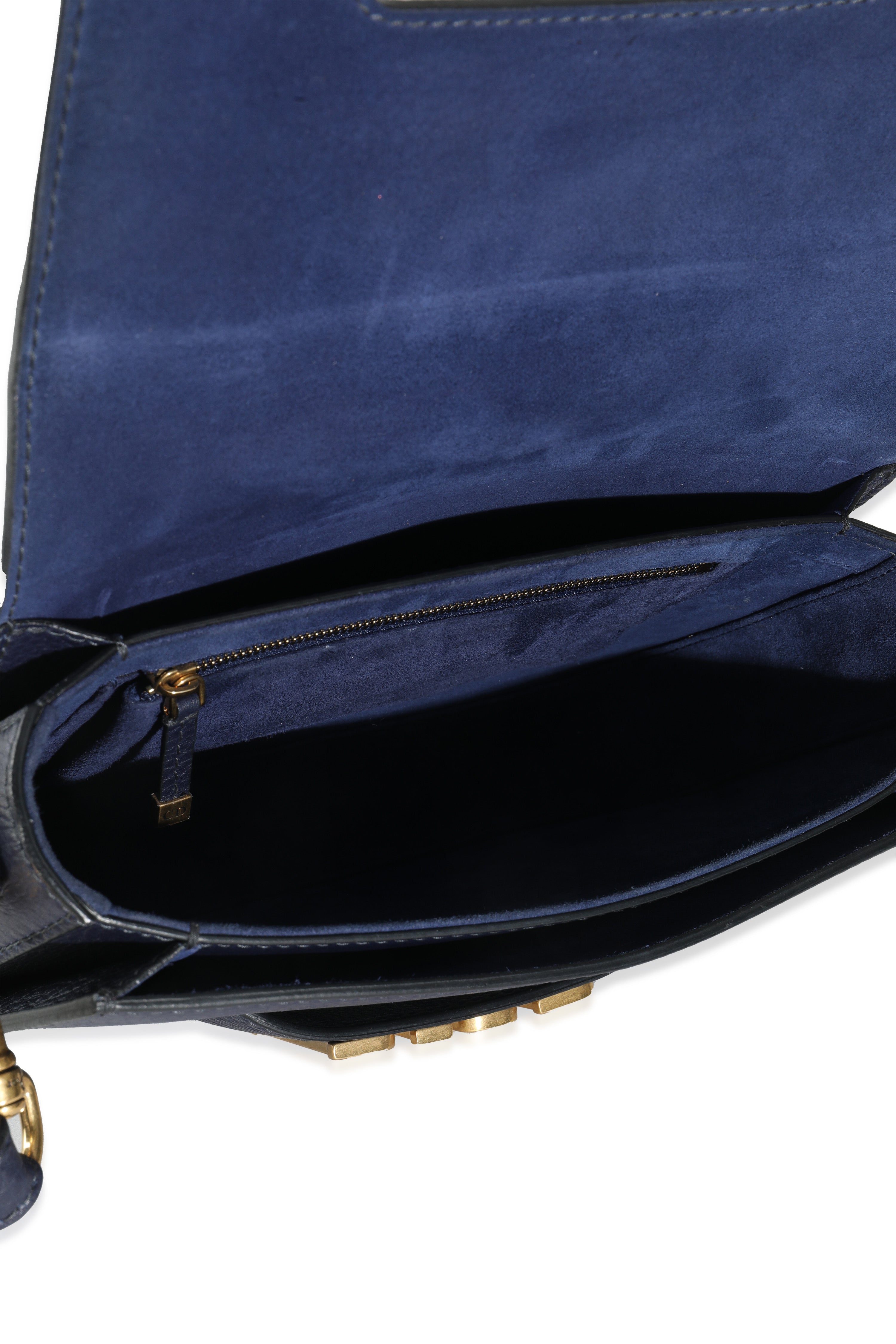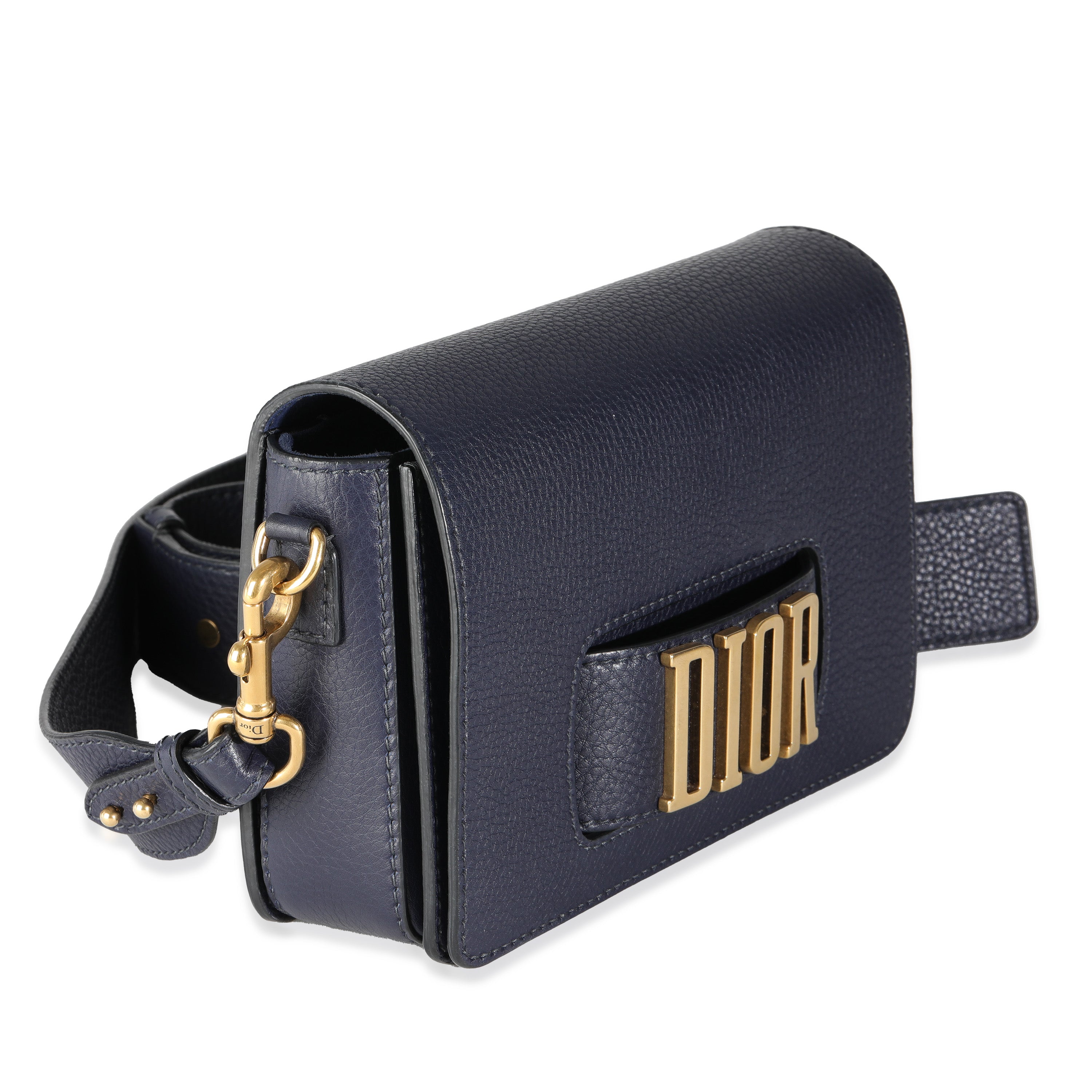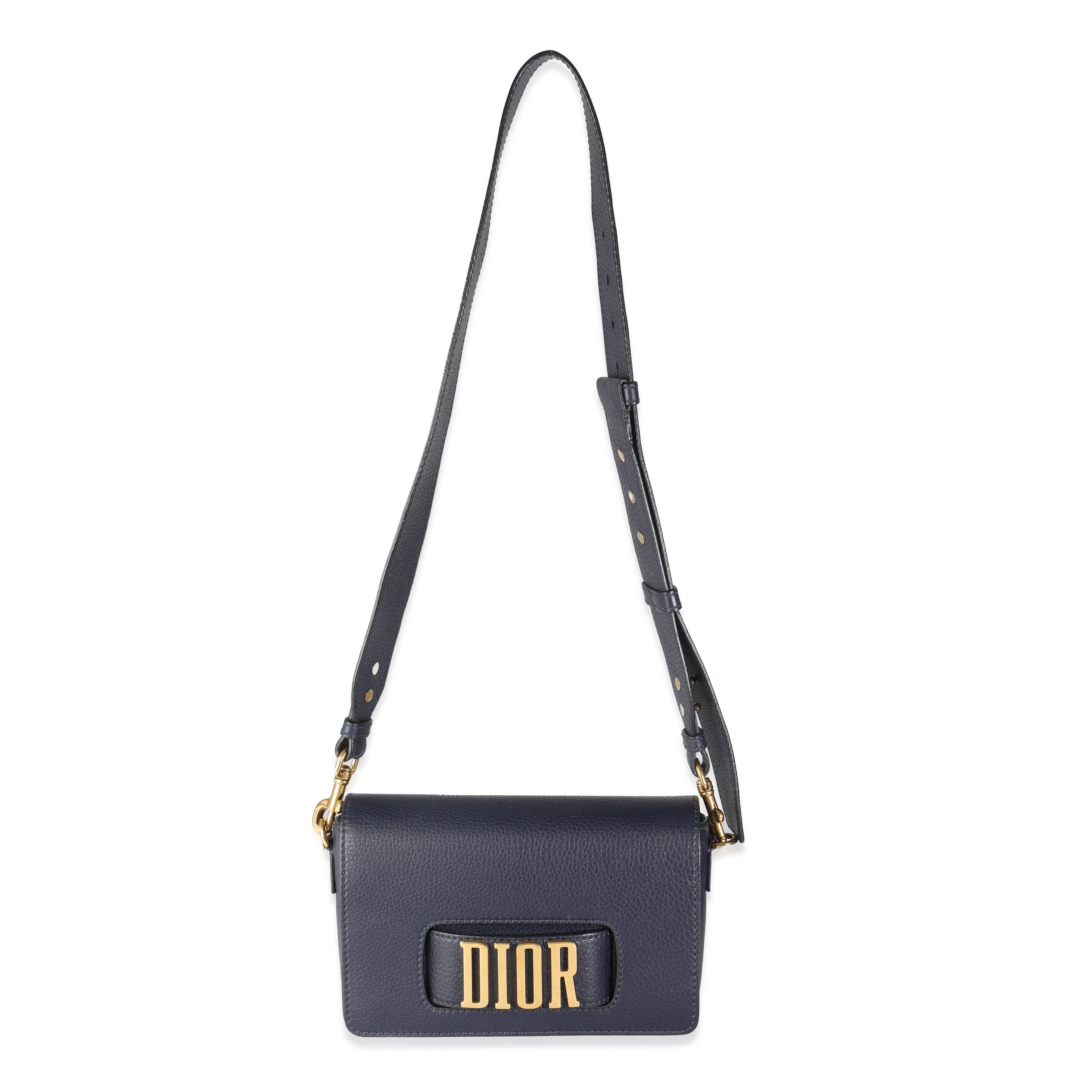 PRE-OWNED Navy Blue Grained Calfskin Medium Dio(r)evolution Flap Bag