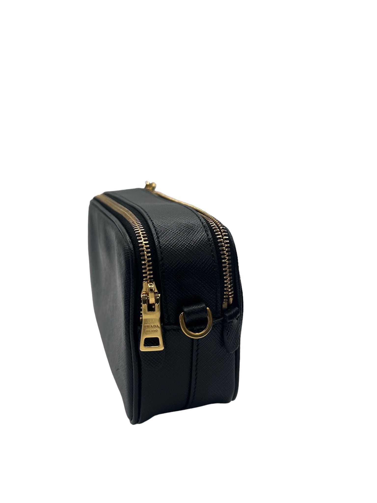 This Pre-Owned PRADA Black Saffiano Leather Shoulder Bag is the perfect addition to your collection for an elegant and chic look.