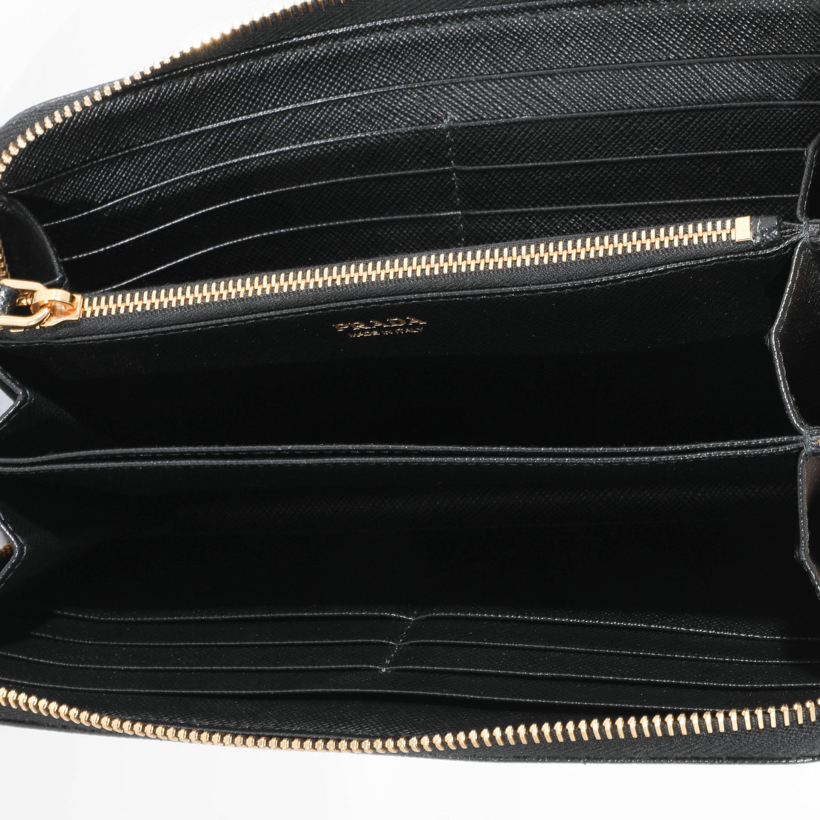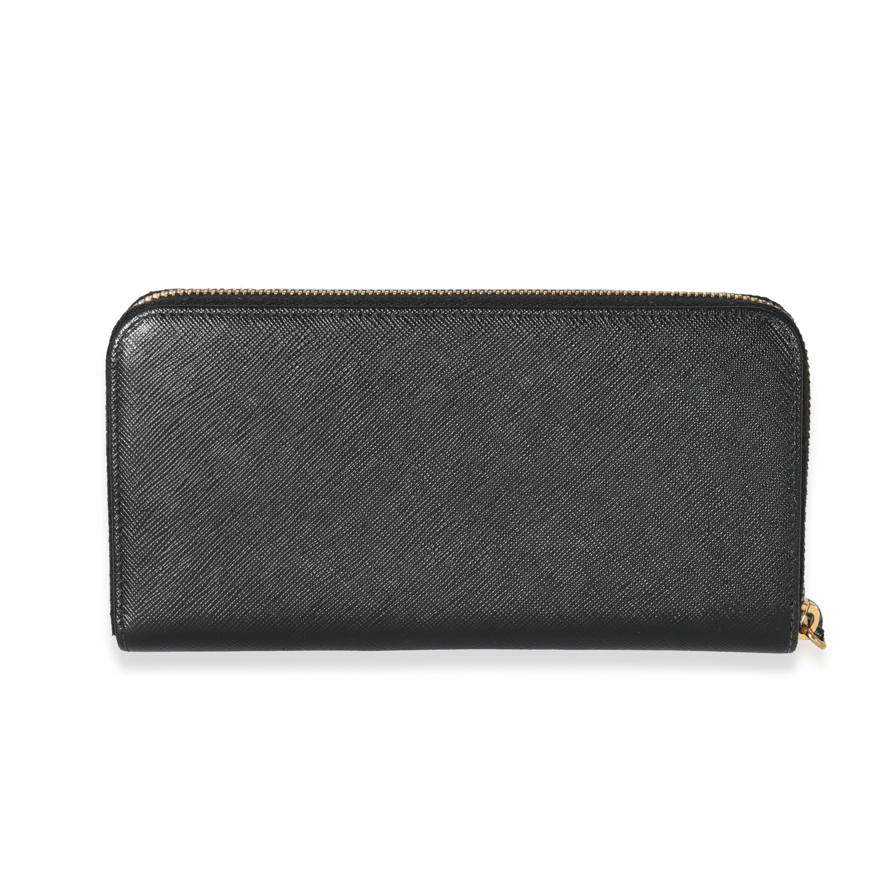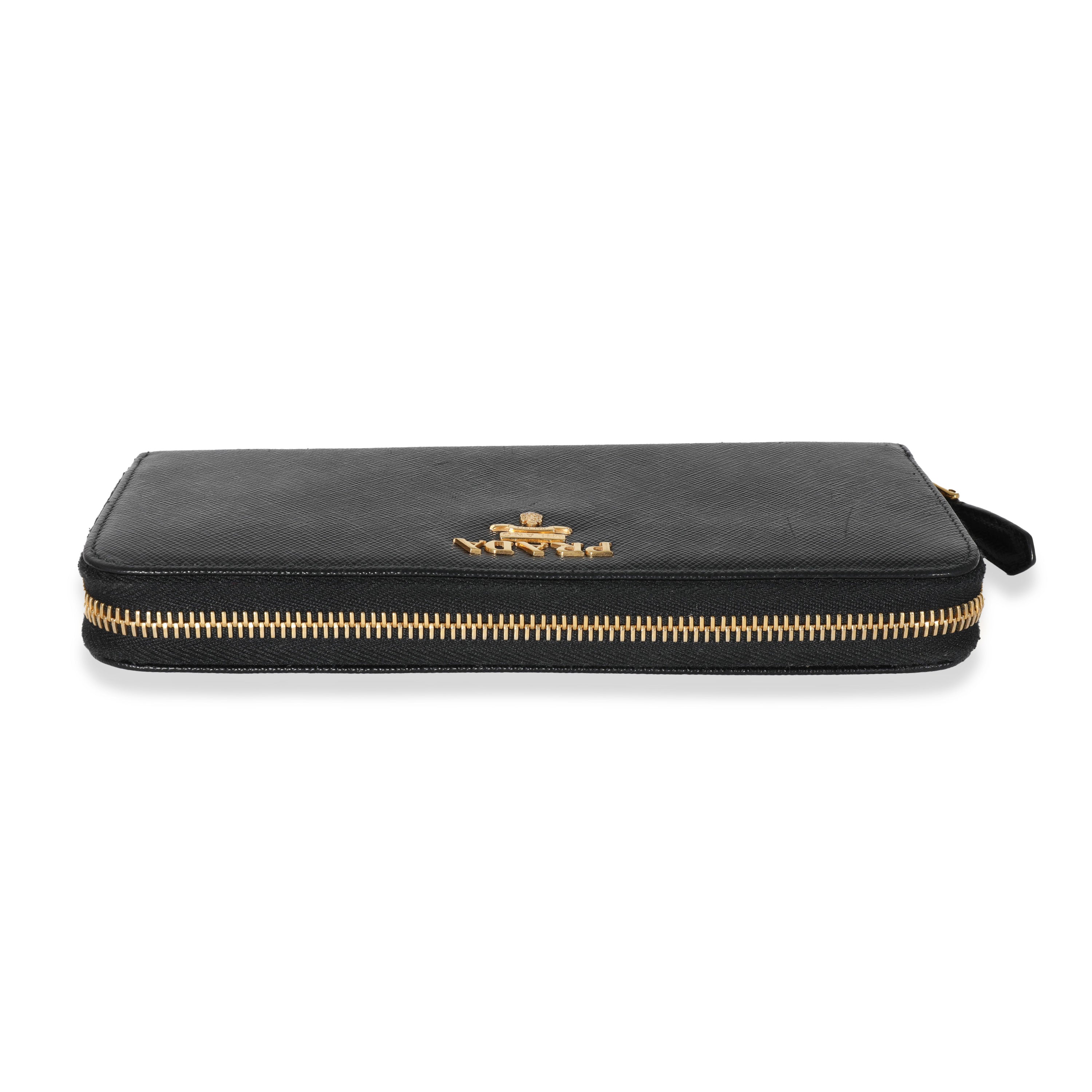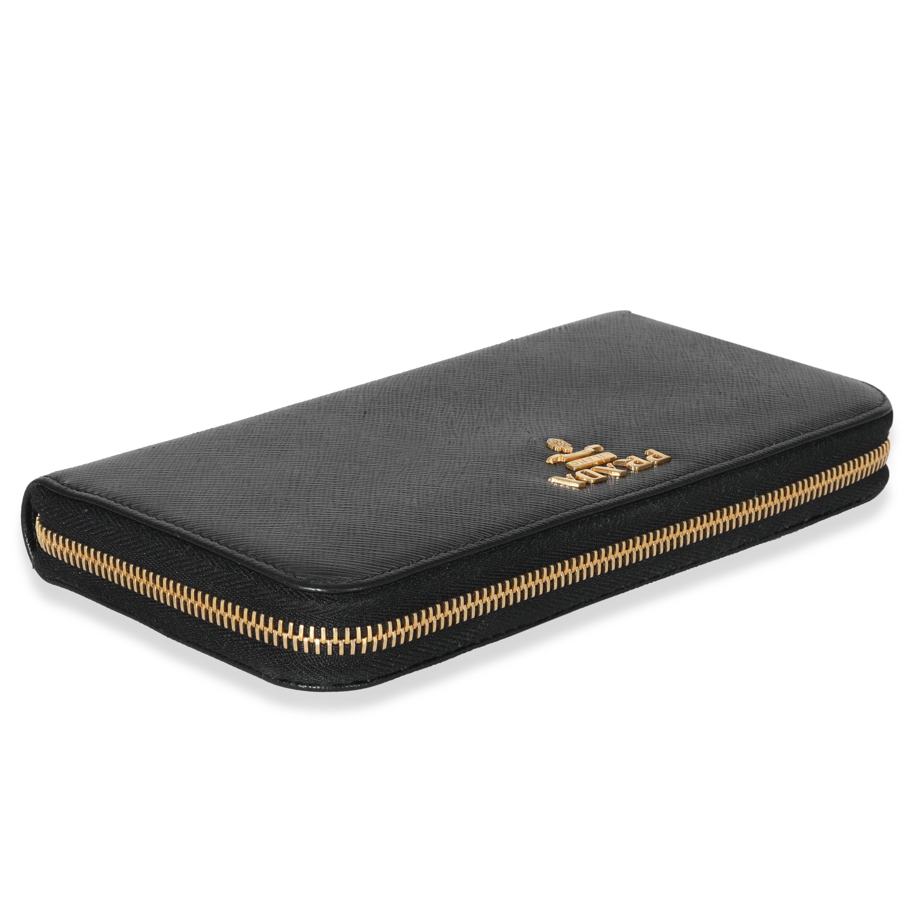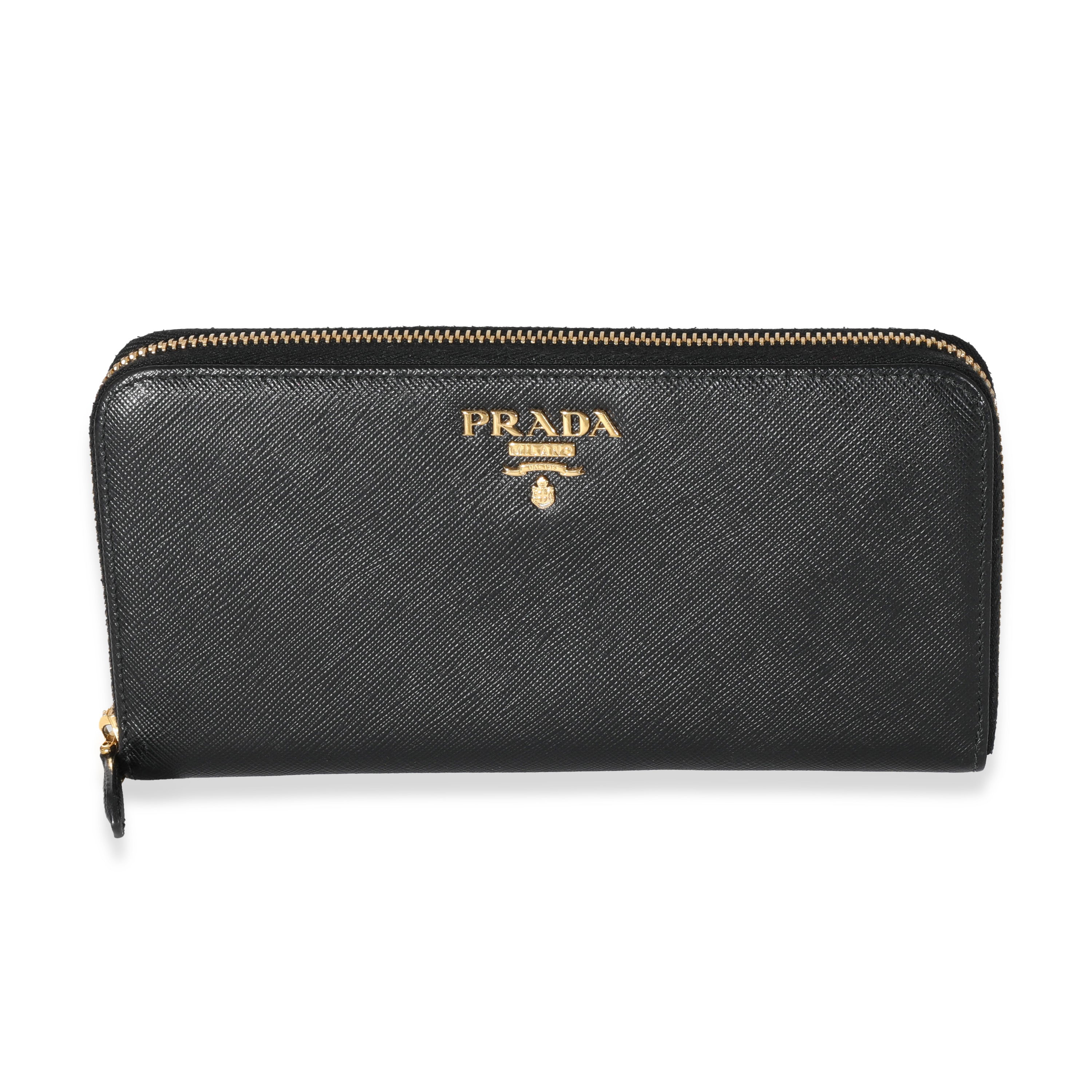 The product is made in Italy from high-quality black saffiano leather. It measures 8 x 4 x 1 and is considered to be in very good condition. Included with the product is the original box and authenticity card.