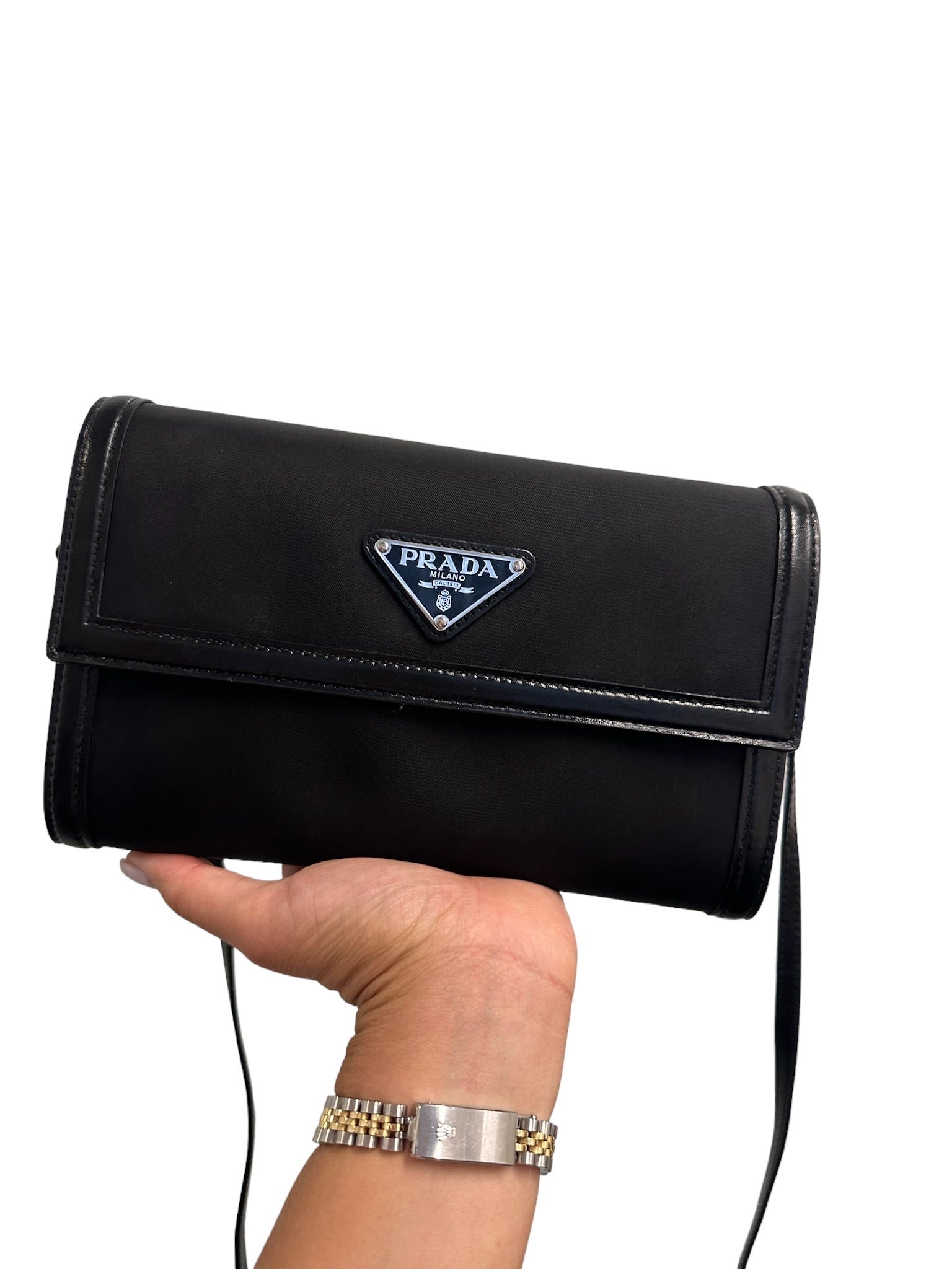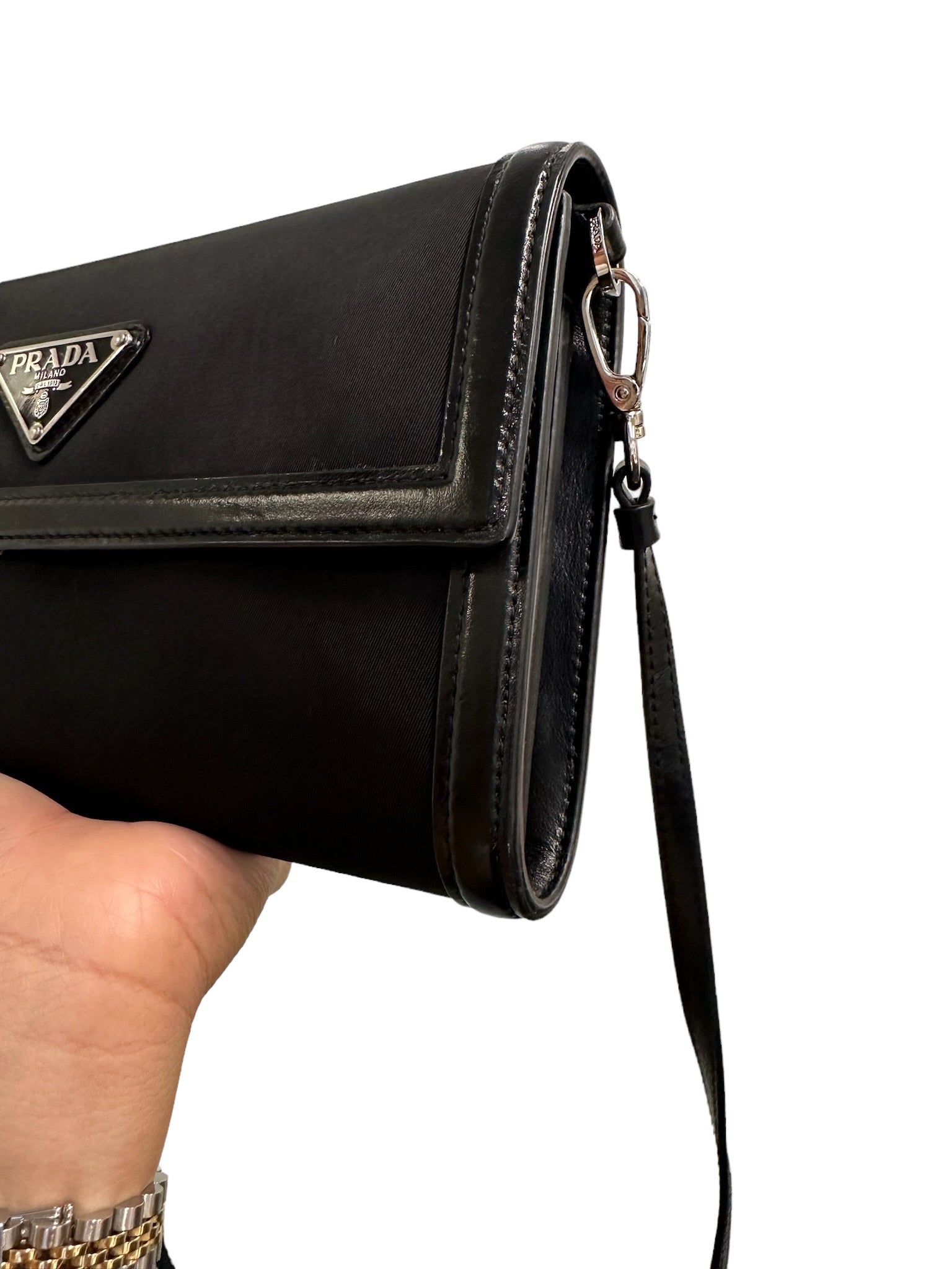 PRADA - Black Tessuto Nylon Vitello Wallet on Strap
