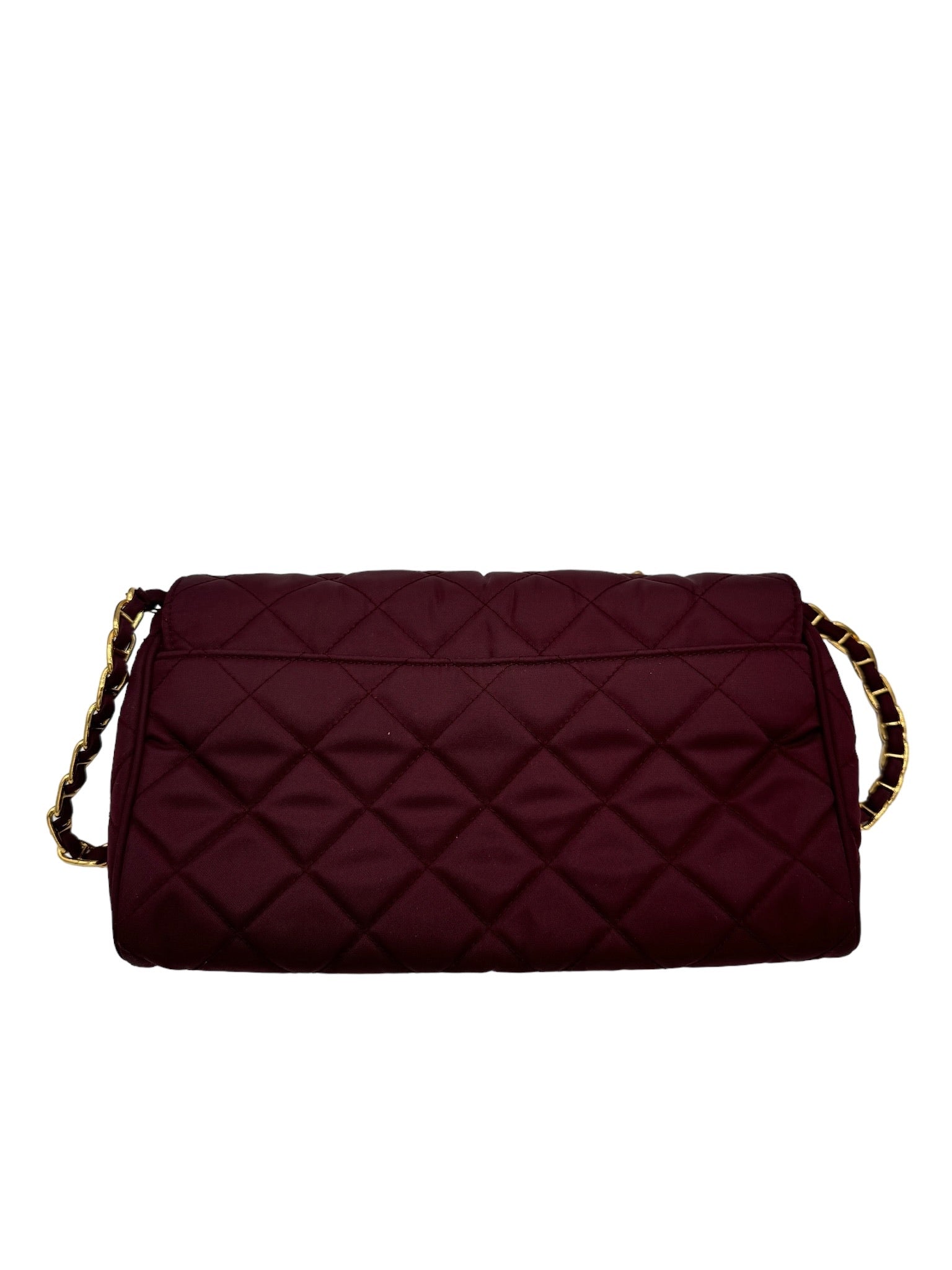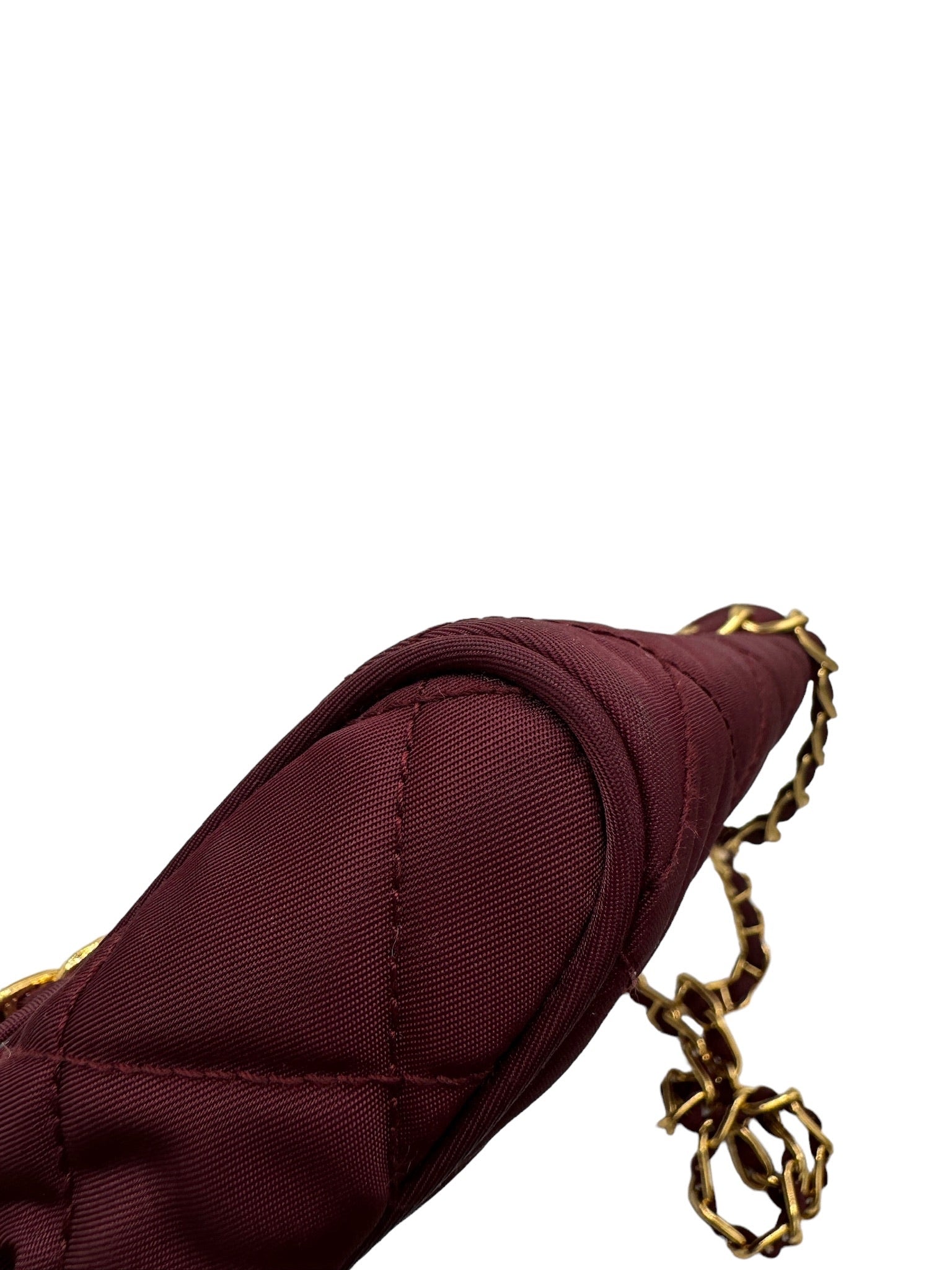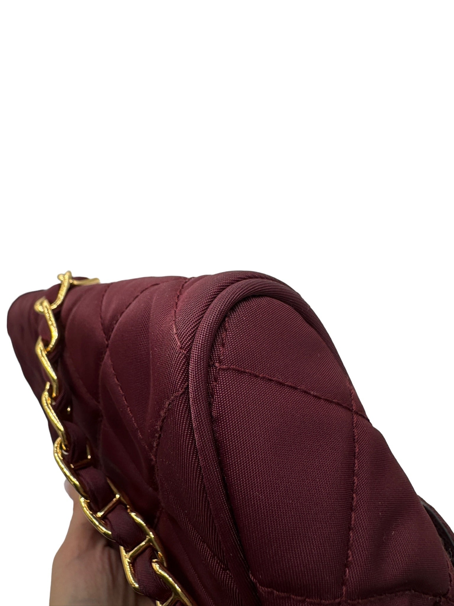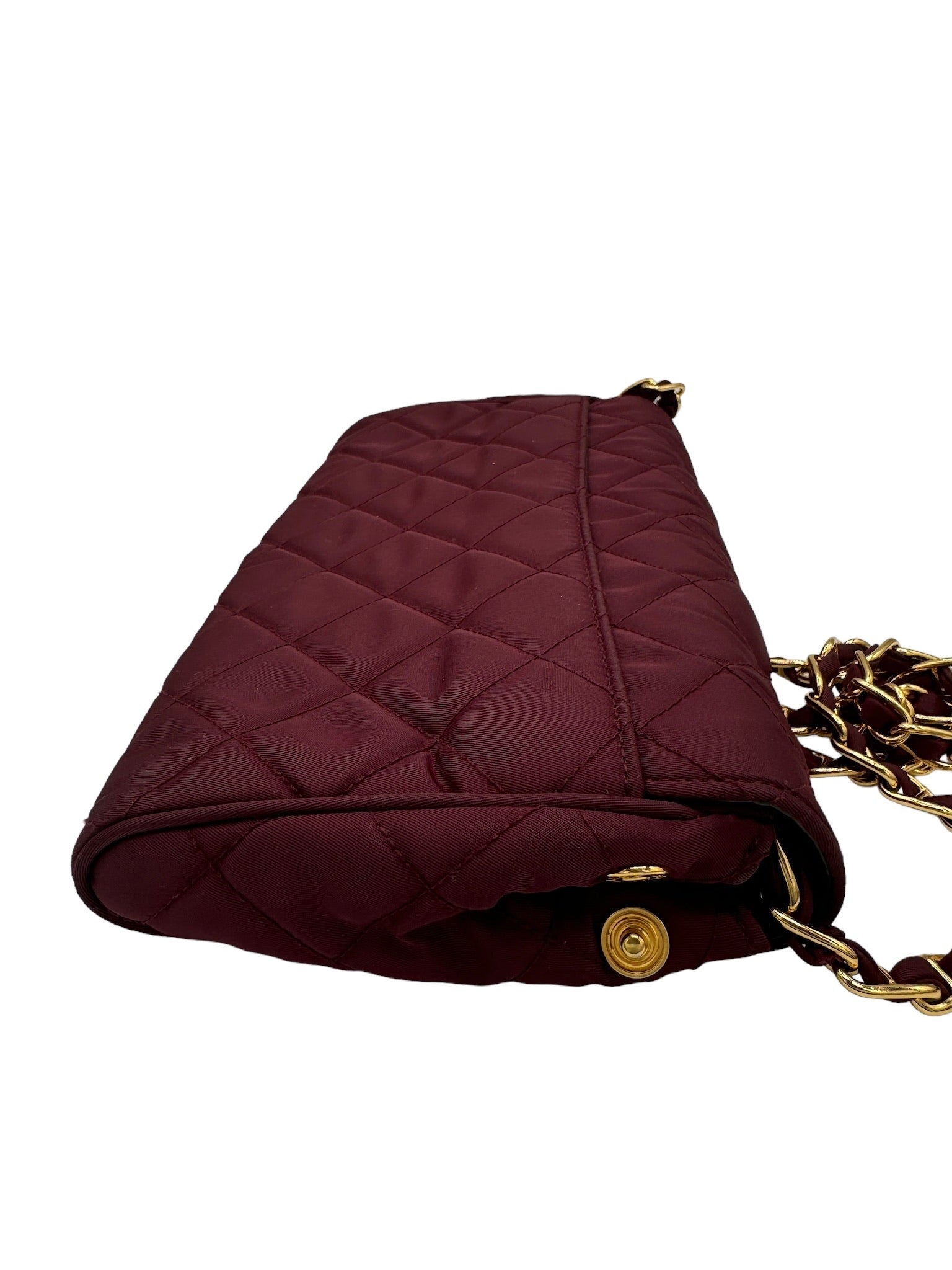 PRADA - Bordeaux Nylon Shoulder Bag Golden Toned Hardware