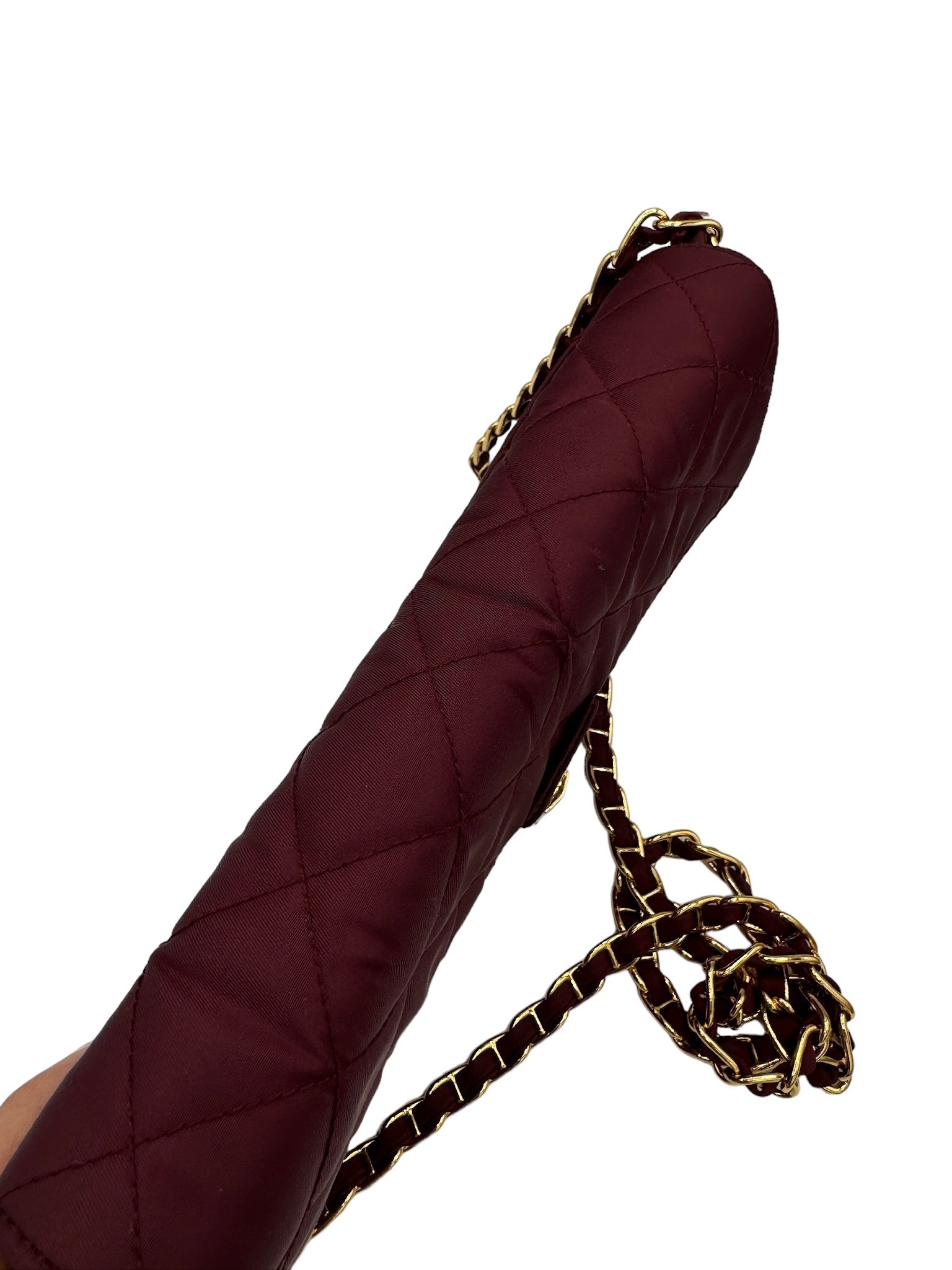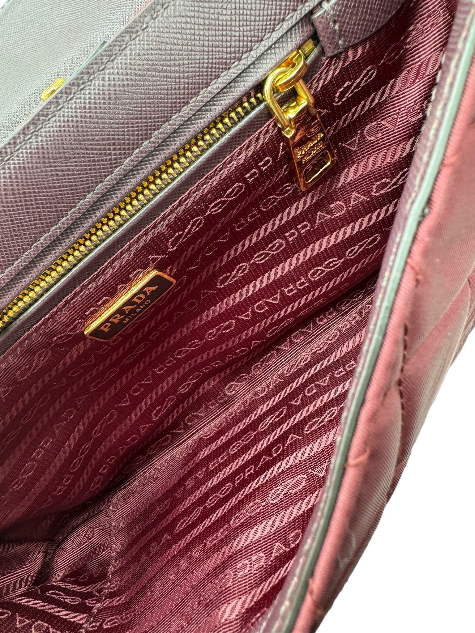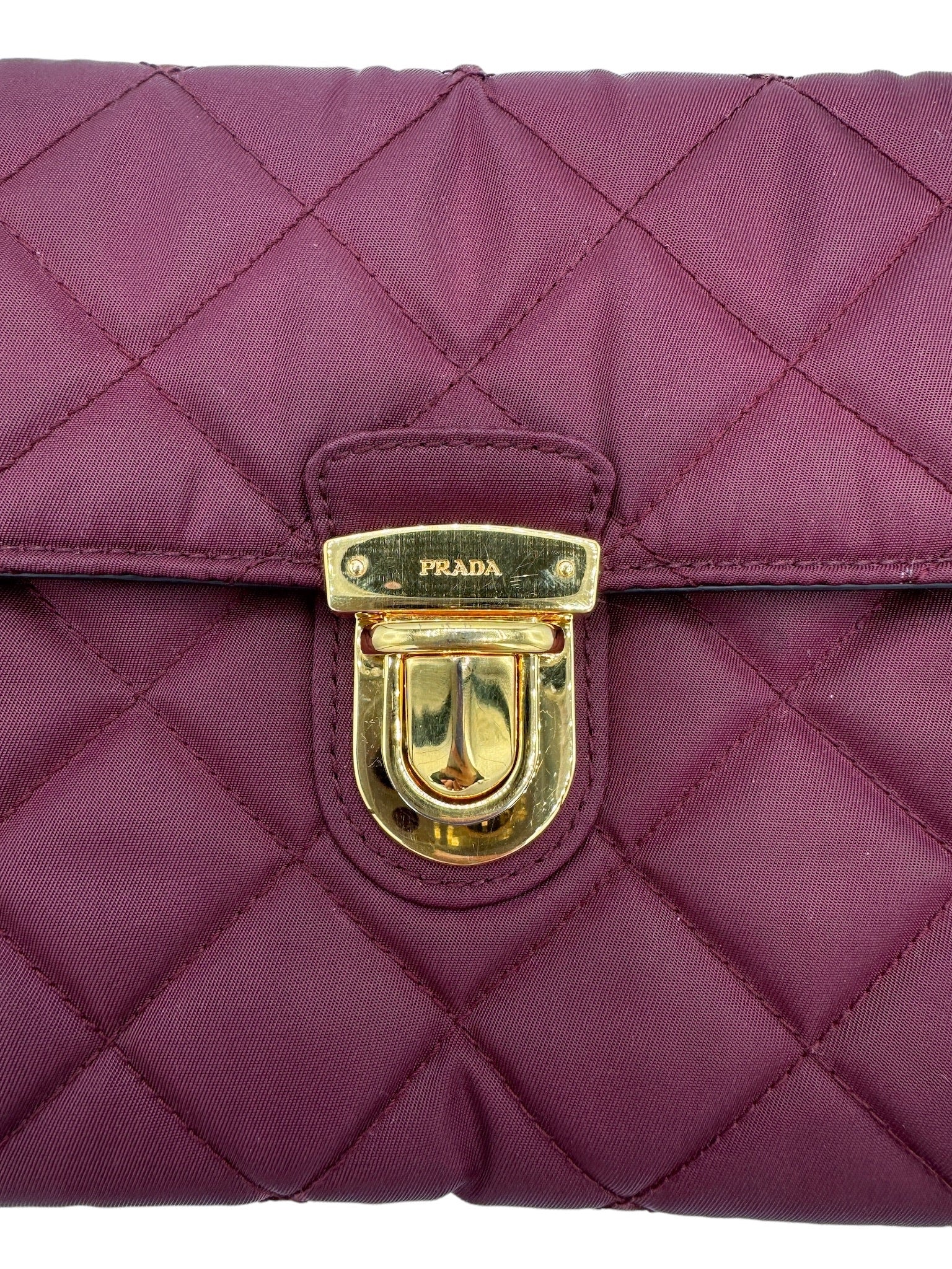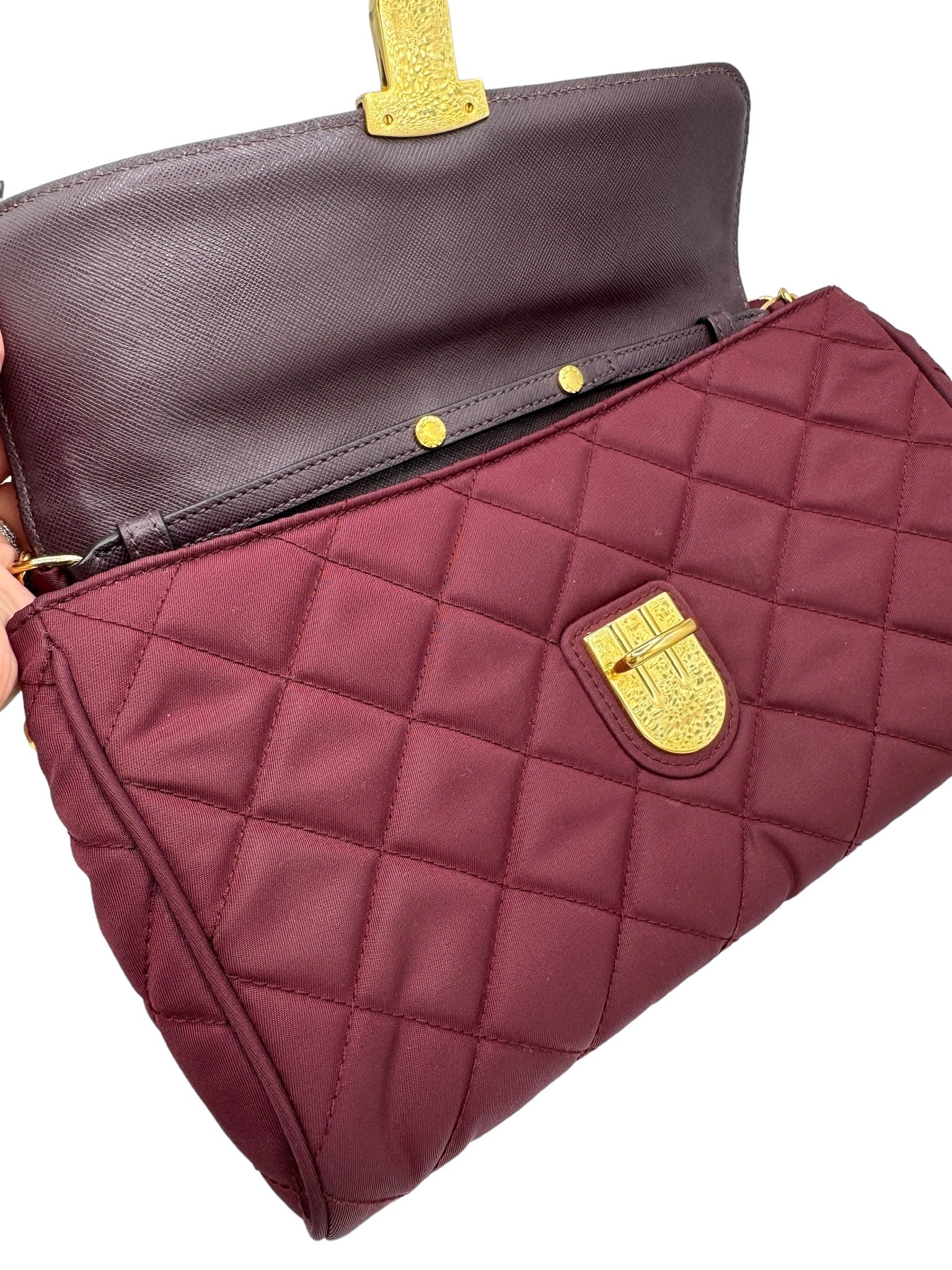 PRADA - Bordeaux Nylon Shoulder Bag Golden Toned Hardware