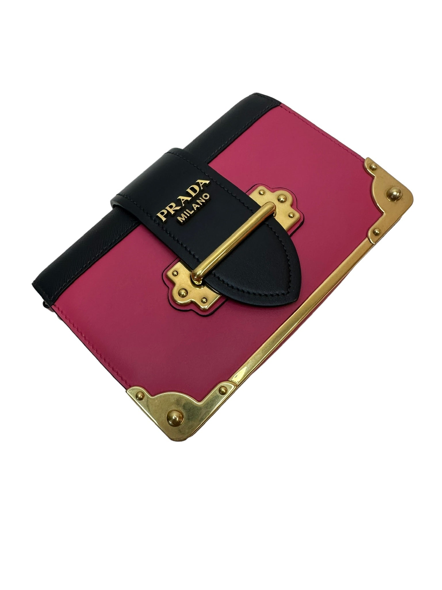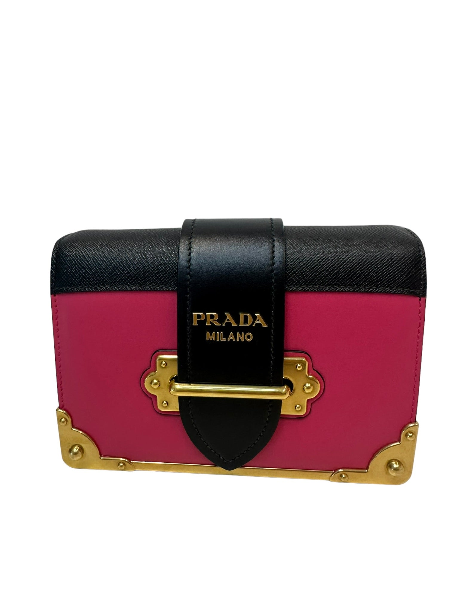 This Pre-Owned PRADA Cahier Crossbody Bag is a stylish and practical accessory for any fashion-forward woman. Crafted from high-quality leather fabrication, this bag boasts a beautiful pink color that is sure to turn heads.