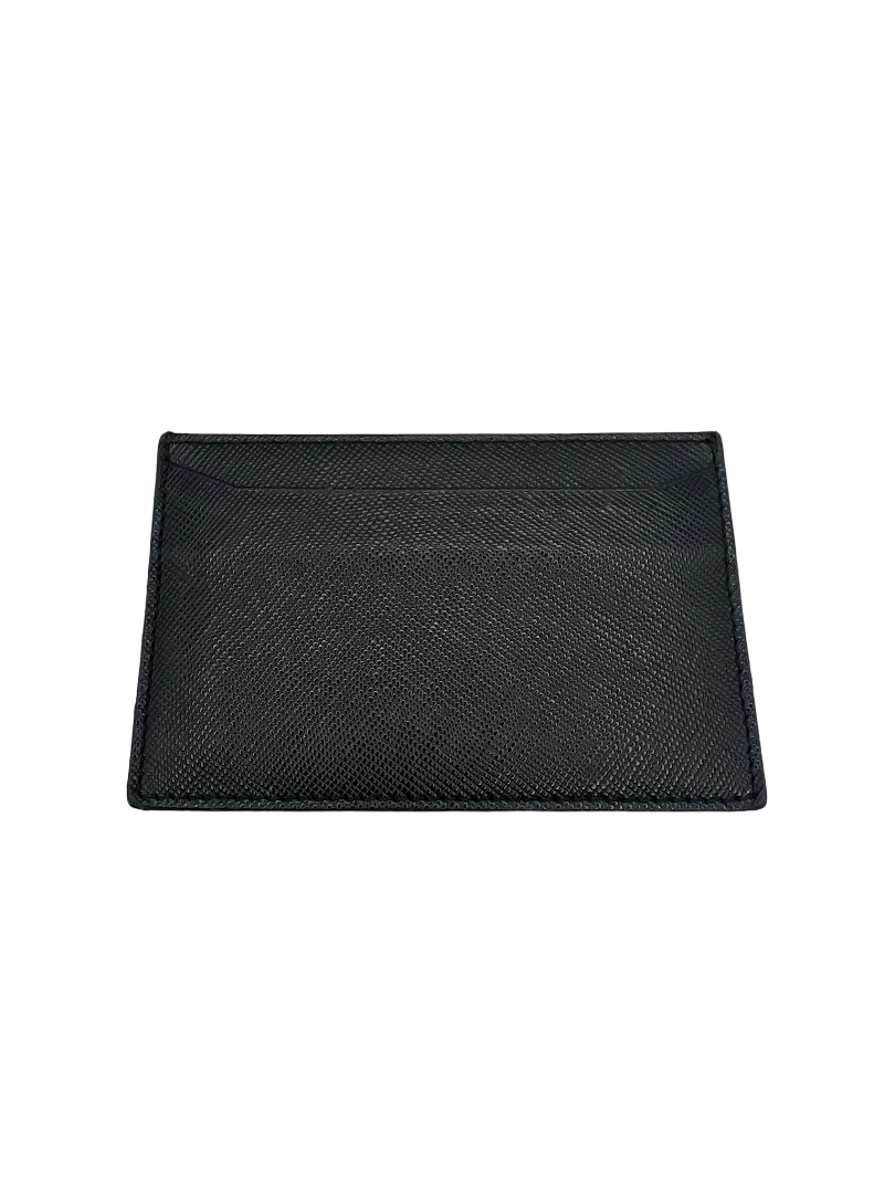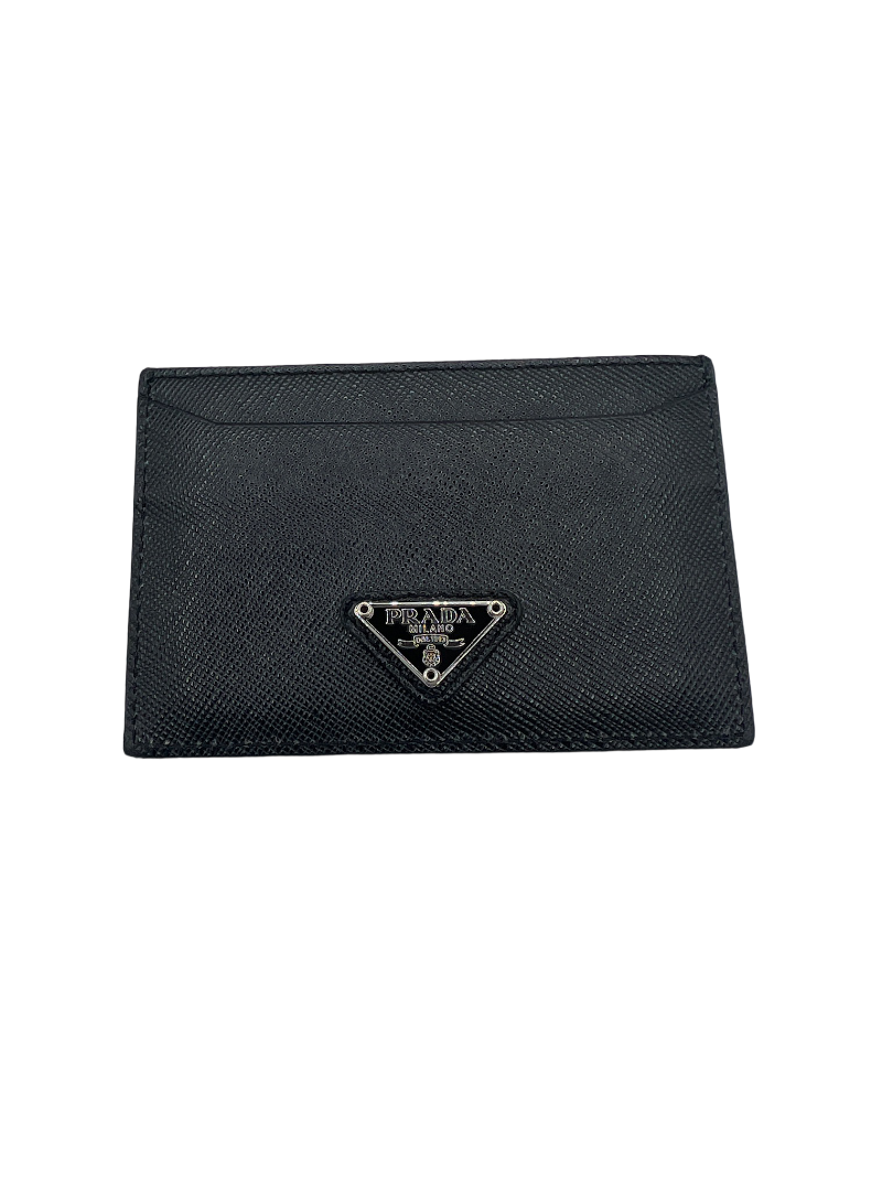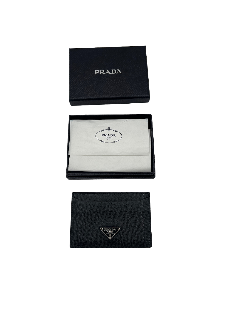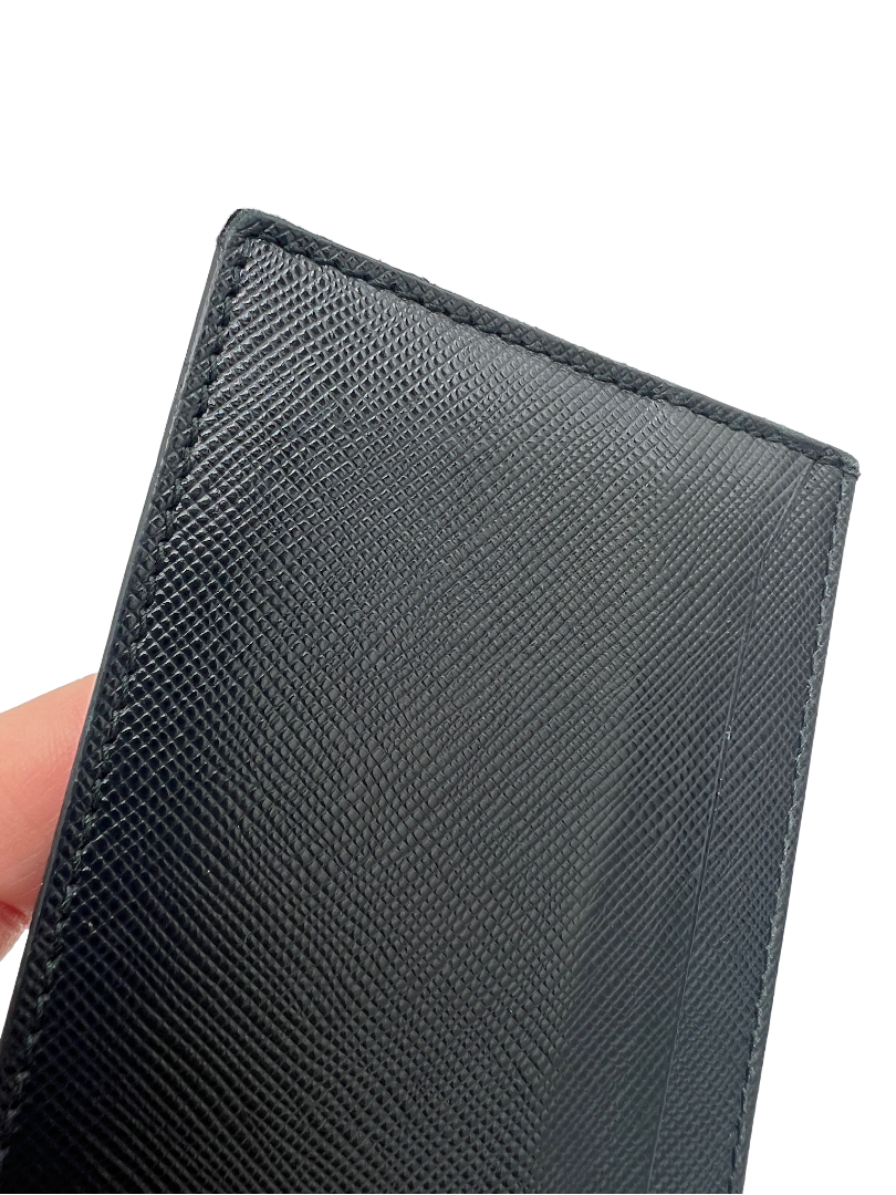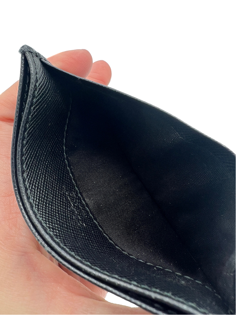 This Pre-Owned PRADA Card Case in black leather is a stylish and practical accessory for keeping your cards organized.