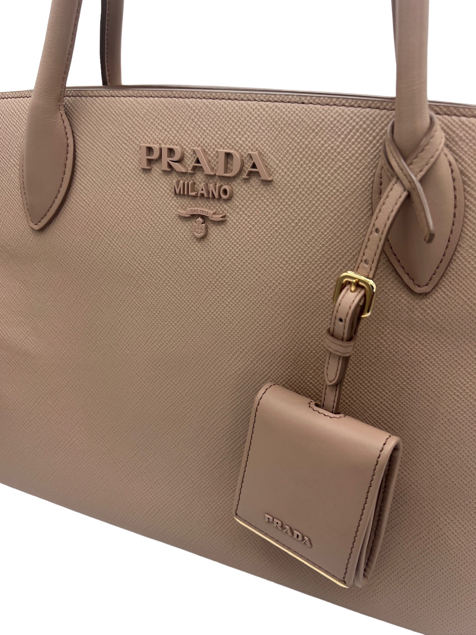 PRADA - Pink Saffiano Cuir Monochrome Tote Bag