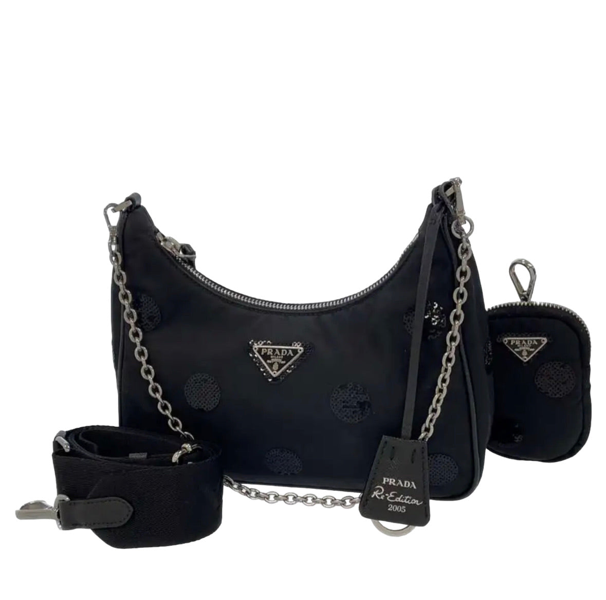 PRADA - Re-edition Handbag Black Re-Nylon Polka Dots