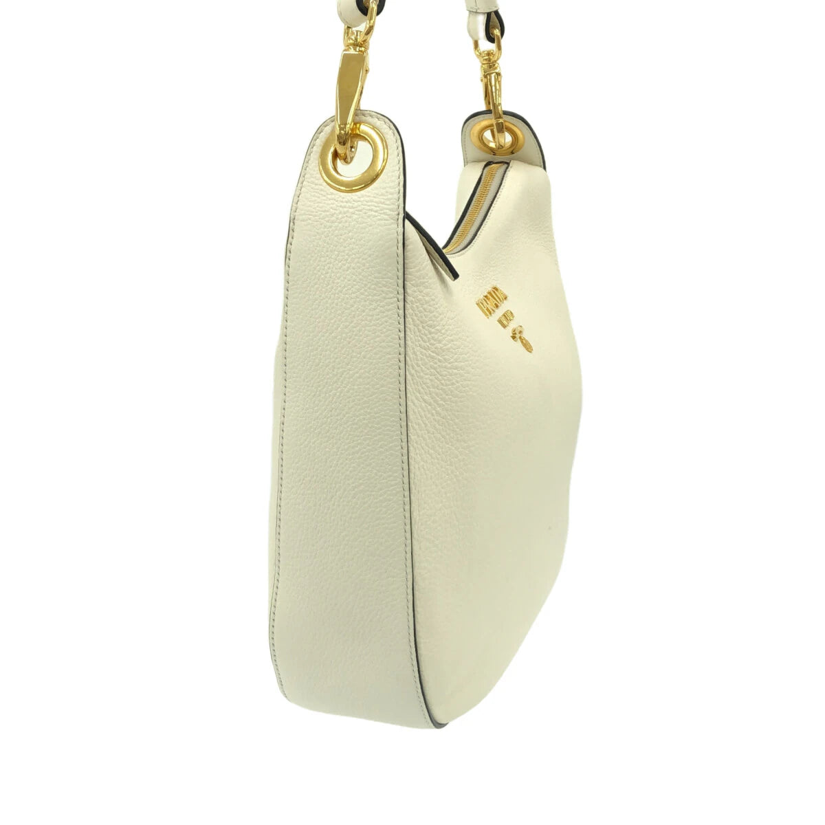 This pre-owned PRADA Shoulder Bag in white leather is a stylish addition to any ensemble. Crafted from high-quality leather, this shoulder bag has a classic and timeless look.