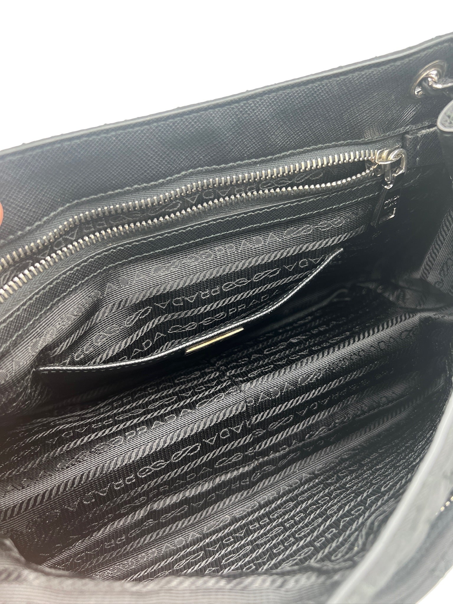 This Pre-Owned PRADA Testudo Impact Shoulder Bag is a stylish and functional accessory perfect for any occasion. The bag silhouette is a traditional shoulder bag, which allows for easy and comfortable wear.