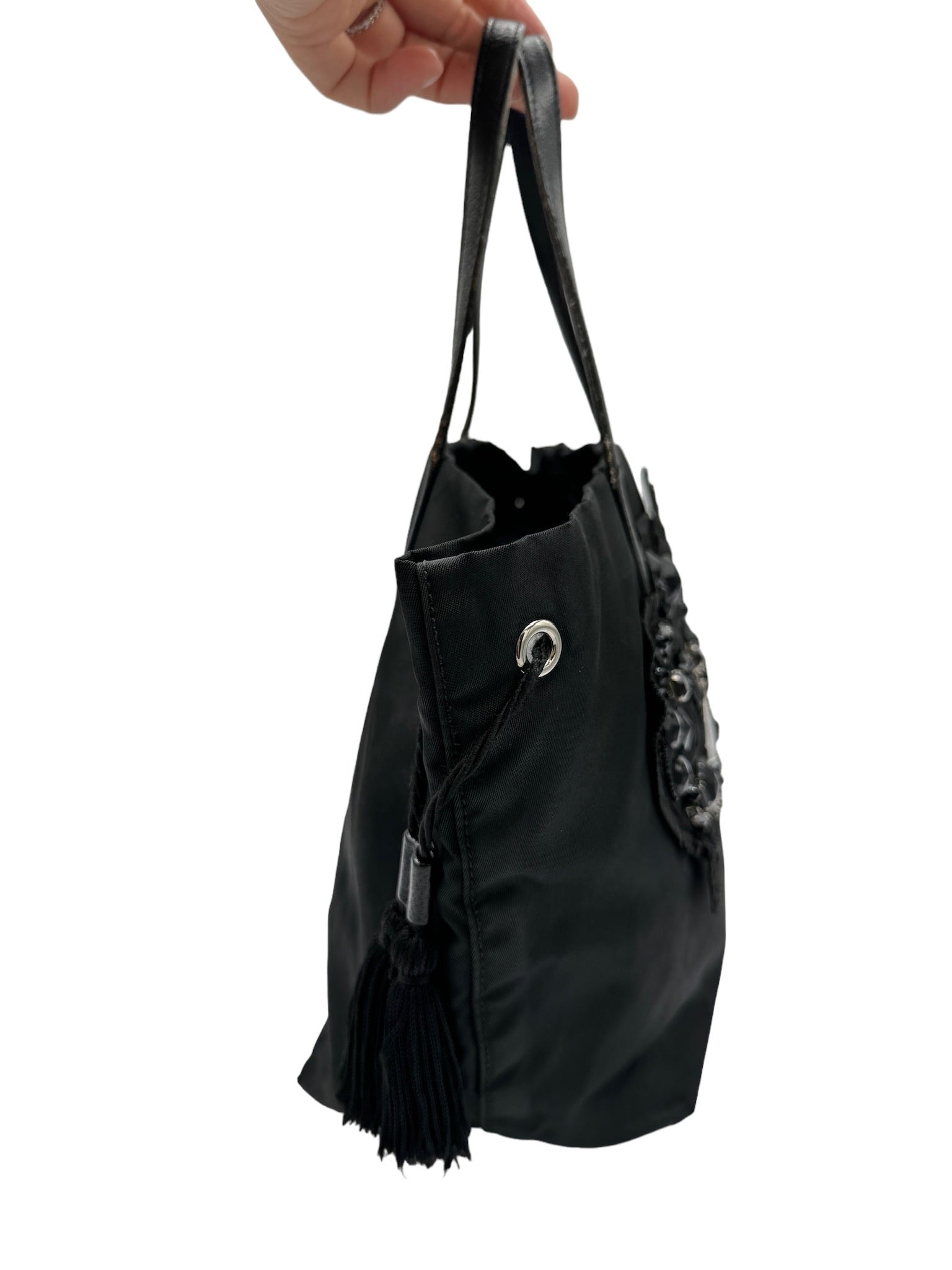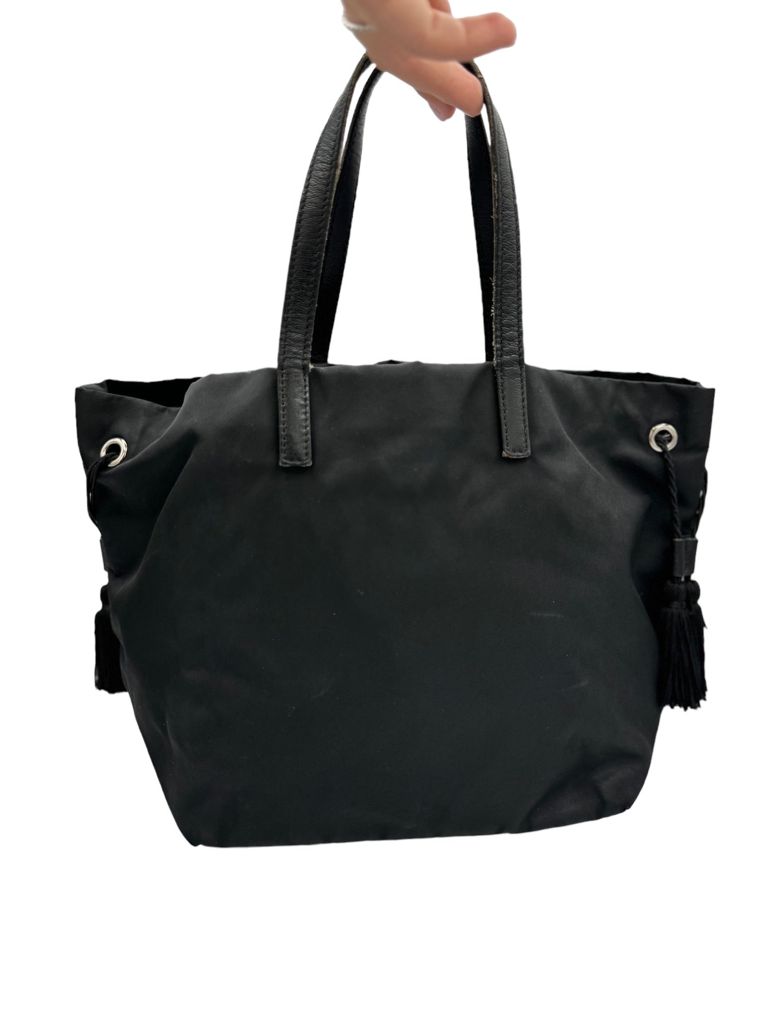 PRADA - Tote Bag Black Nylon Leather Chemical Fiber