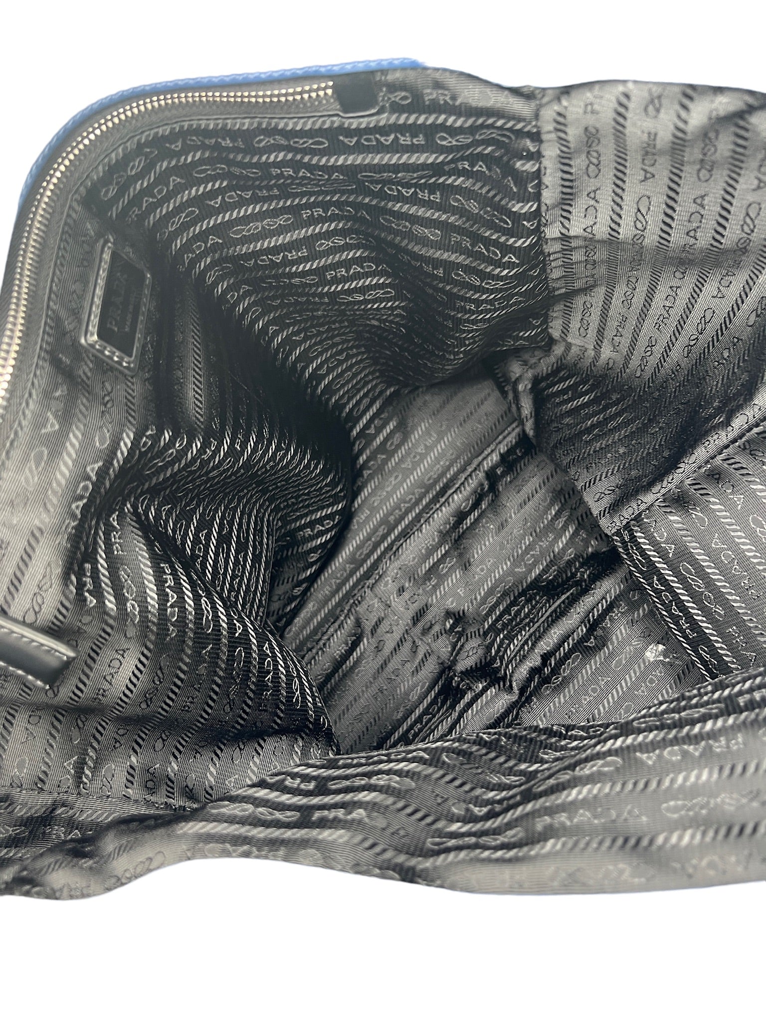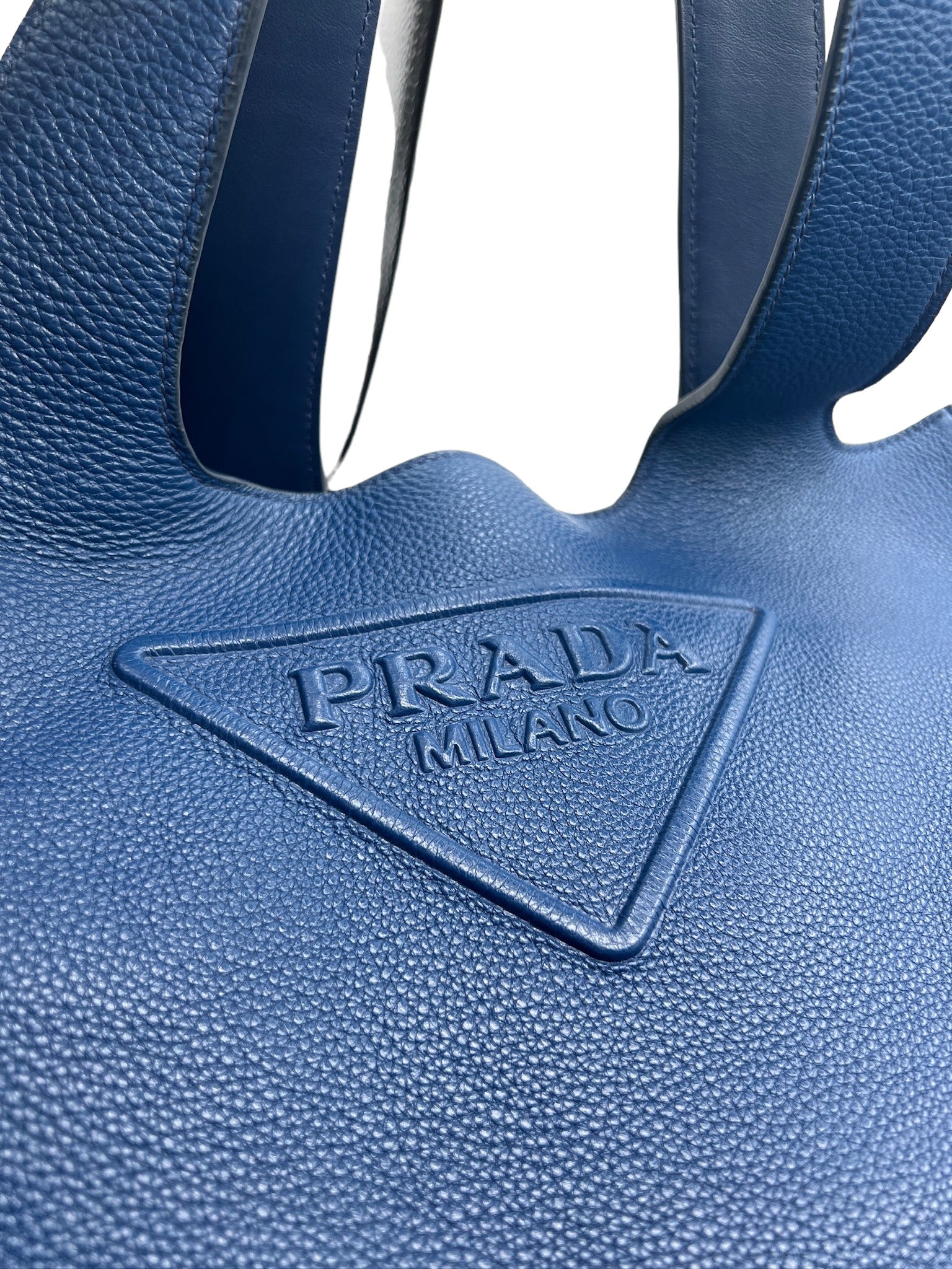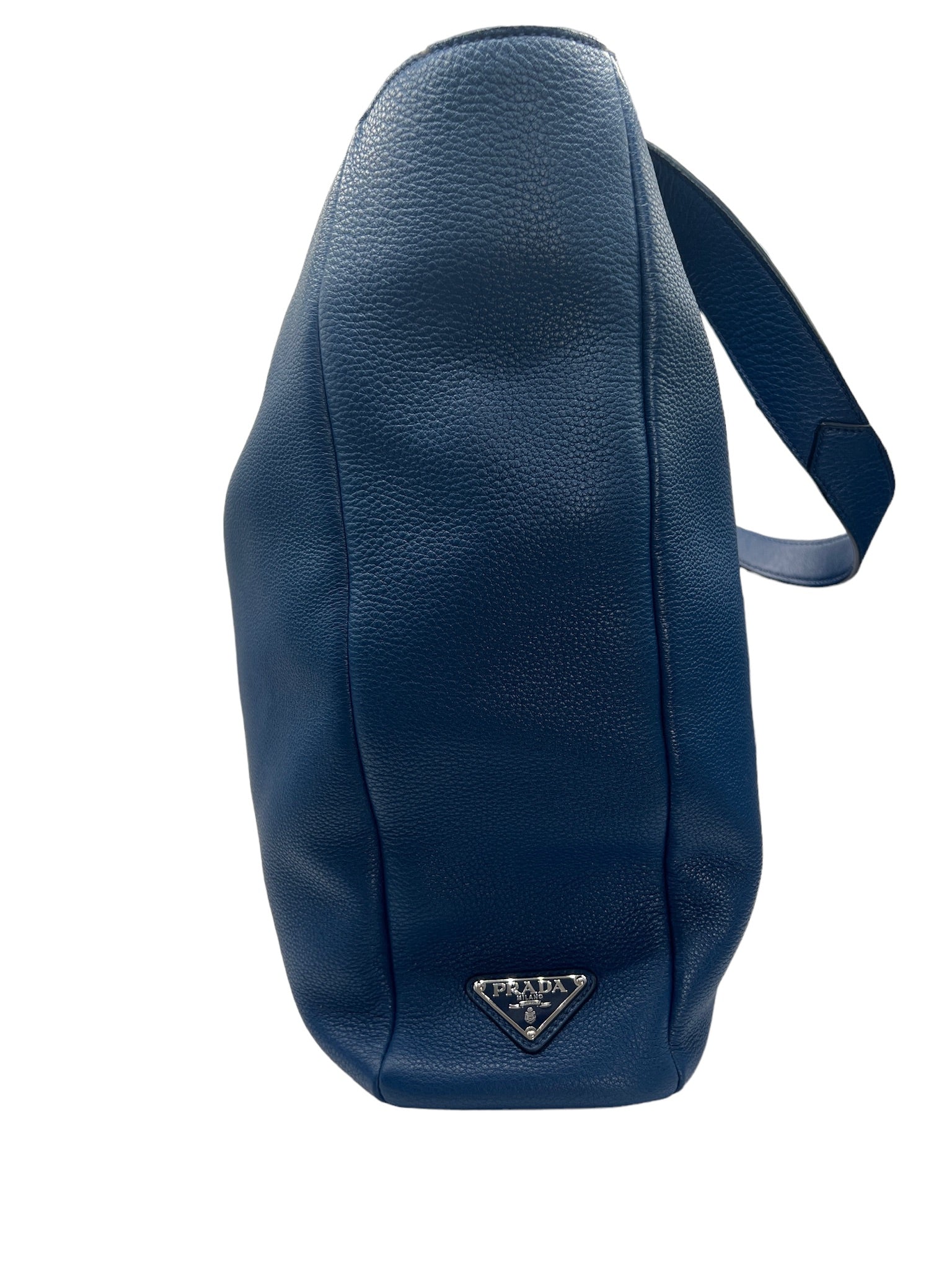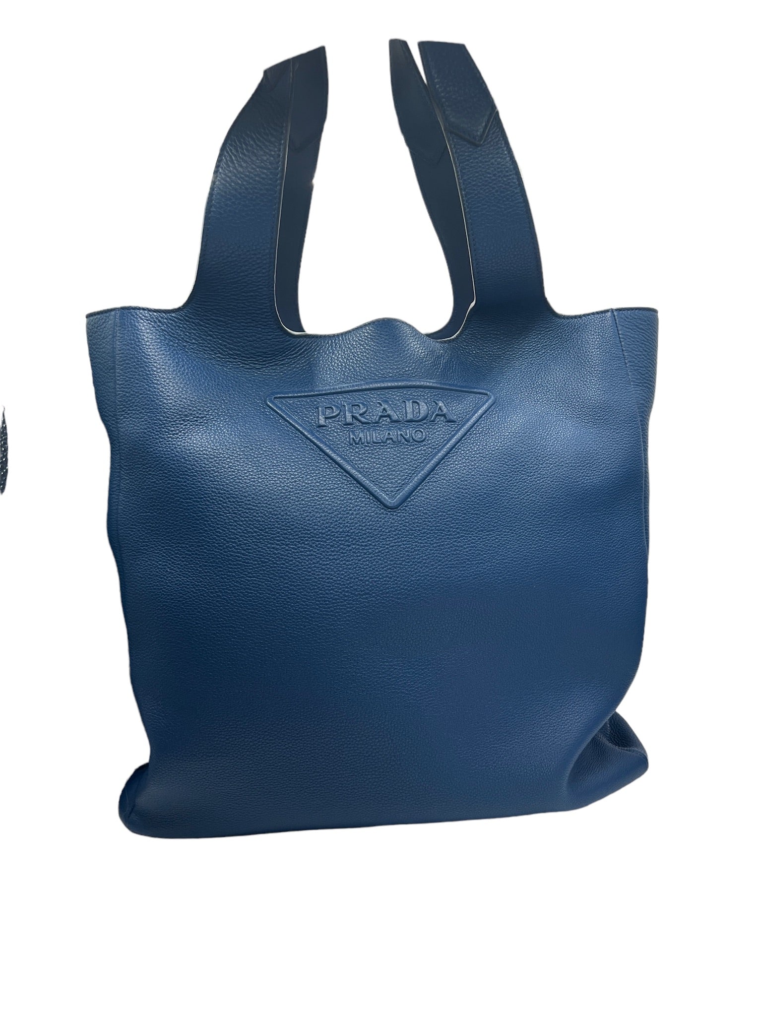 This pre-owned PRADA - Vitello Daino Tote Bag is a stylish addition to any woman's collection. The bag is made of high-quality leather and comes in a beautiful shade of blue.